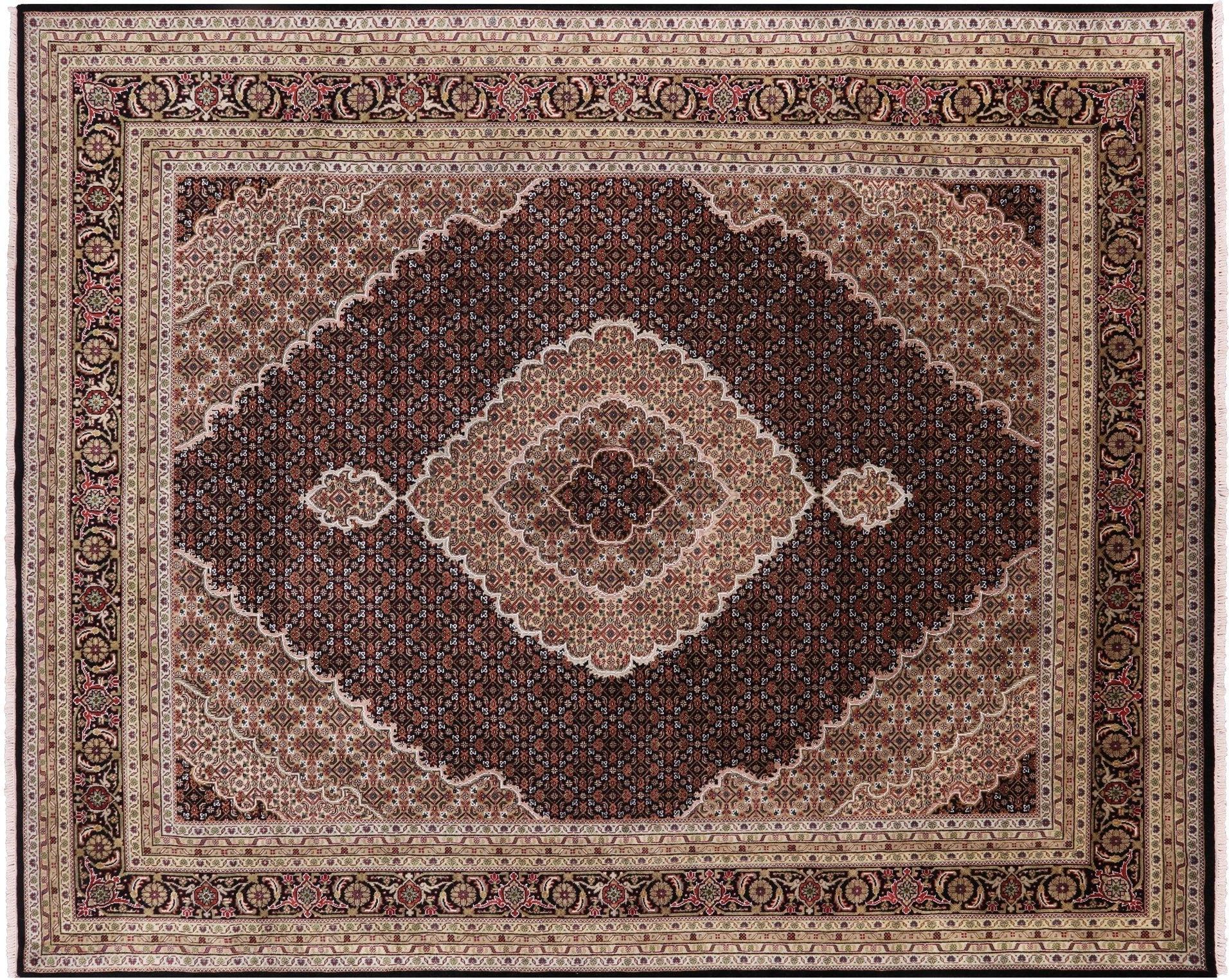 Black 8' 2" X 10' 1" Tabriz Hand Knotted Wool & Silk Rug - Q4774