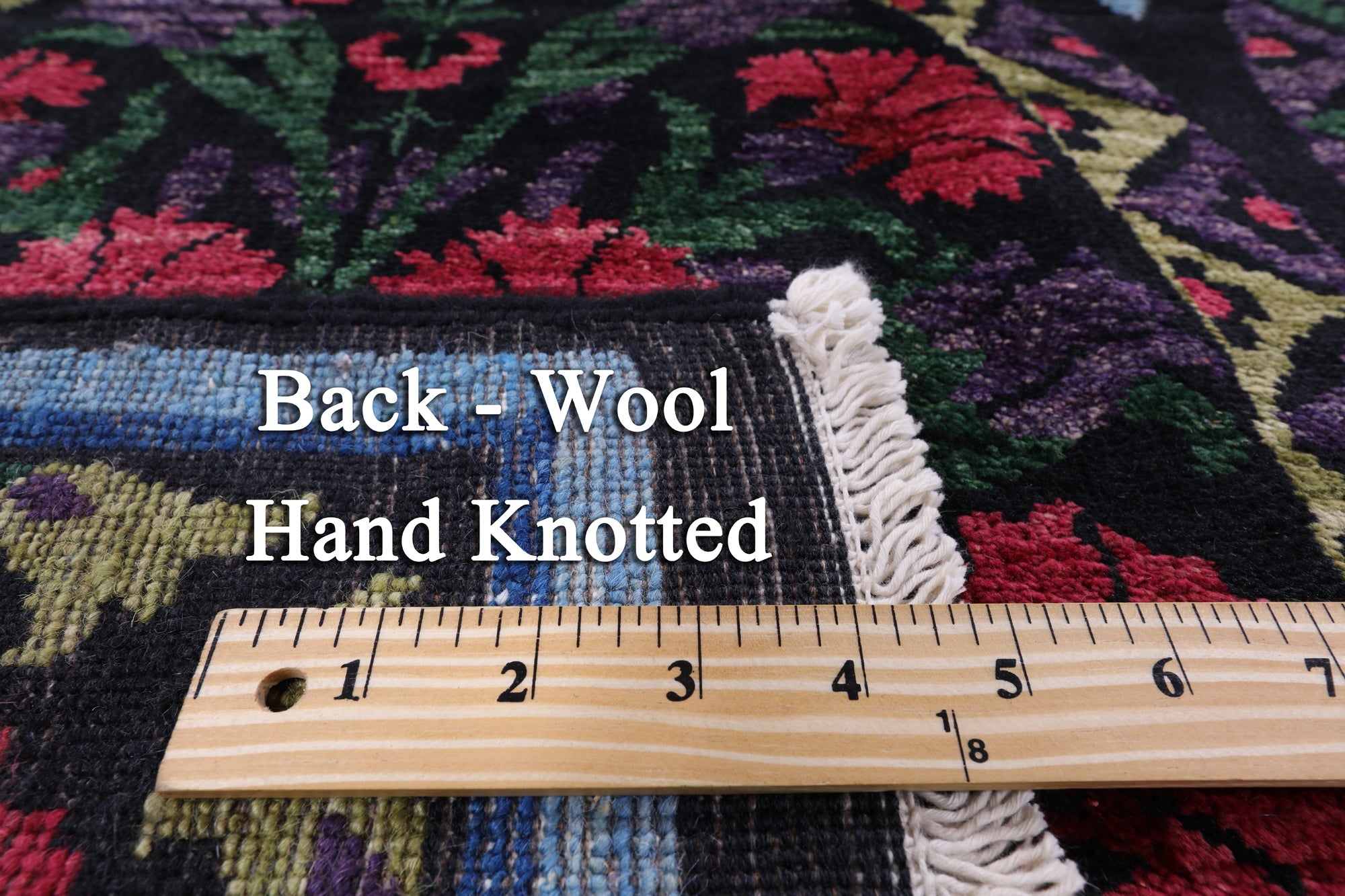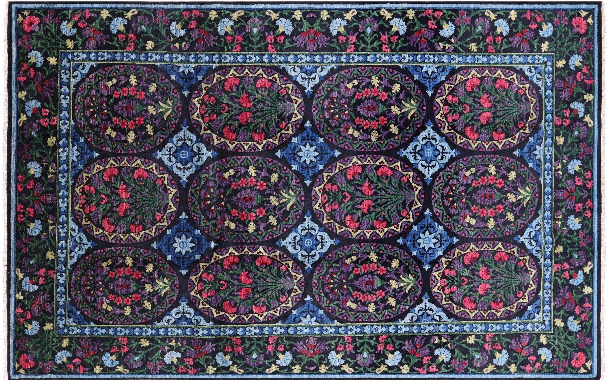 Black William Morris Hand Knotted Rug 8' 0" X 12' 7" - P6942