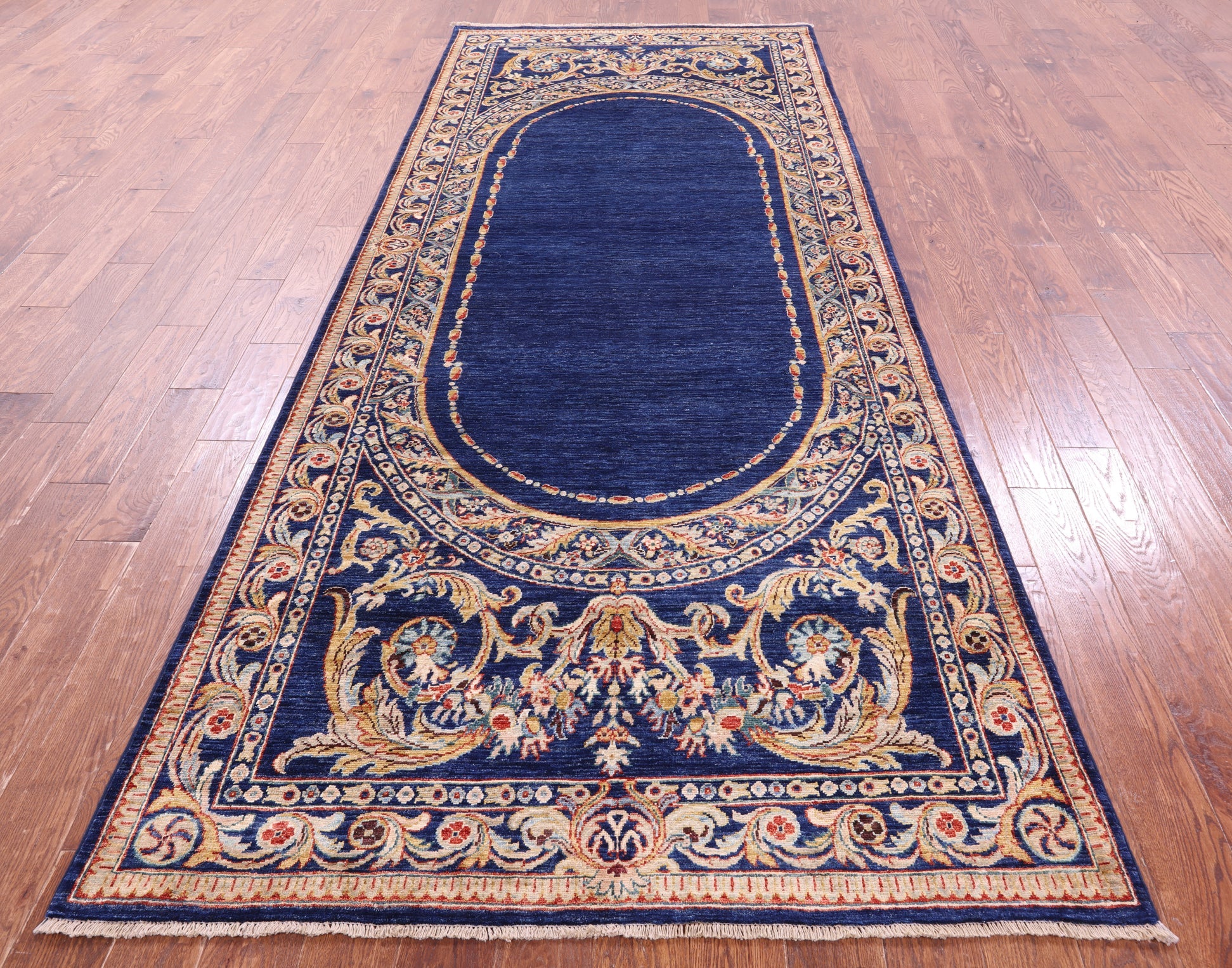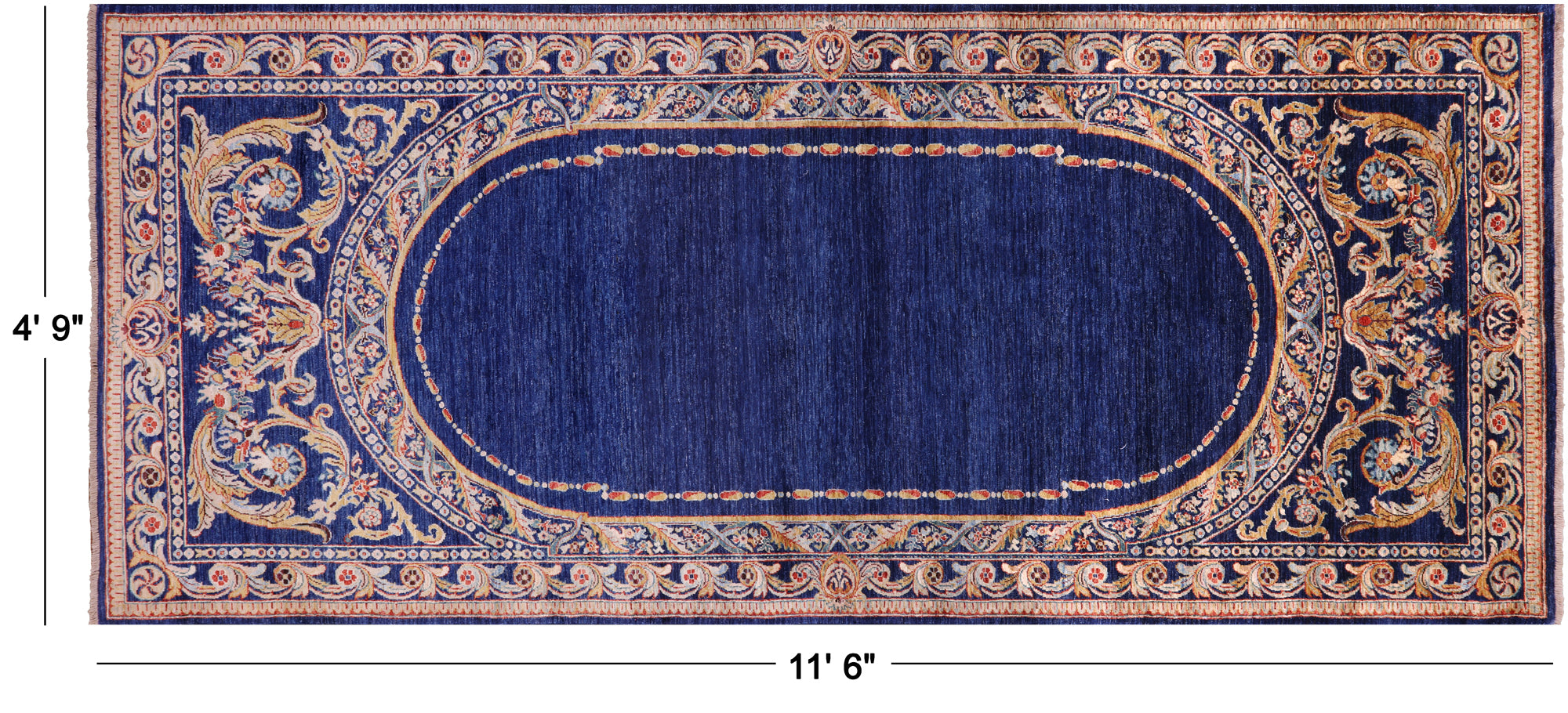 Blue Contemporary Hand-Knotted Wool Rug 4' 9" X 11' 6" - Q23014 is backordered and will ship as soon as it is back in stock.