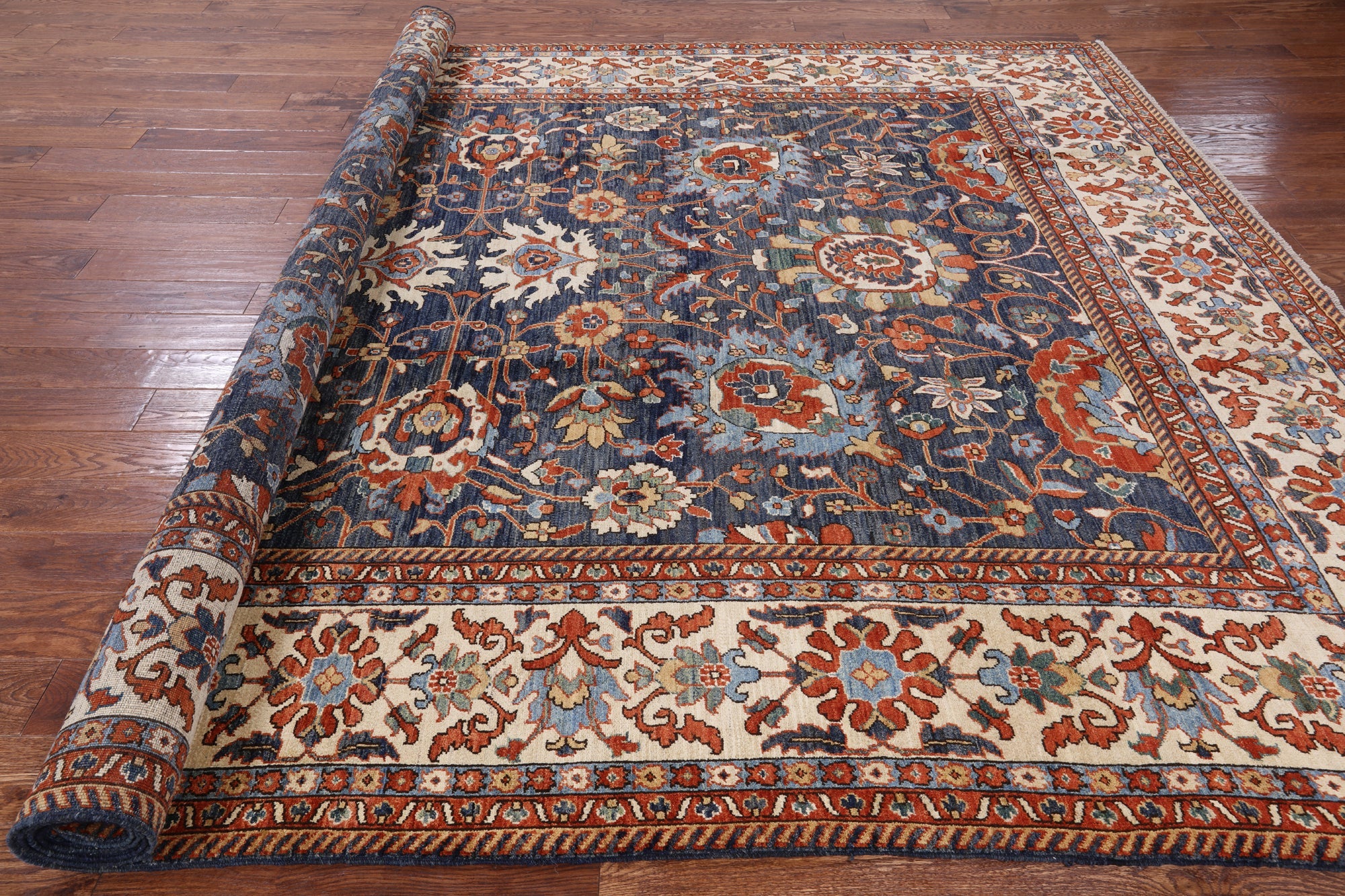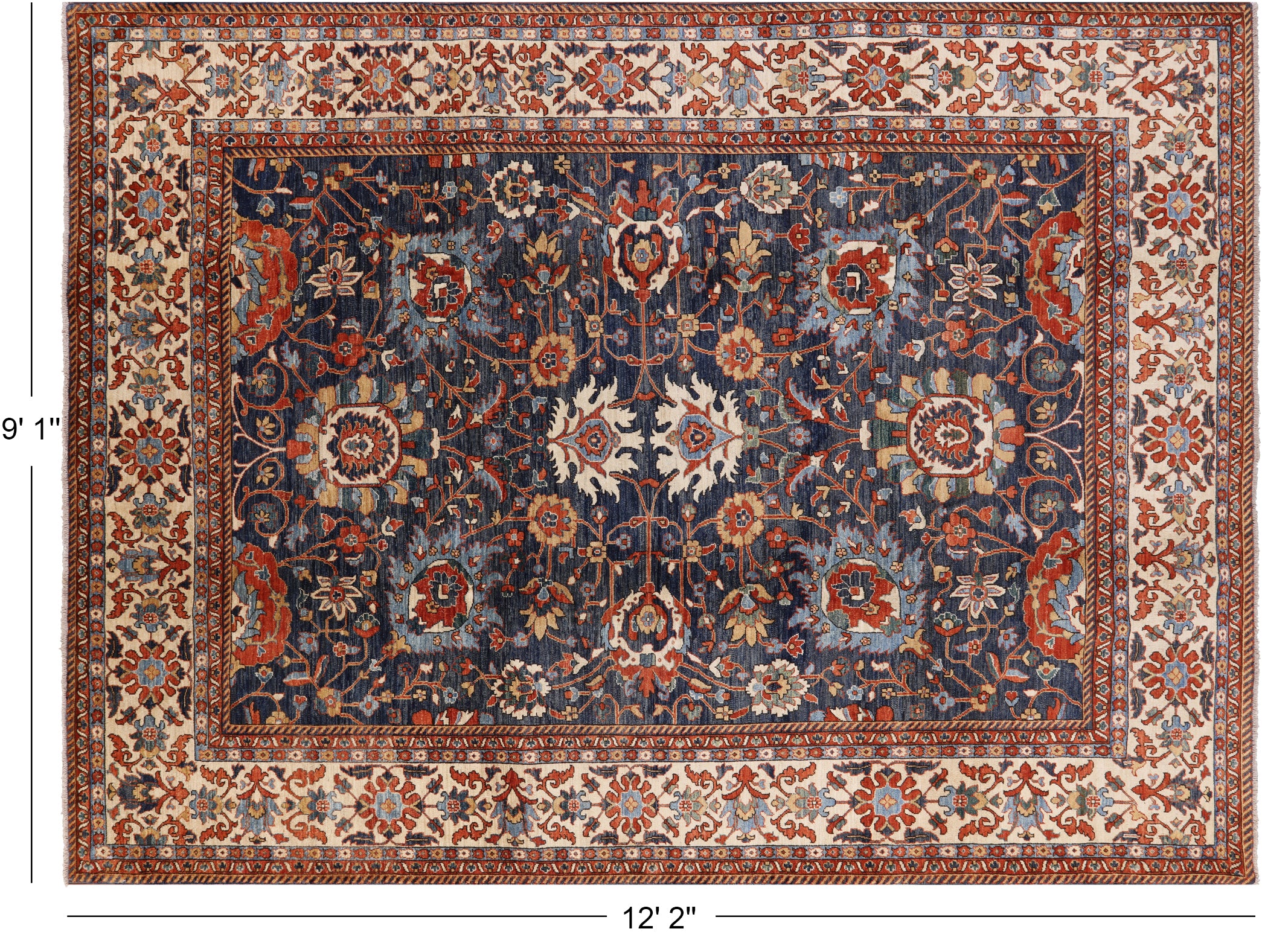 Blue 9' 1" X 12' 2" Fine Serapi Handmade Area Rug - P4772
