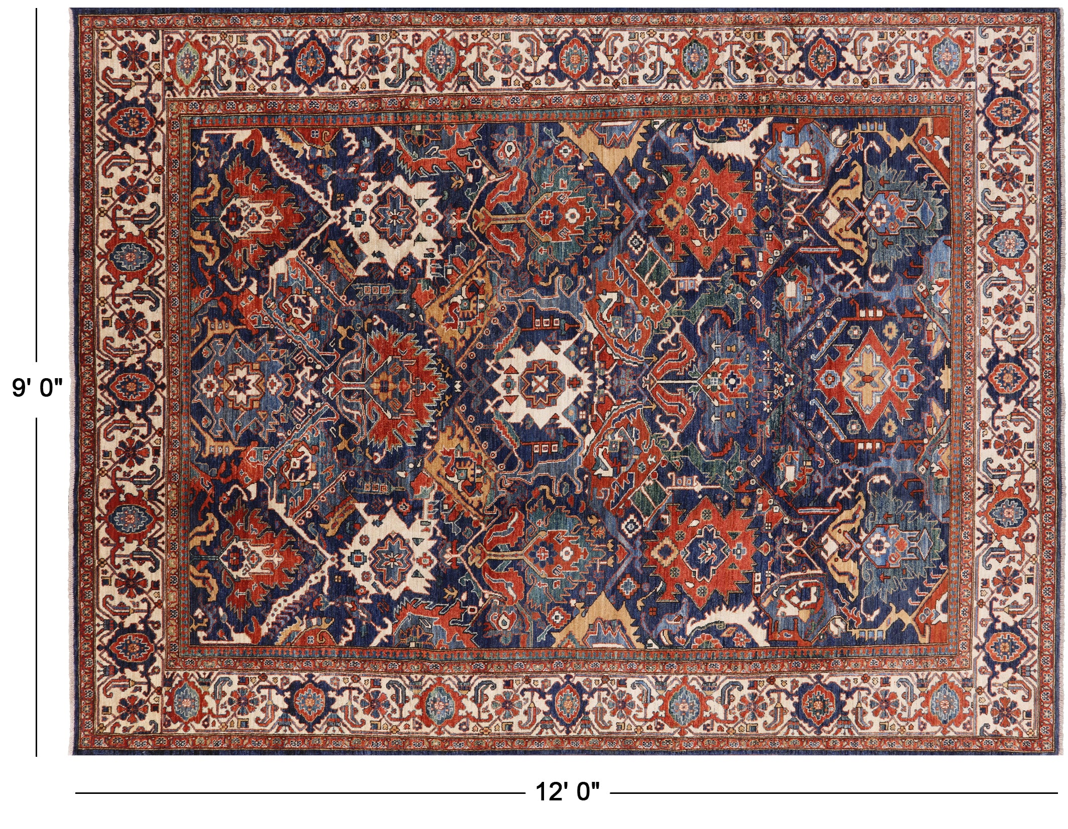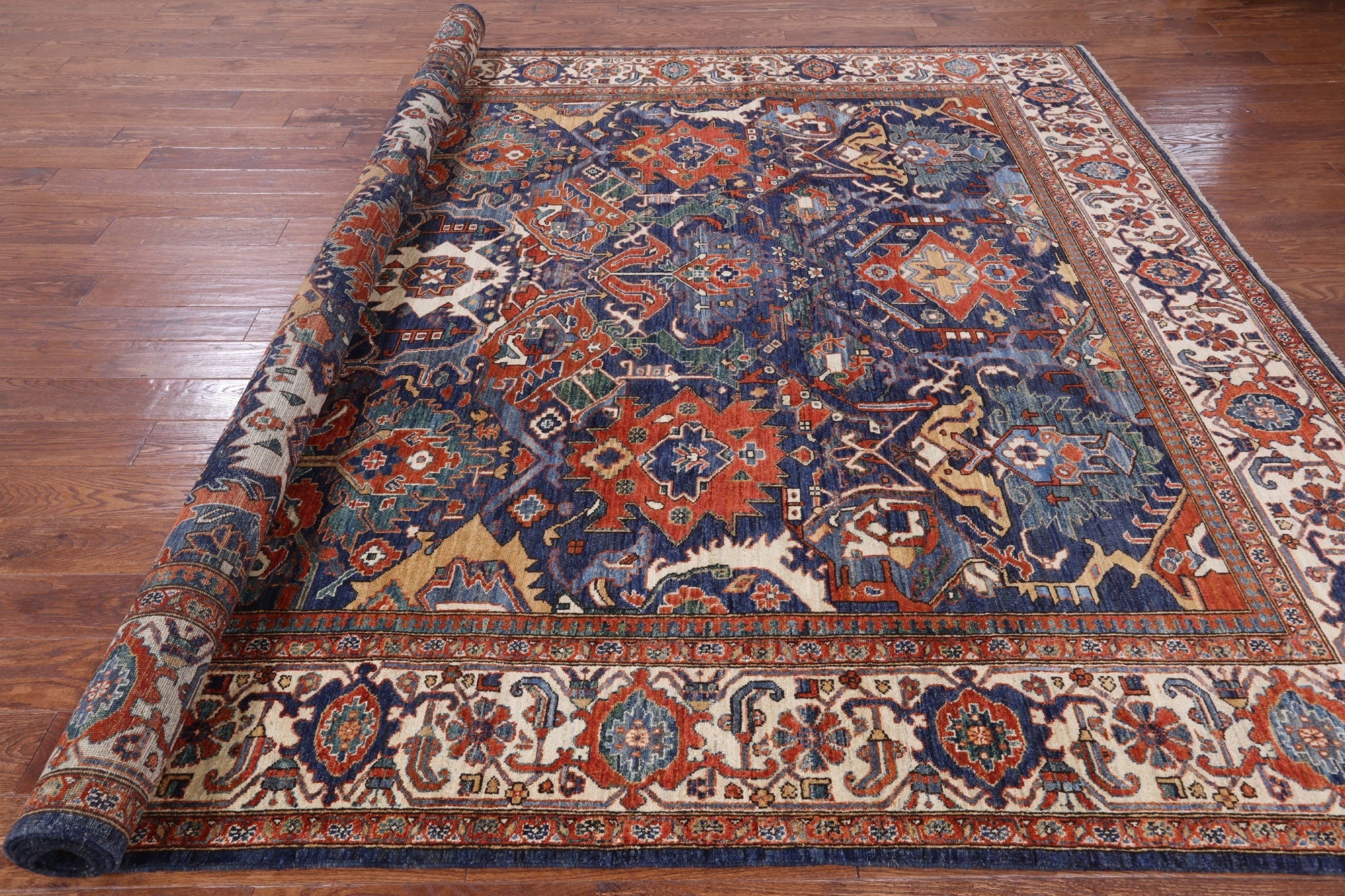 Blue 9' 0" X 12' 0" Fine Serapi Handmade Wool Rug - P7883