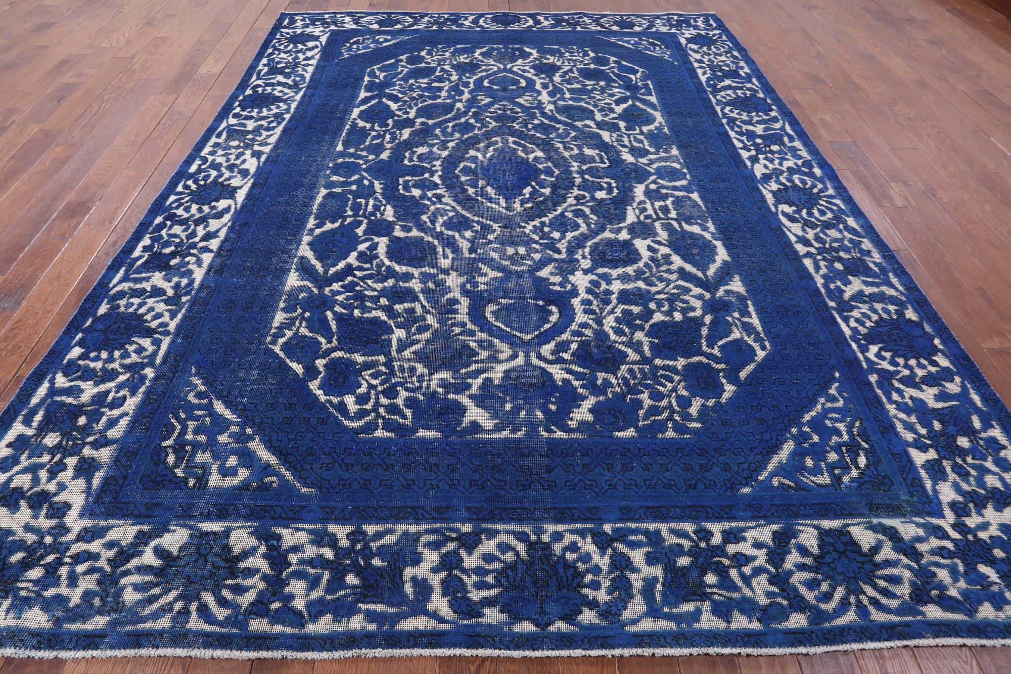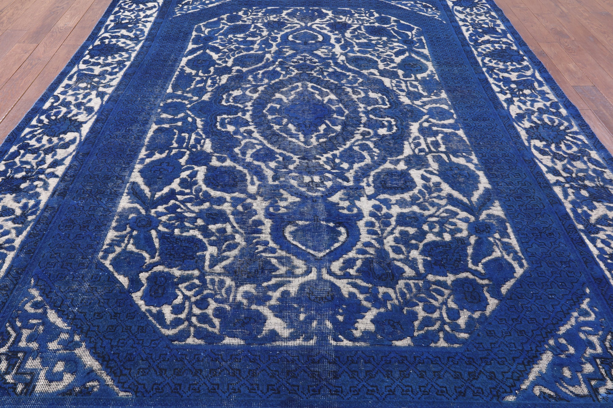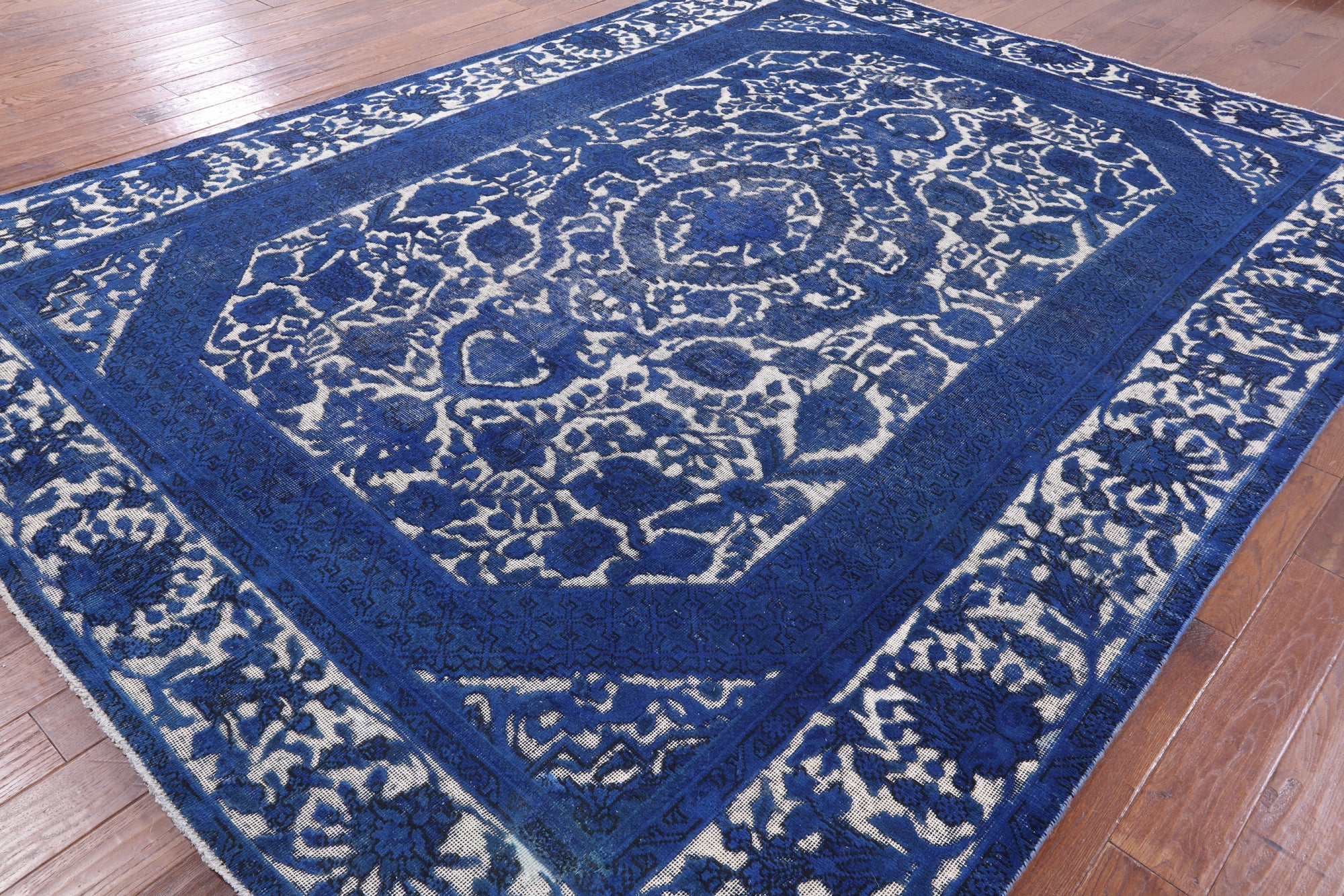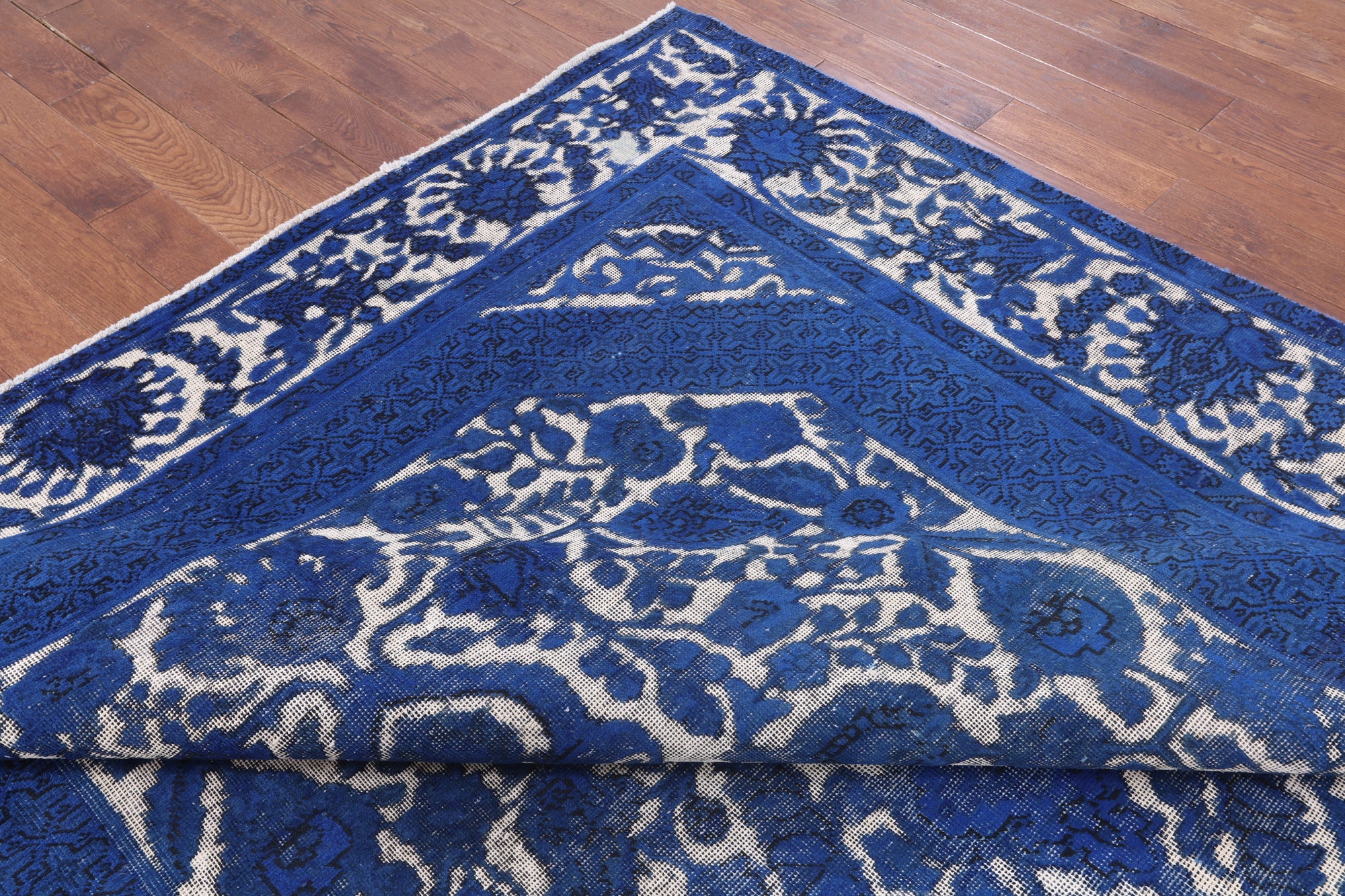Overdyed rugs have become popular, because of their vibrant colors and vintage look. Each one is unique; there are no two alike. They are hand knotted and are made through a natural dye process. After this process is completed the end result is an oversaturated color.
