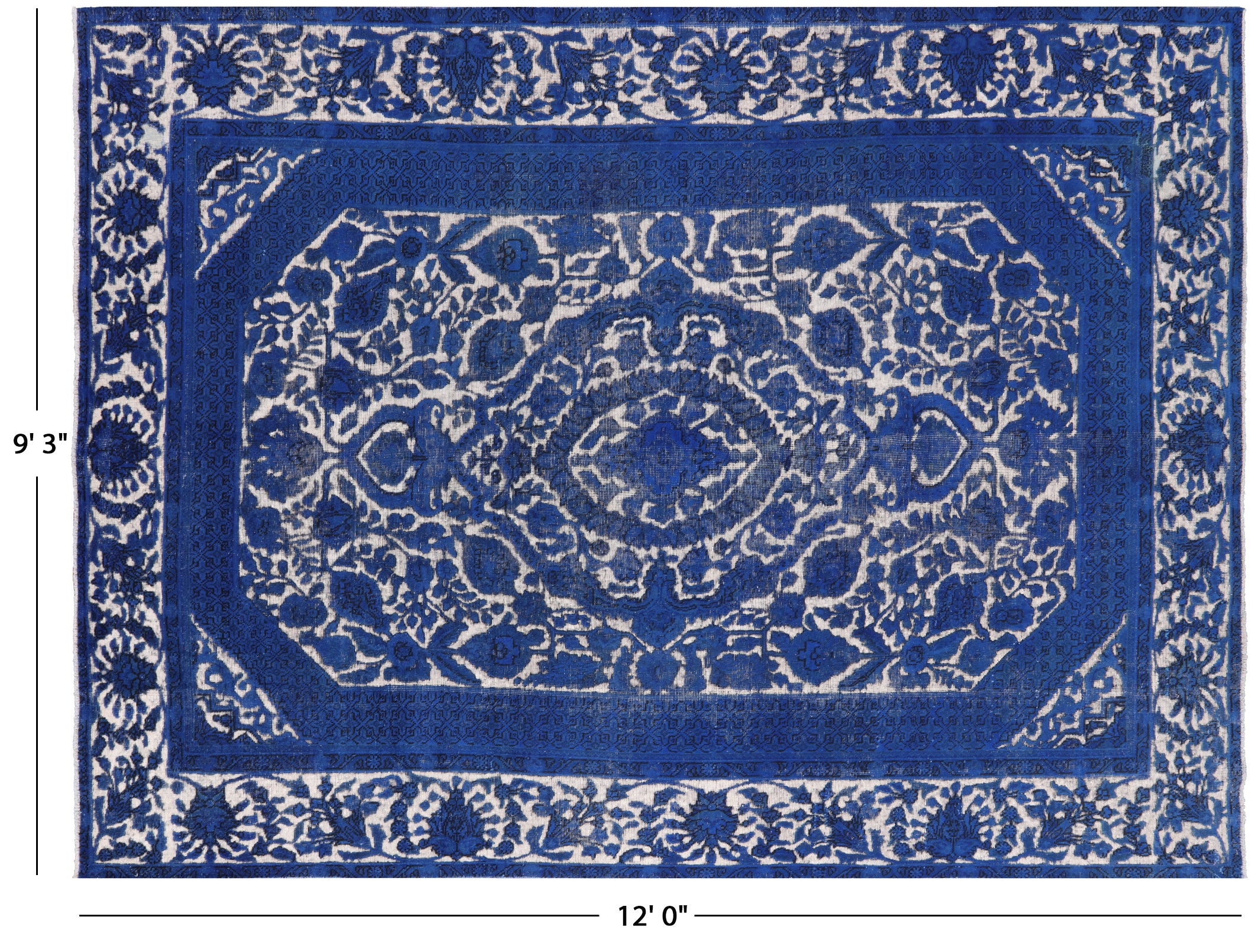 Blue 9' 3" X 12' 0" Hand Knotted Persian Overdyed Area Rug - Q1940 is backordered and will ship as soon as it is back in stock.