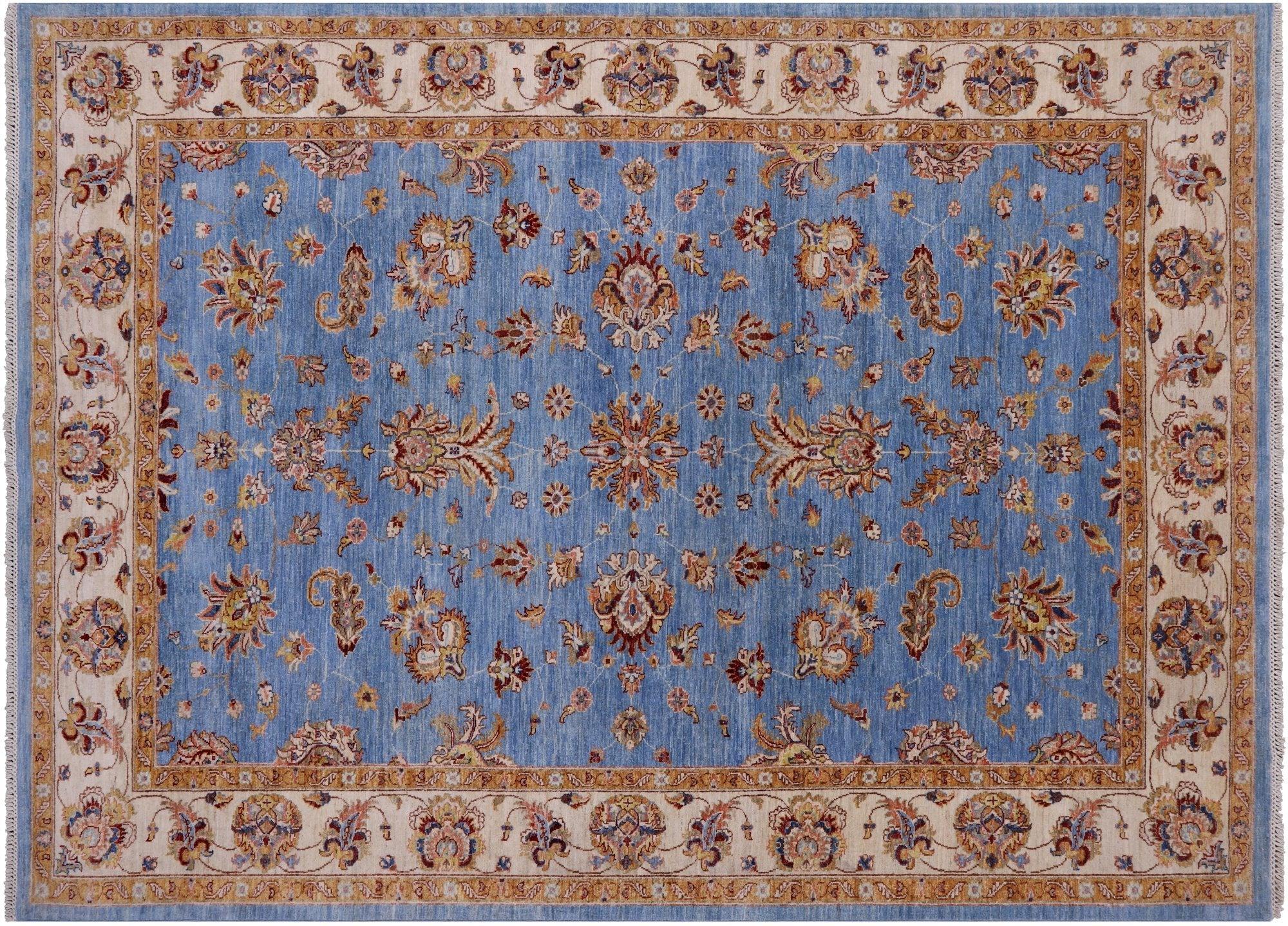 Blue 6' 11" X 9' 7" Hand-Knotted Persian Tabriz Wool Rug - Q10003