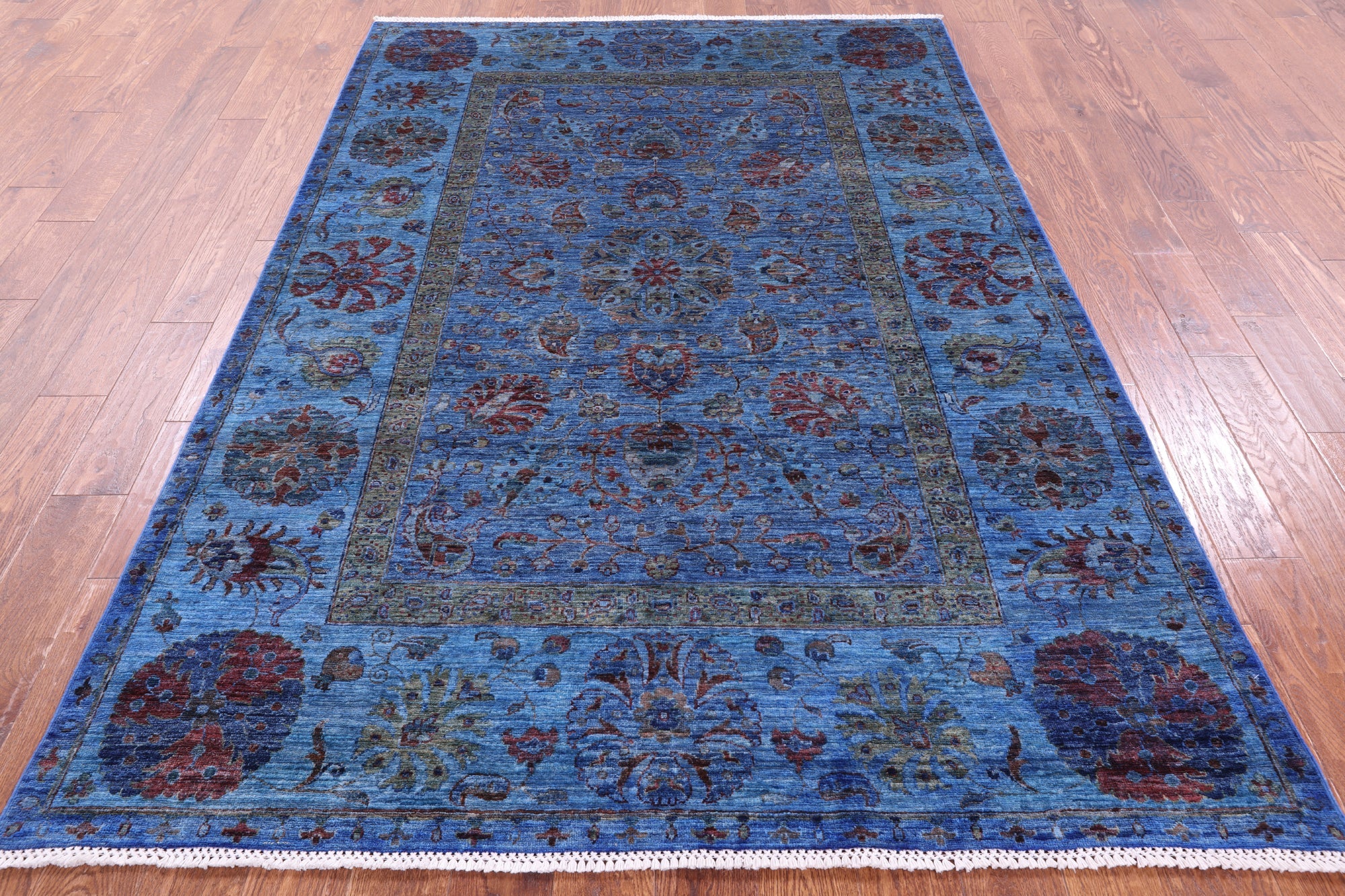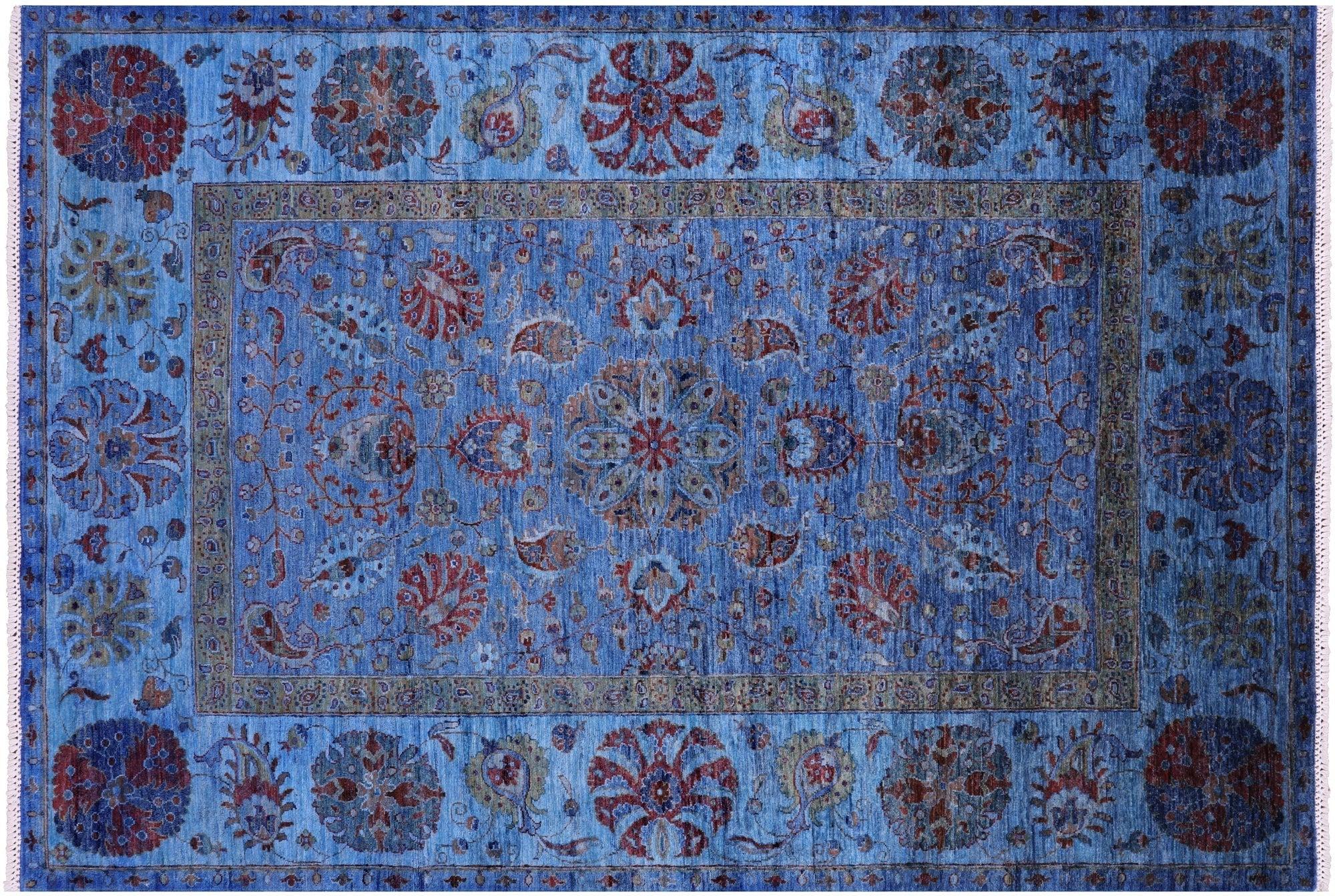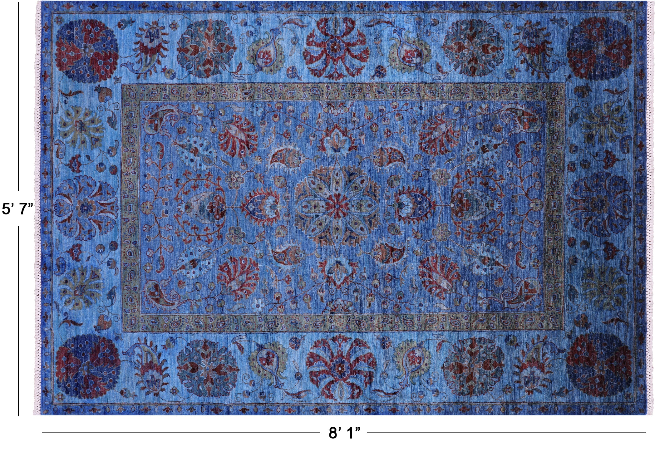 Blue Hand-Knotted William Morris Wool Rug 5' 7" X 8' 1" - Q18442