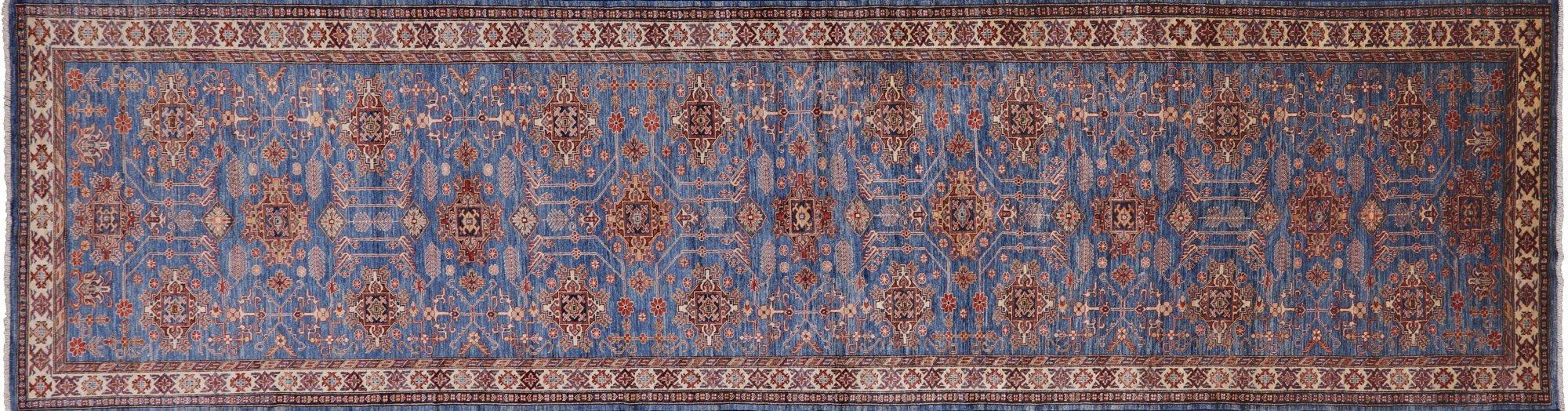 Blue 4' 10" X 19' 3" Hand Knotted Wool Super Kazak Rug - P10024