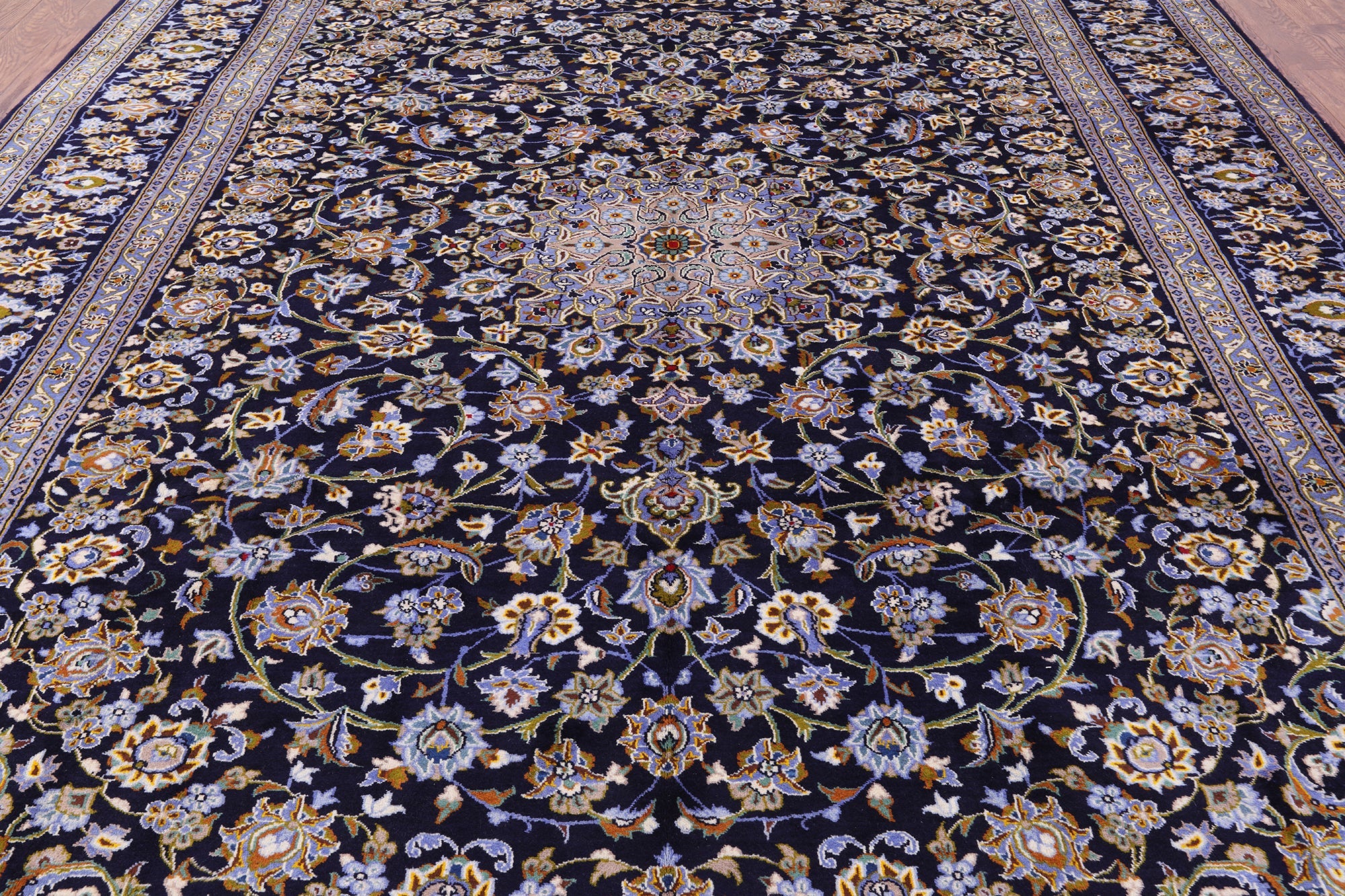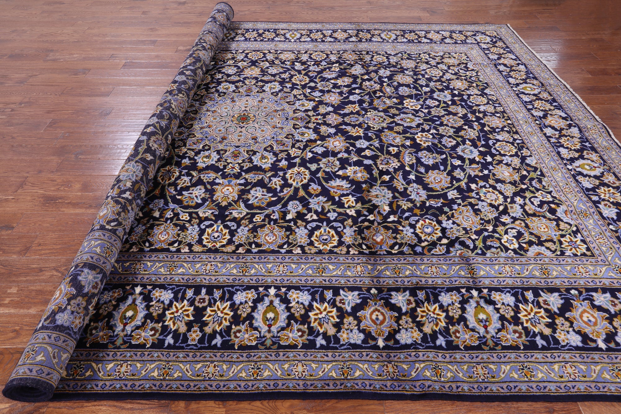 Blue 10' 2" X 13' 5" Handmade New Persian Kashan Wool Rug - S2054 is backordered and will ship as soon as it is back in stock.