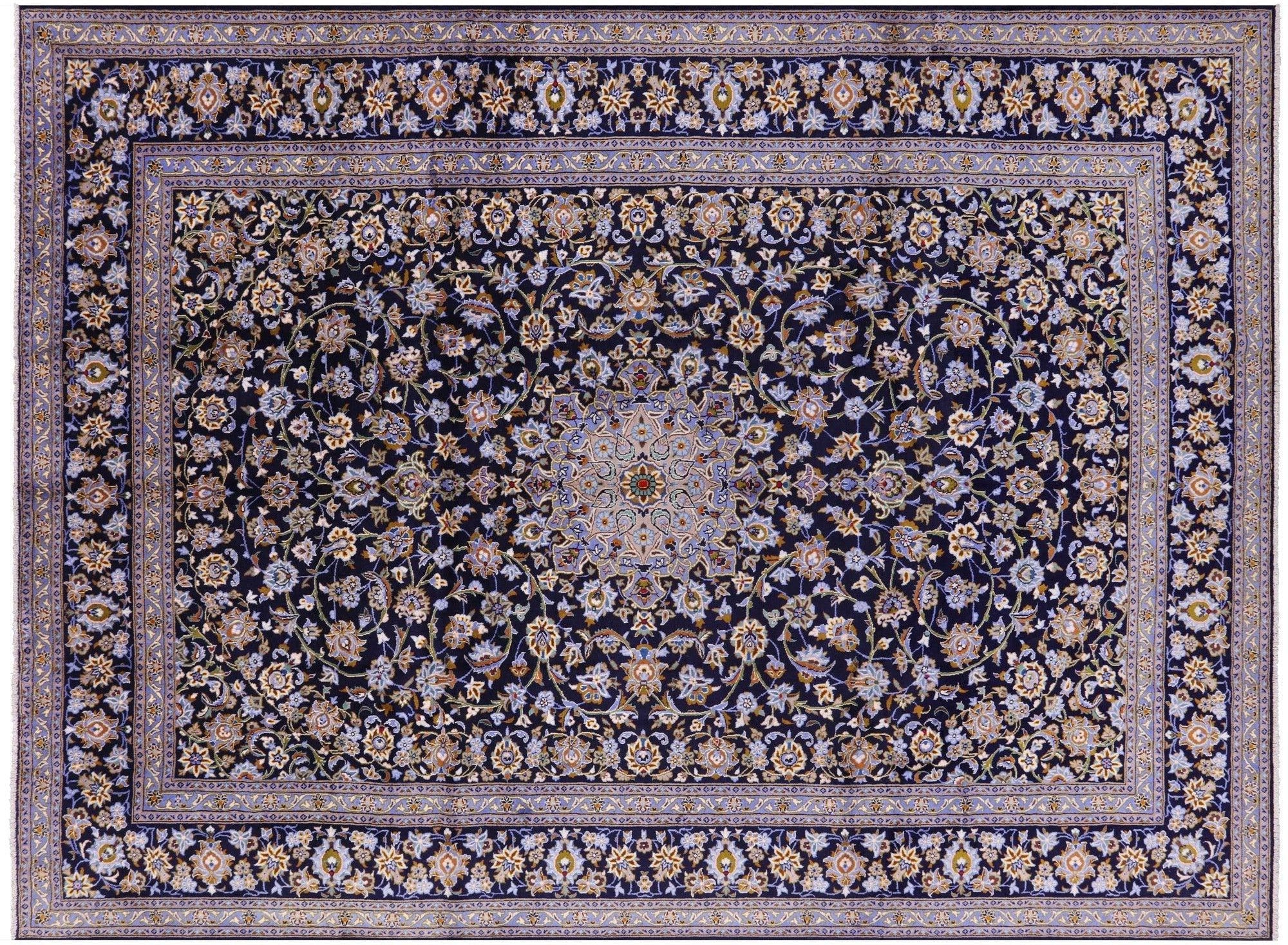Blue 10' 2" X 13' 5" Handmade New Persian Kashan Wool Rug - S2054