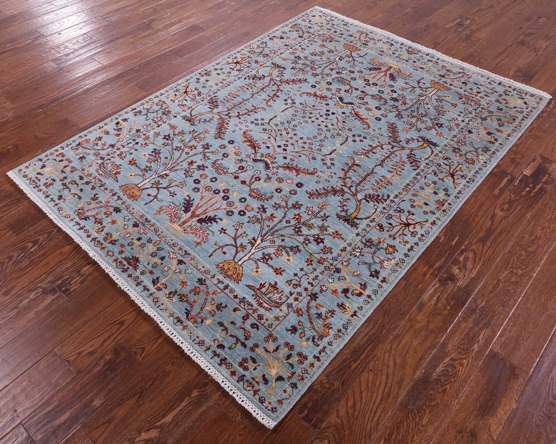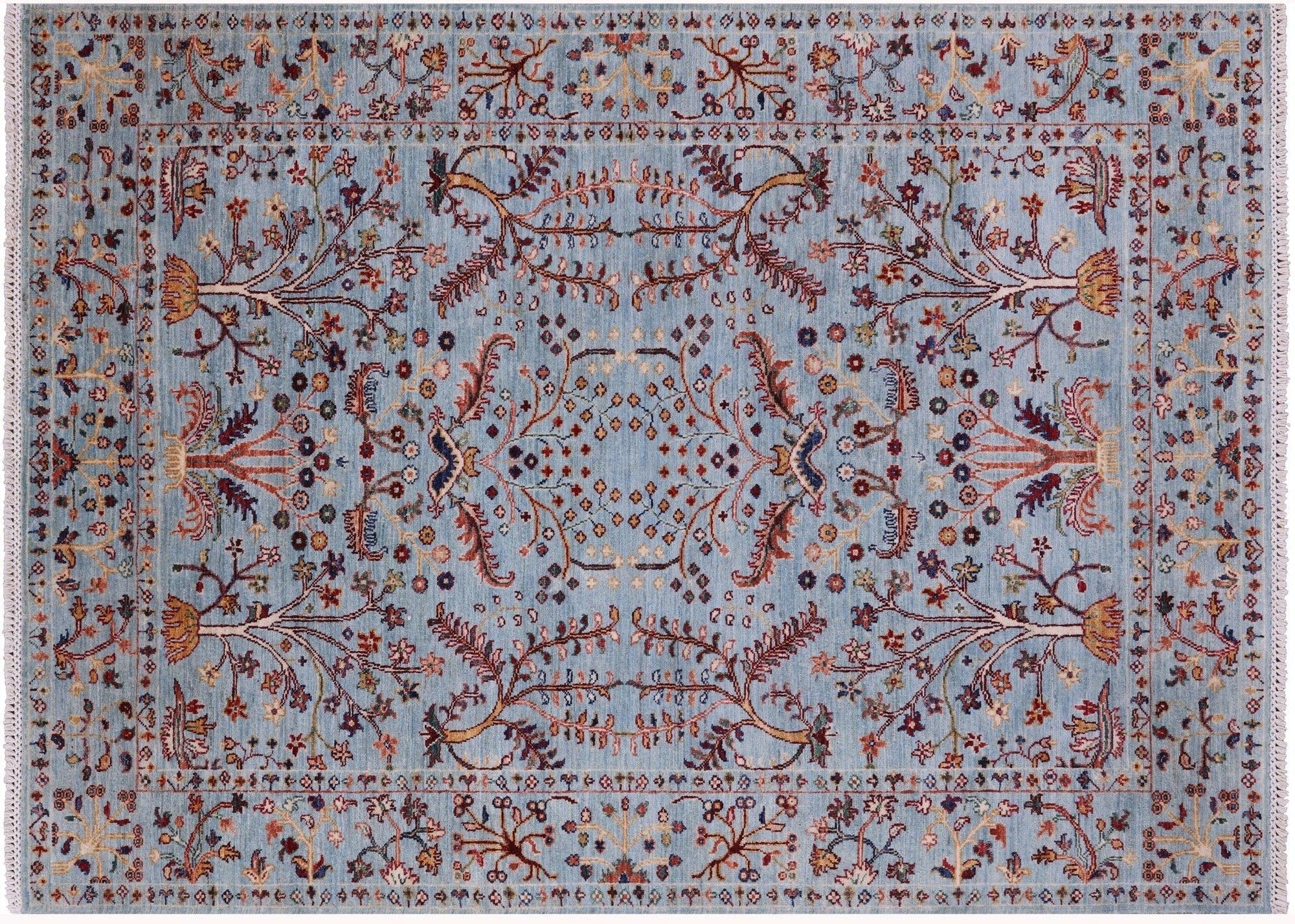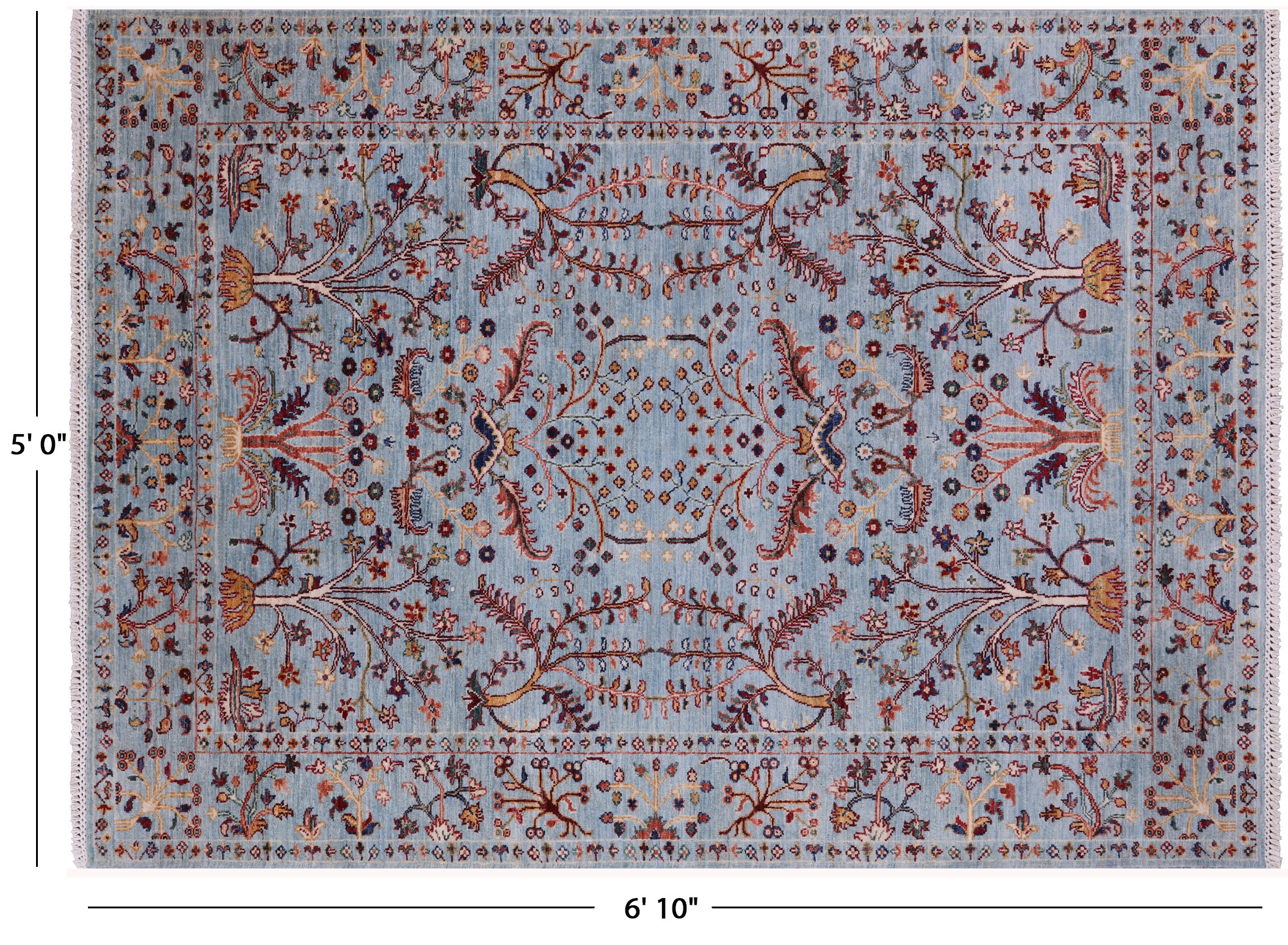 Blue 5' 0" X 6' 10" Handmade Persian Tabriz Wool Rug - Q18575