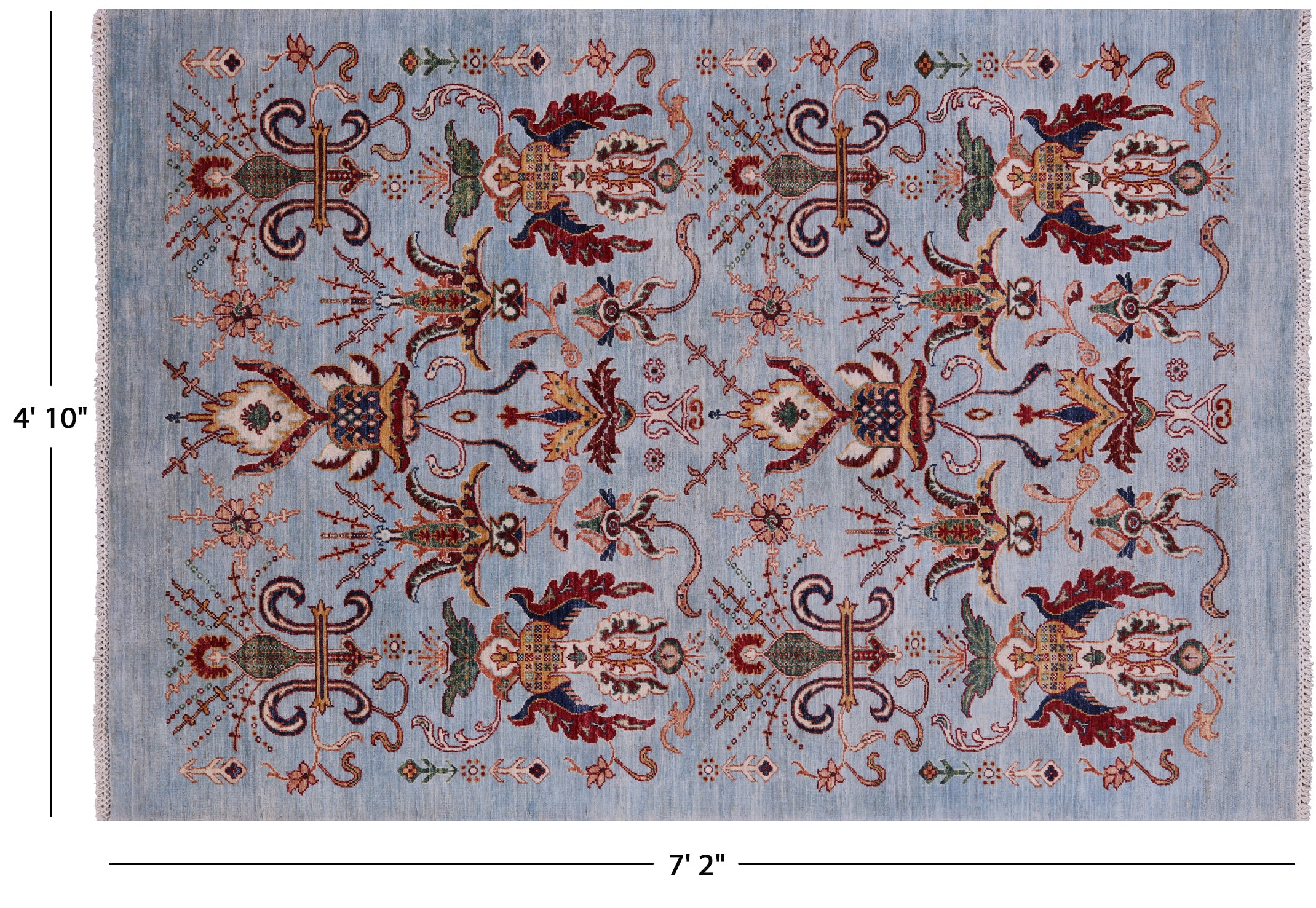 Blue 4' 10" X 7' 2" Handmade Persian Tabriz Wool Rug - Q18577
