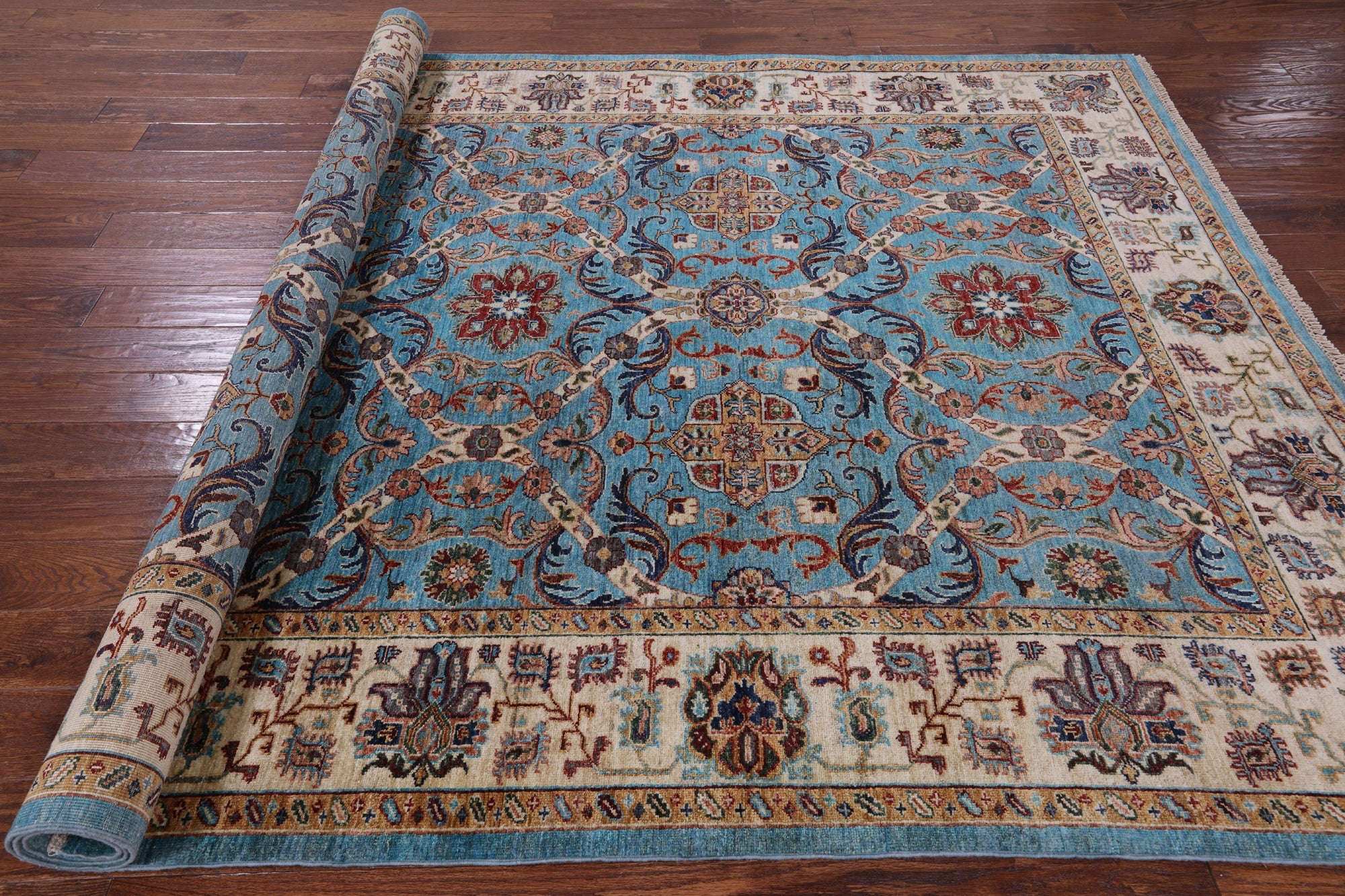 Blue Handmade Persian Tabriz Wool Rug 7' 0" X 9' 8" - Q8329 is backordered and will ship as soon as it is back in stock.