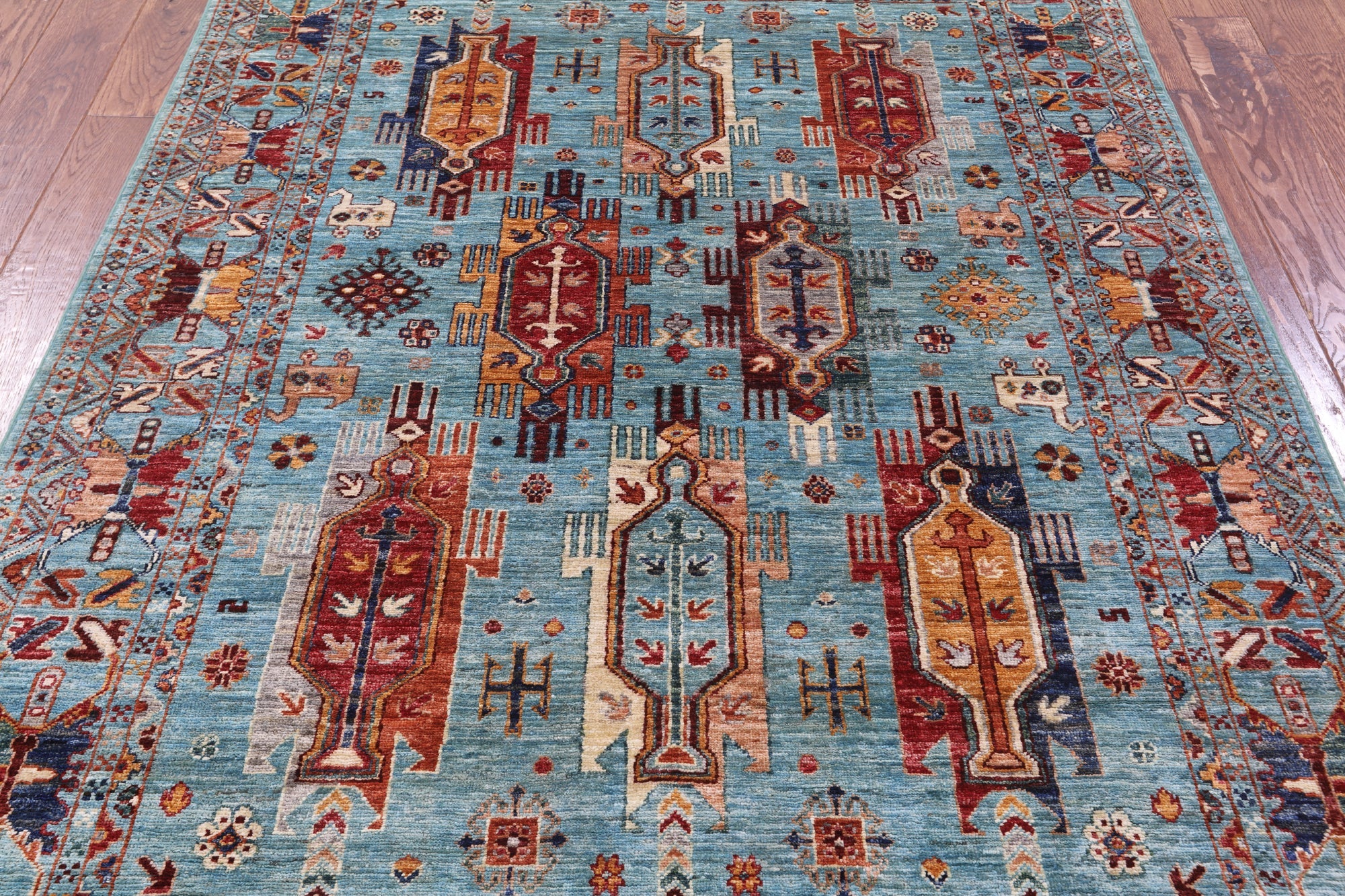 Blue Handmade Tribal Fine Serapi Wool Rug 4' 11" X 6' 9" - Q16457 is backordered and will ship as soon as it is back in stock.