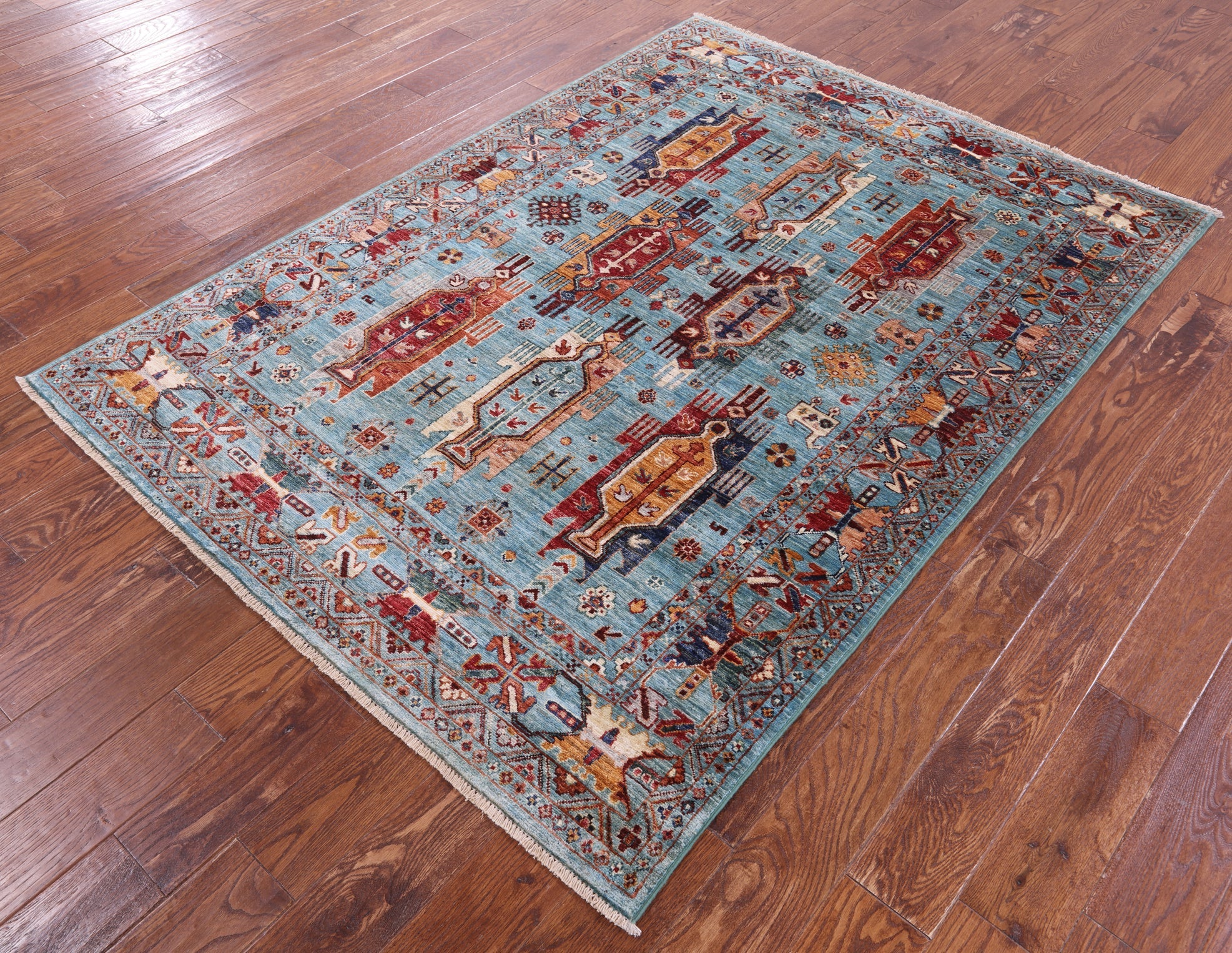 Blue Handmade Tribal Fine Serapi Wool Rug 4' 11" X 6' 9" - Q16457