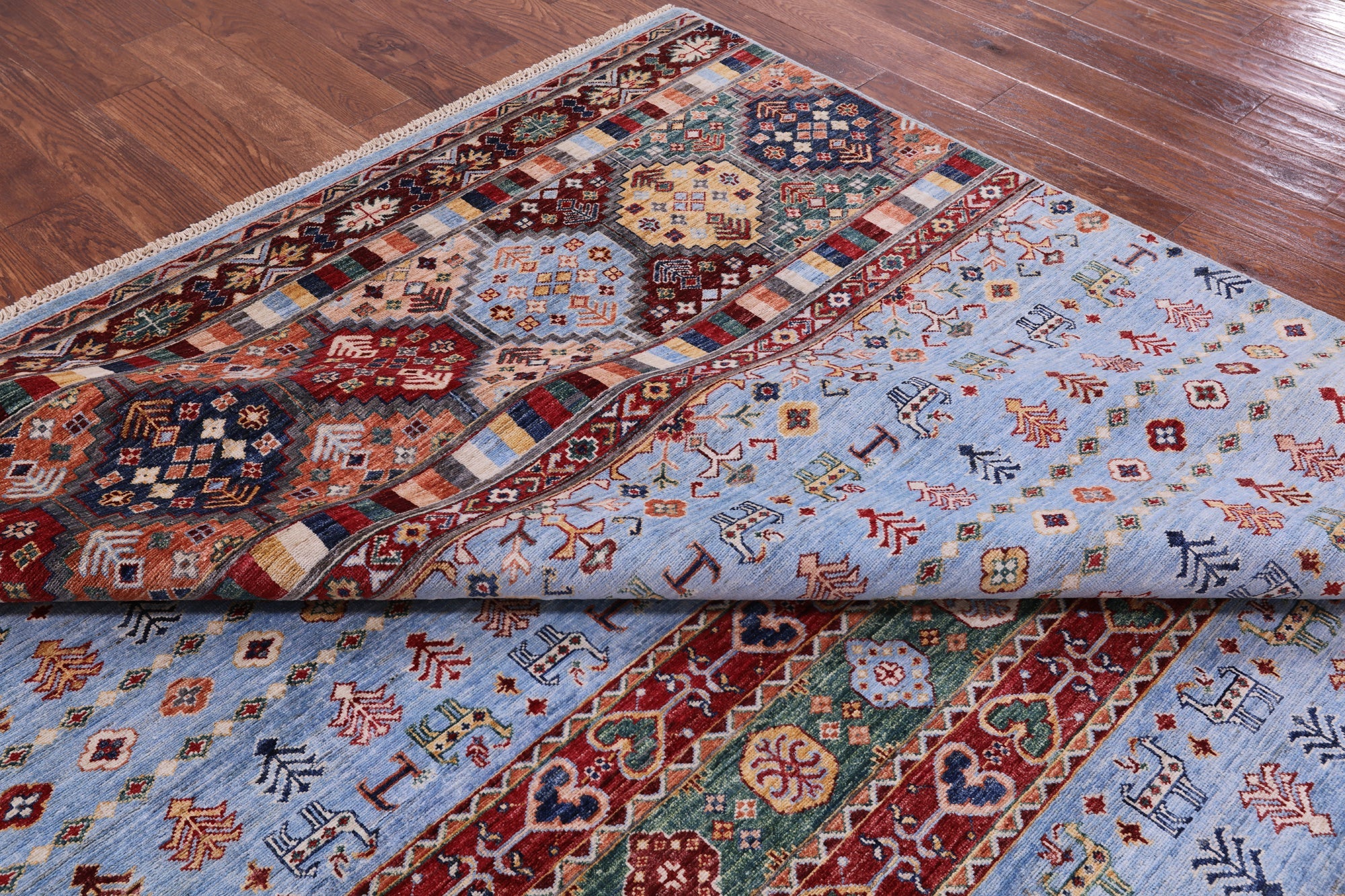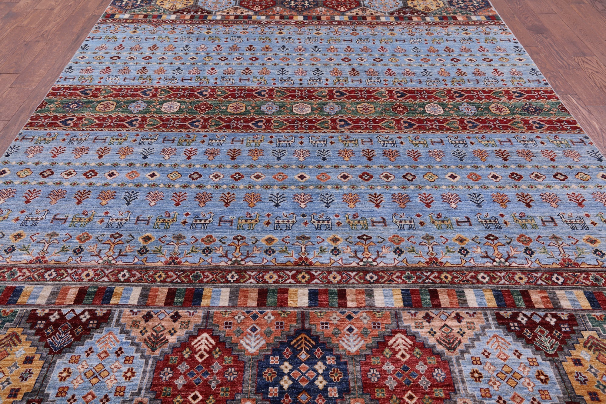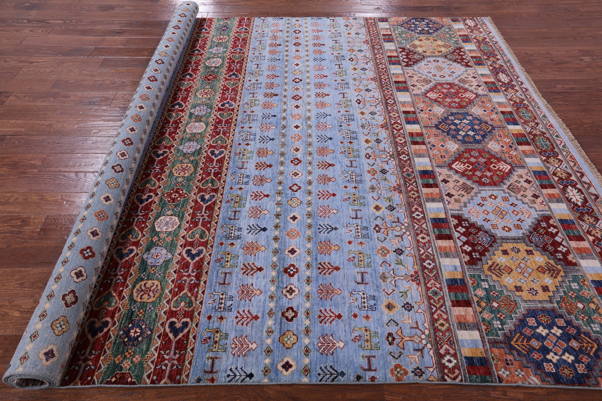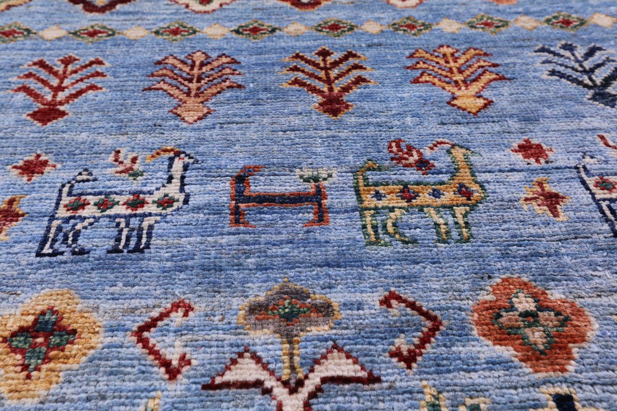 Blue Handmade Tribal Persian Gabbeh Wool Rug 8' 2" X 11' 5" - Q7663 is backordered and will ship as soon as it is back in stock.