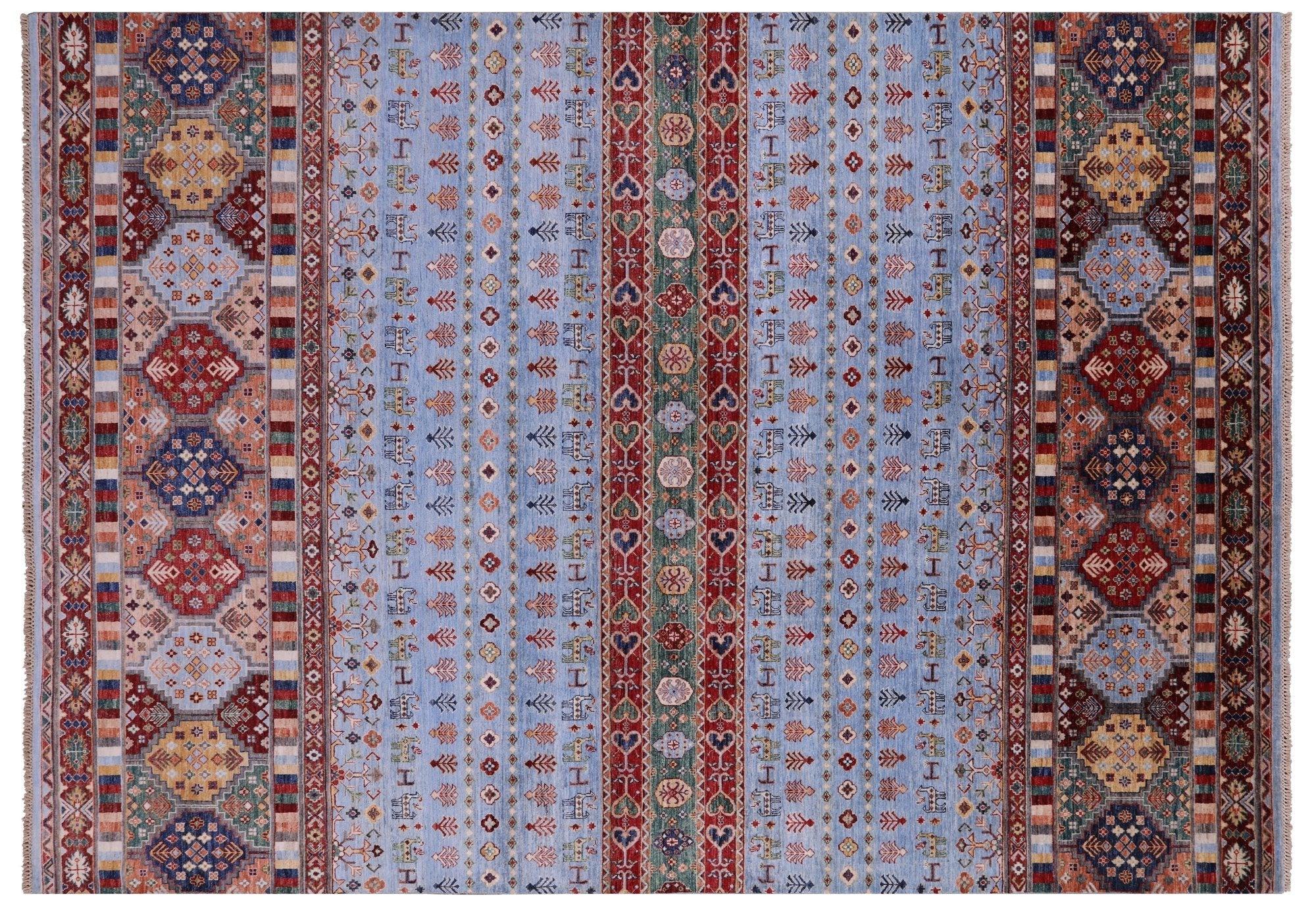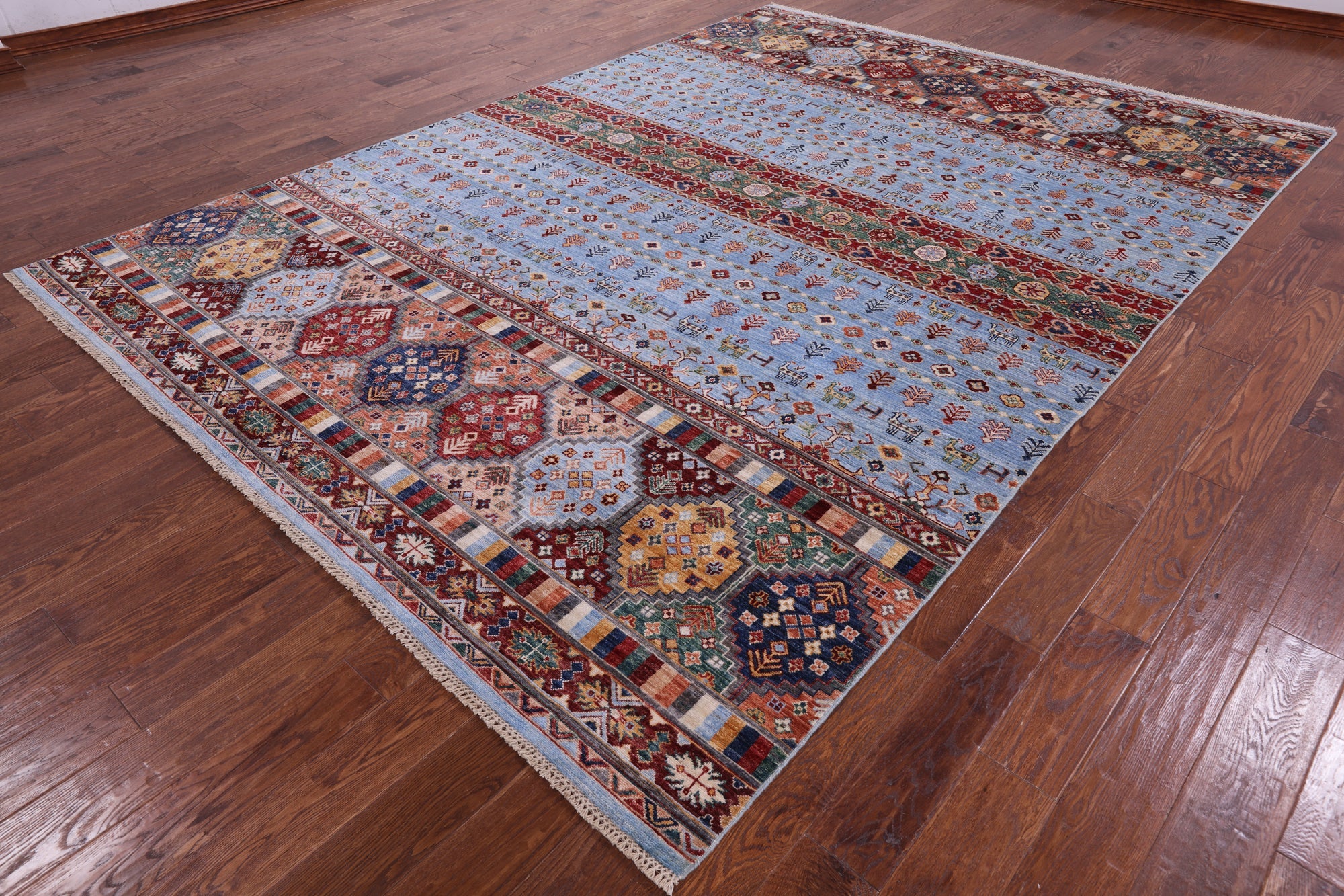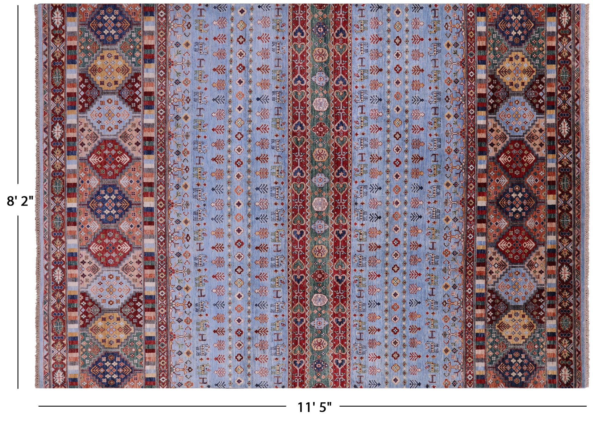 Blue Handmade Tribal Persian Gabbeh Wool Rug 8' 2" X 11' 5" - Q7663