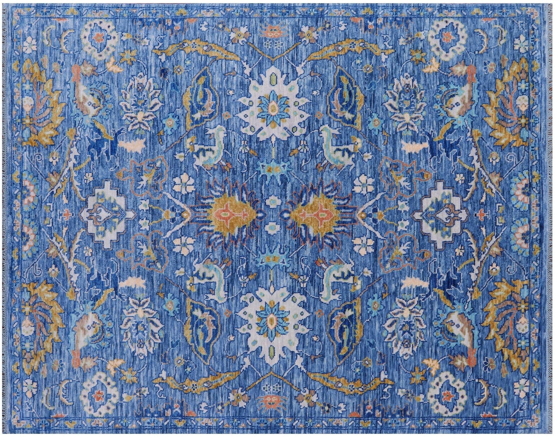 Blue 8' 0" X 10' 1" Handmade Turkish Angora Oushak Wool Rug - Q14970