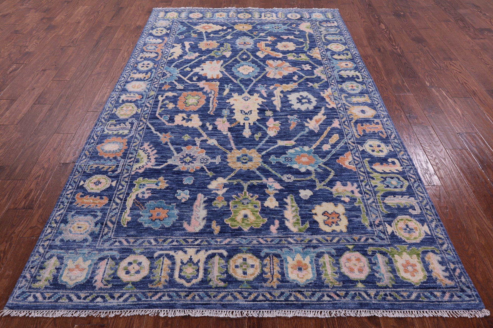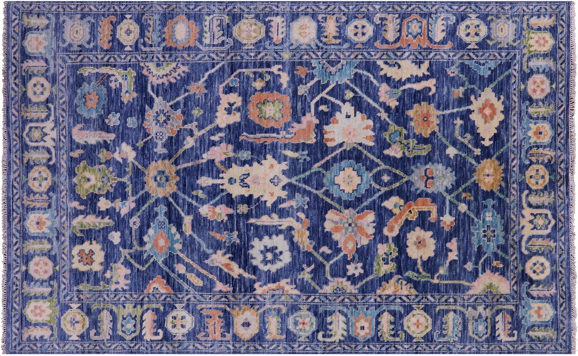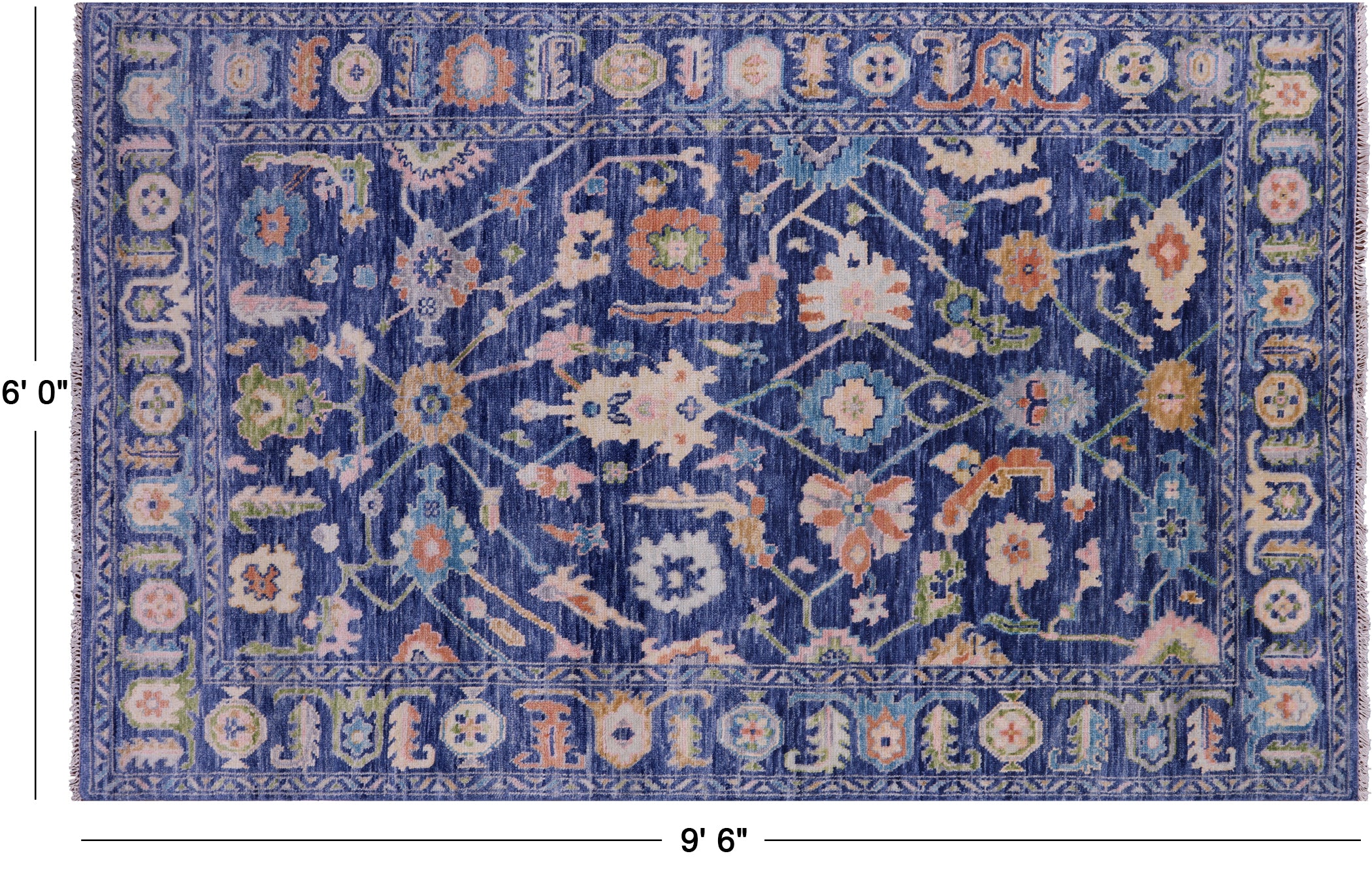 Blue 6' 0" X 9' 6" Handmade Turkish Angora Oushak Wool Rug - Q15610