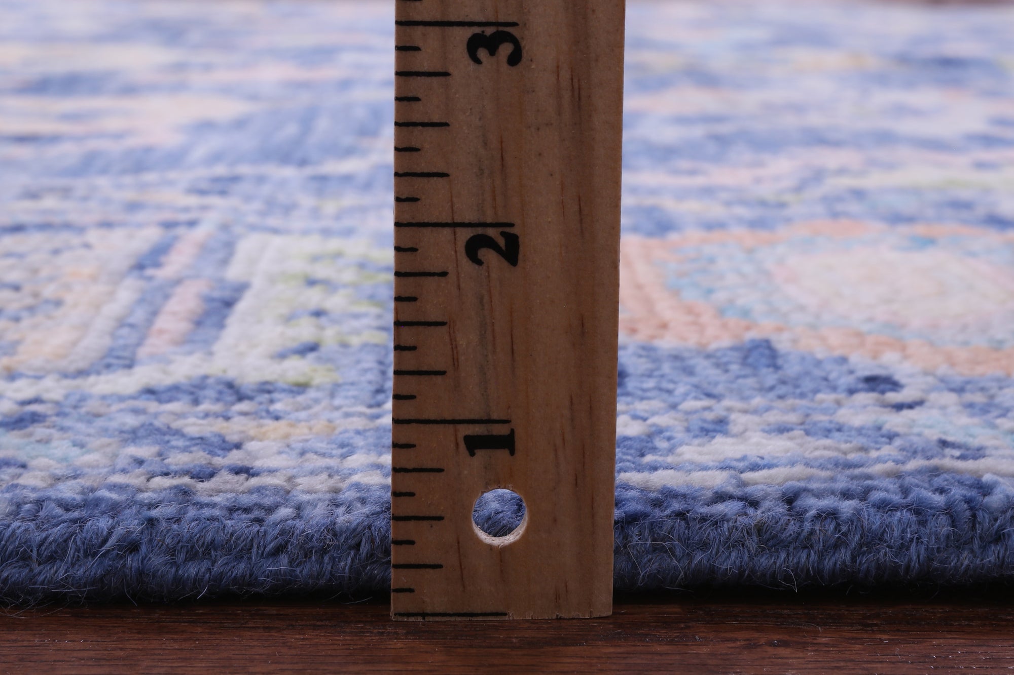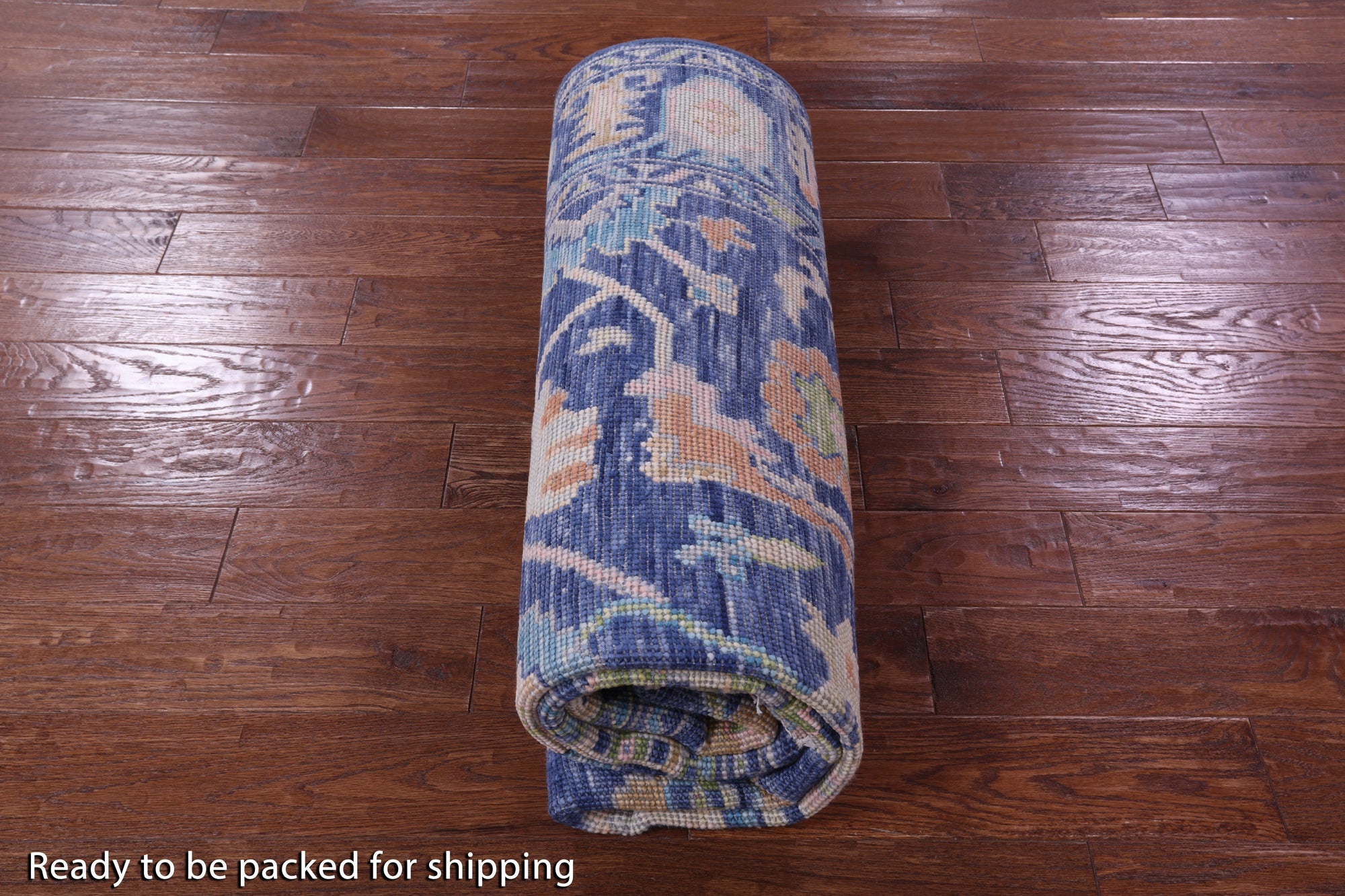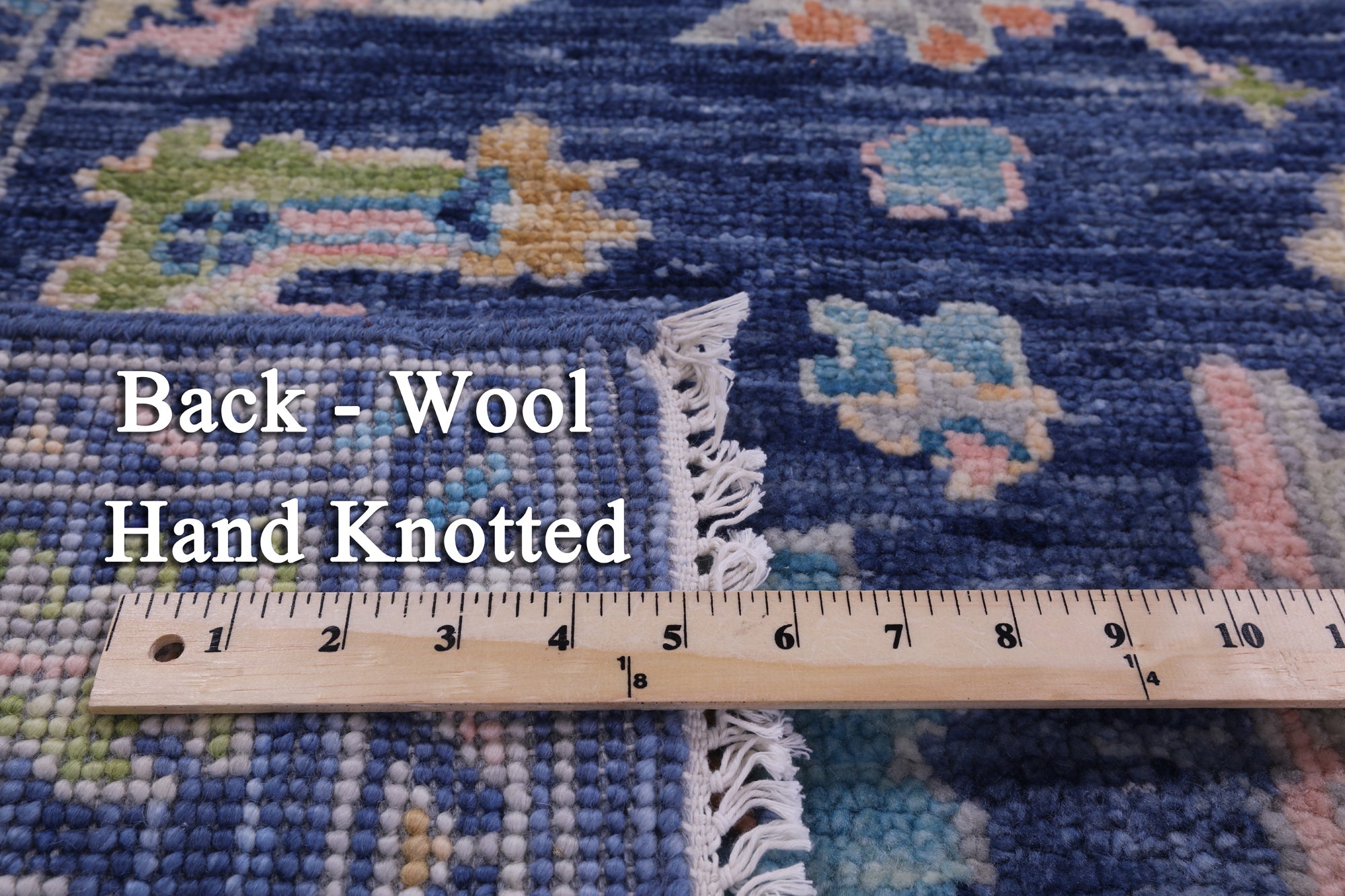 Blue 6' 0" X 9' 6" Handmade Turkish Angora Oushak Wool Rug - Q15610
