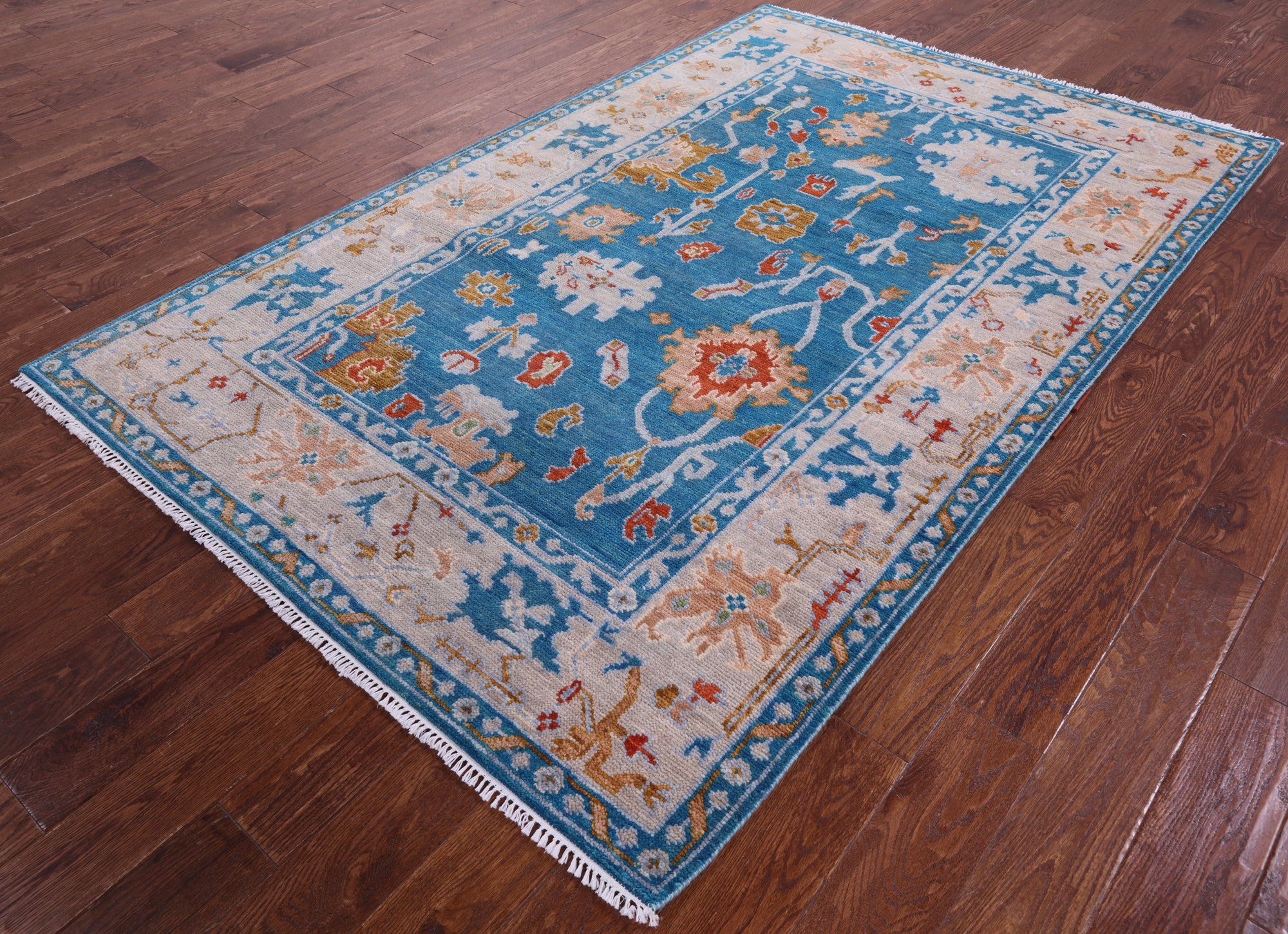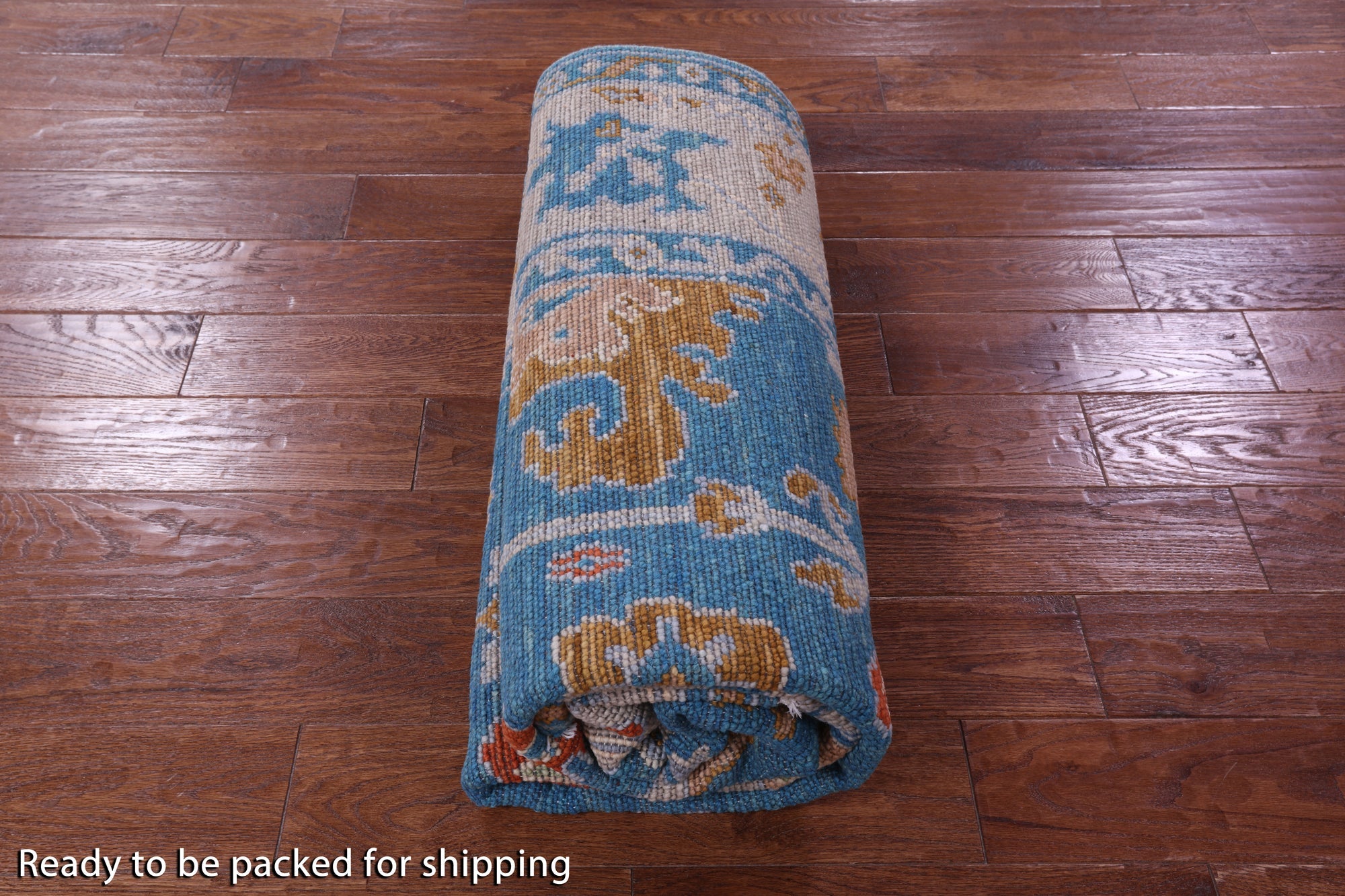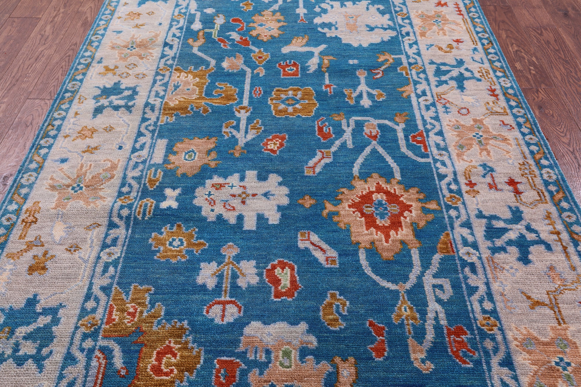 Blue Handmade Turkish Angora Oushak Wool Rug 5' 1" X 8' 0" - Q15870 is backordered and will ship as soon as it is back in stock.