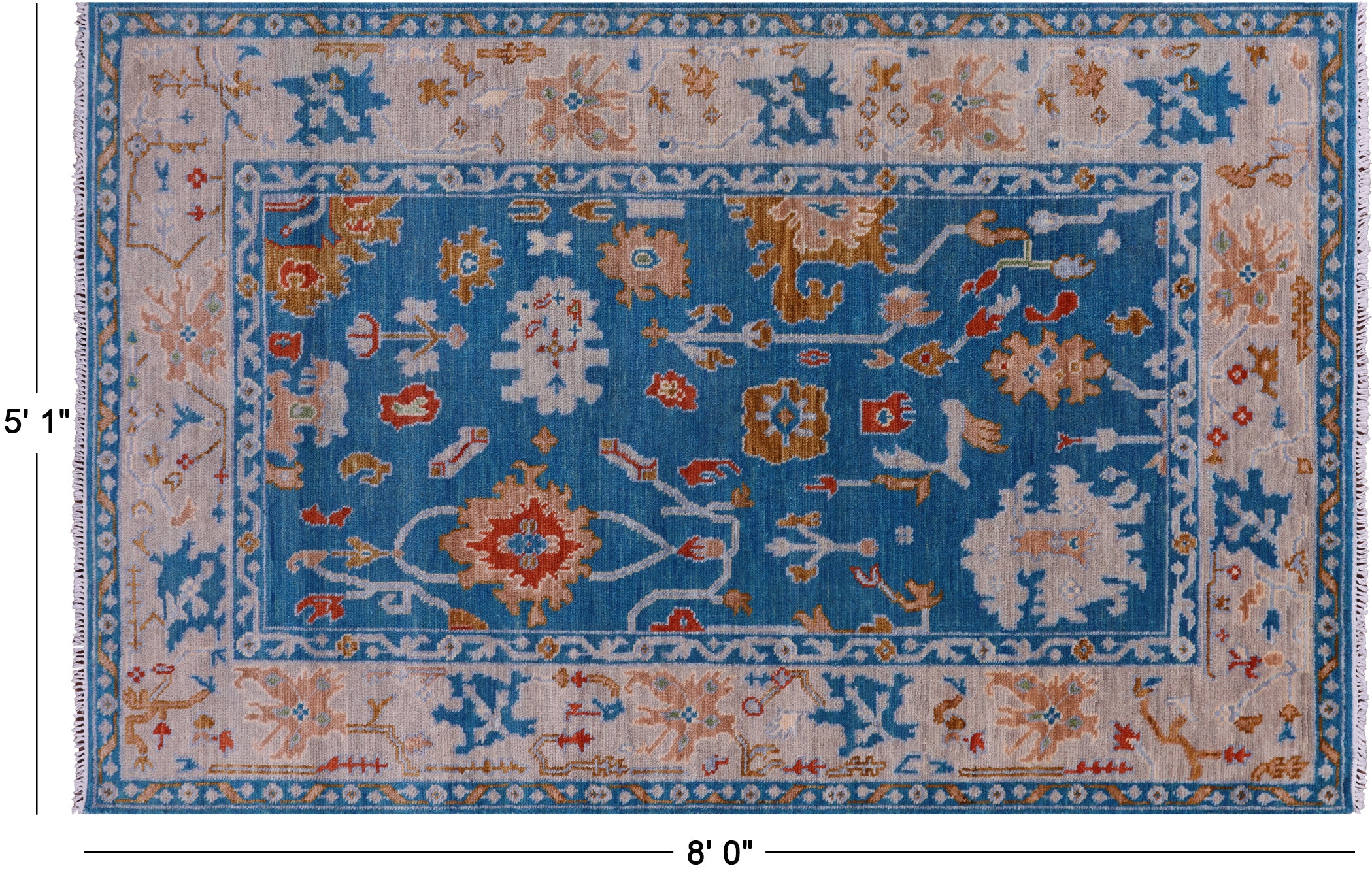 Blue Handmade Turkish Angora Oushak Wool Rug 5' 1" X 8' 0" - Q15870