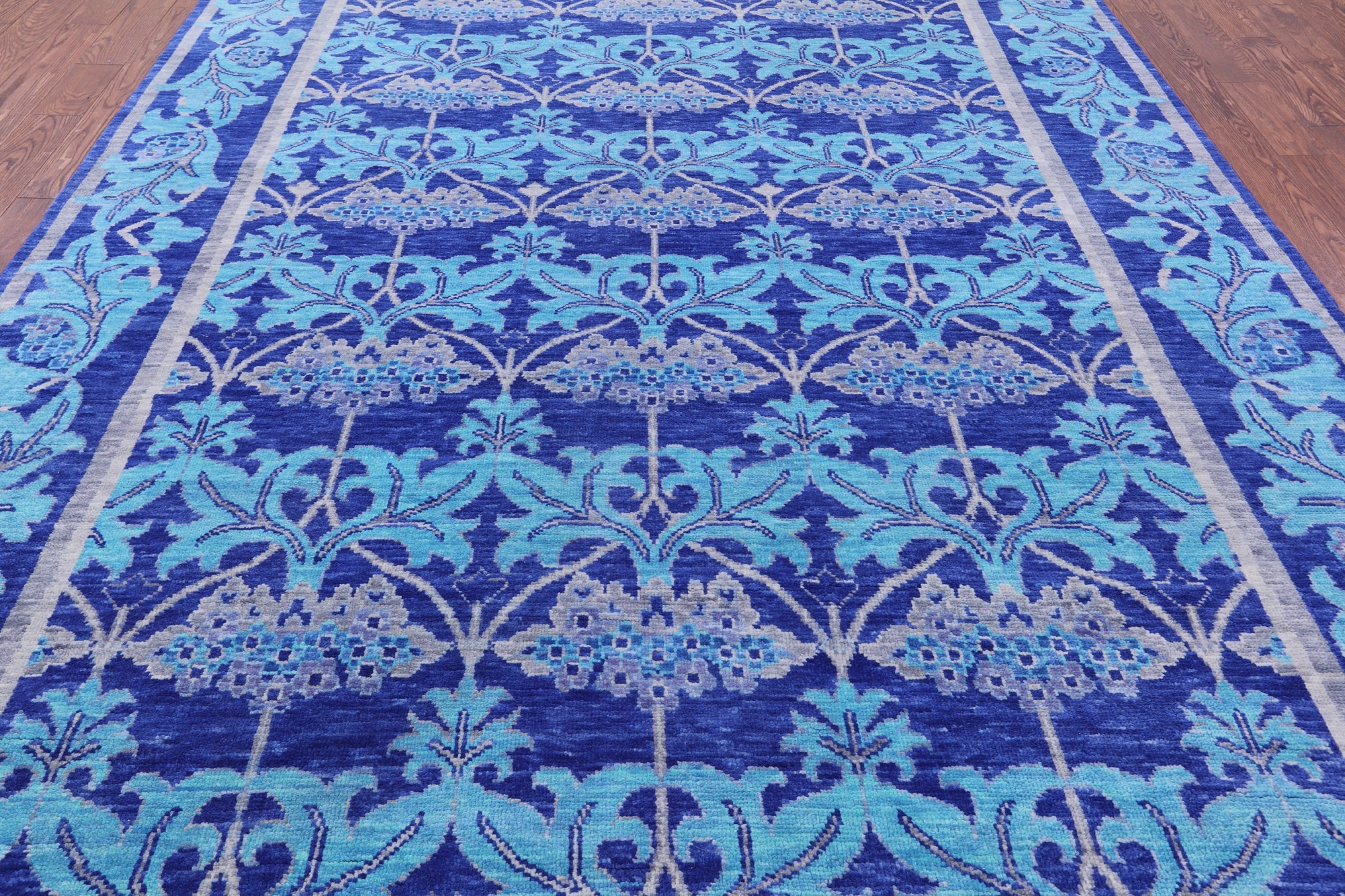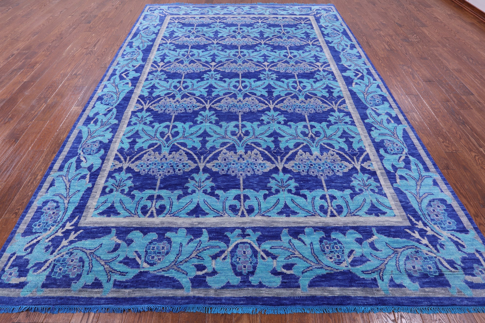 Blue Handmade William Morris Wool Rug 8' 10" X 12' 5" - Q13383 is backordered and will ship as soon as it is back in stock.