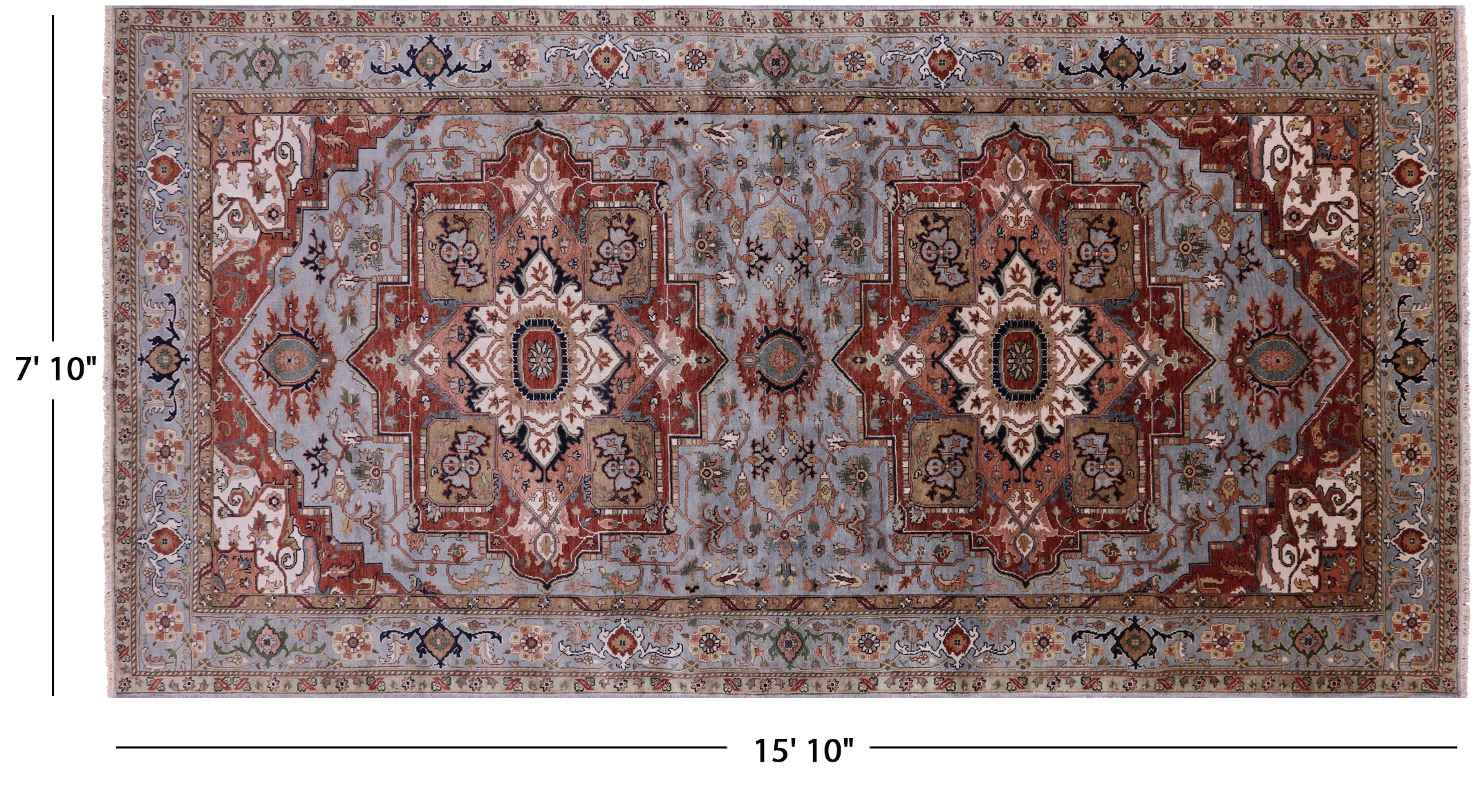 Blue 7' 10" X 15' 10" Heriz Serapi Handmade Wool Rug - Q21103