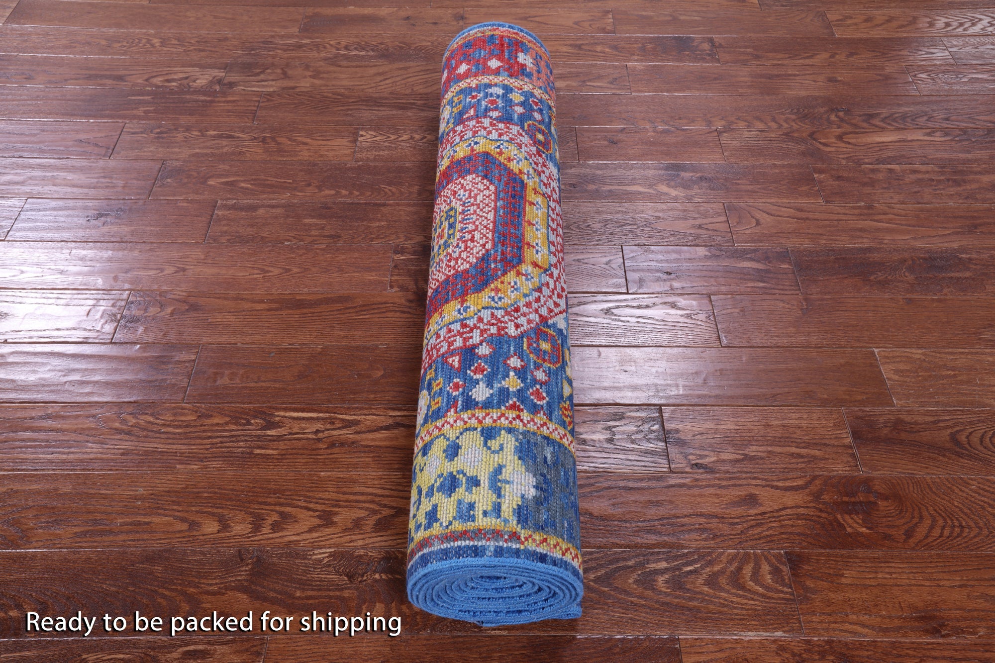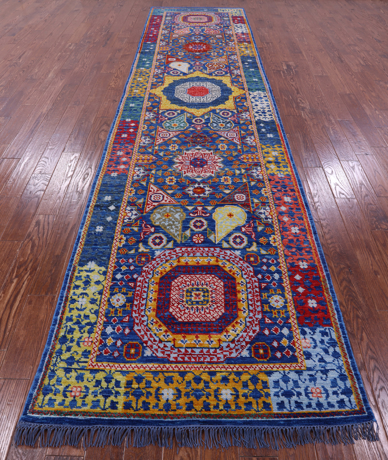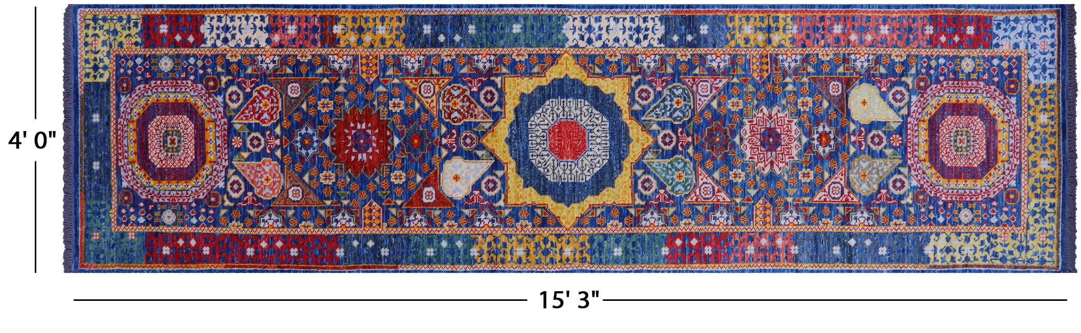 Blue 4' 0" X 15' 3" Mamluk Hand Knotted Wool Runner Rug - Q22357 is backordered and will ship as soon as it is back in stock.