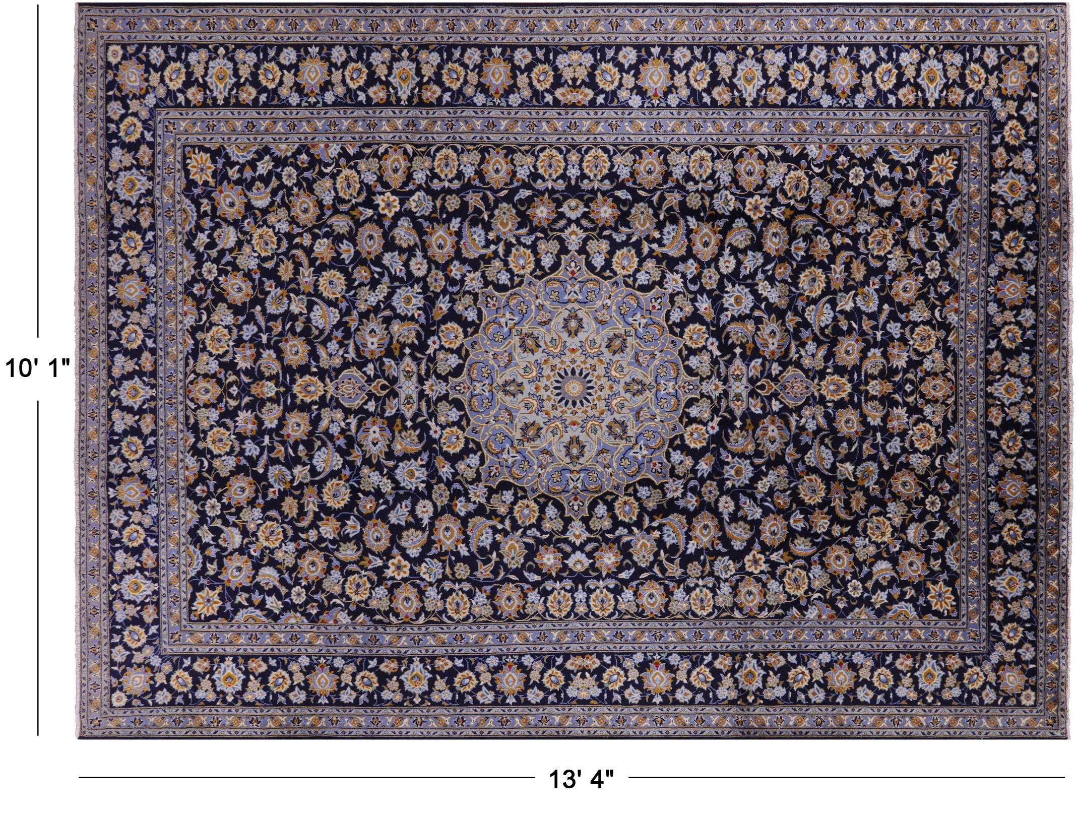 Blue New Persian Kashan Hand-Knotted Wool Rug 10' 1" X 13' 4" - S1186