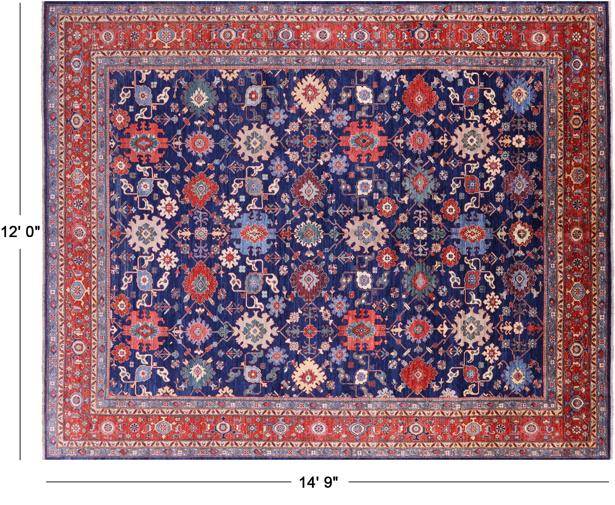 Blue 12' 0" X 14' 9" Persian Fine Serapi Hand Knotted Wool Rug - Q13904