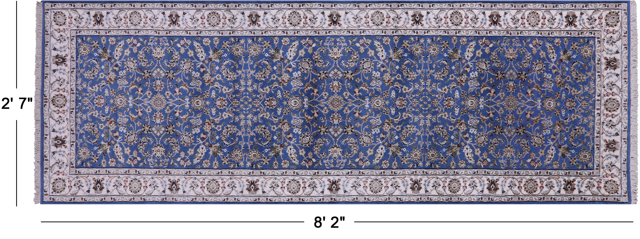 Blue Persian Nain Handmade Wool & Silk Runner Rug 2' 7" X 8' 2" - Q23629