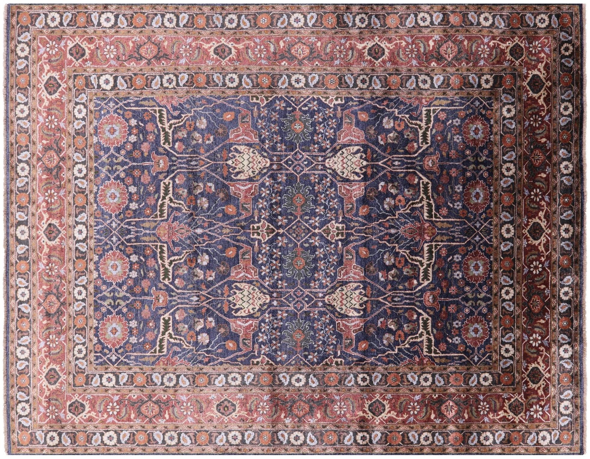 Blue Persian Serapi Handmade Silk Area Rug 8' 0" X 10' 2"- Q4156