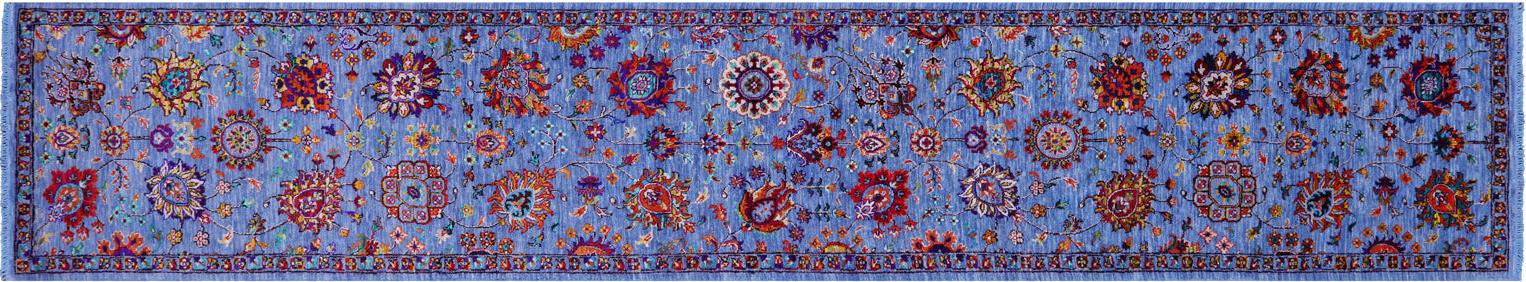 Blue Persian Tabriz Handmade Wool & Silk Runner Rug 2' 6" X 14' 0" - Q23413
