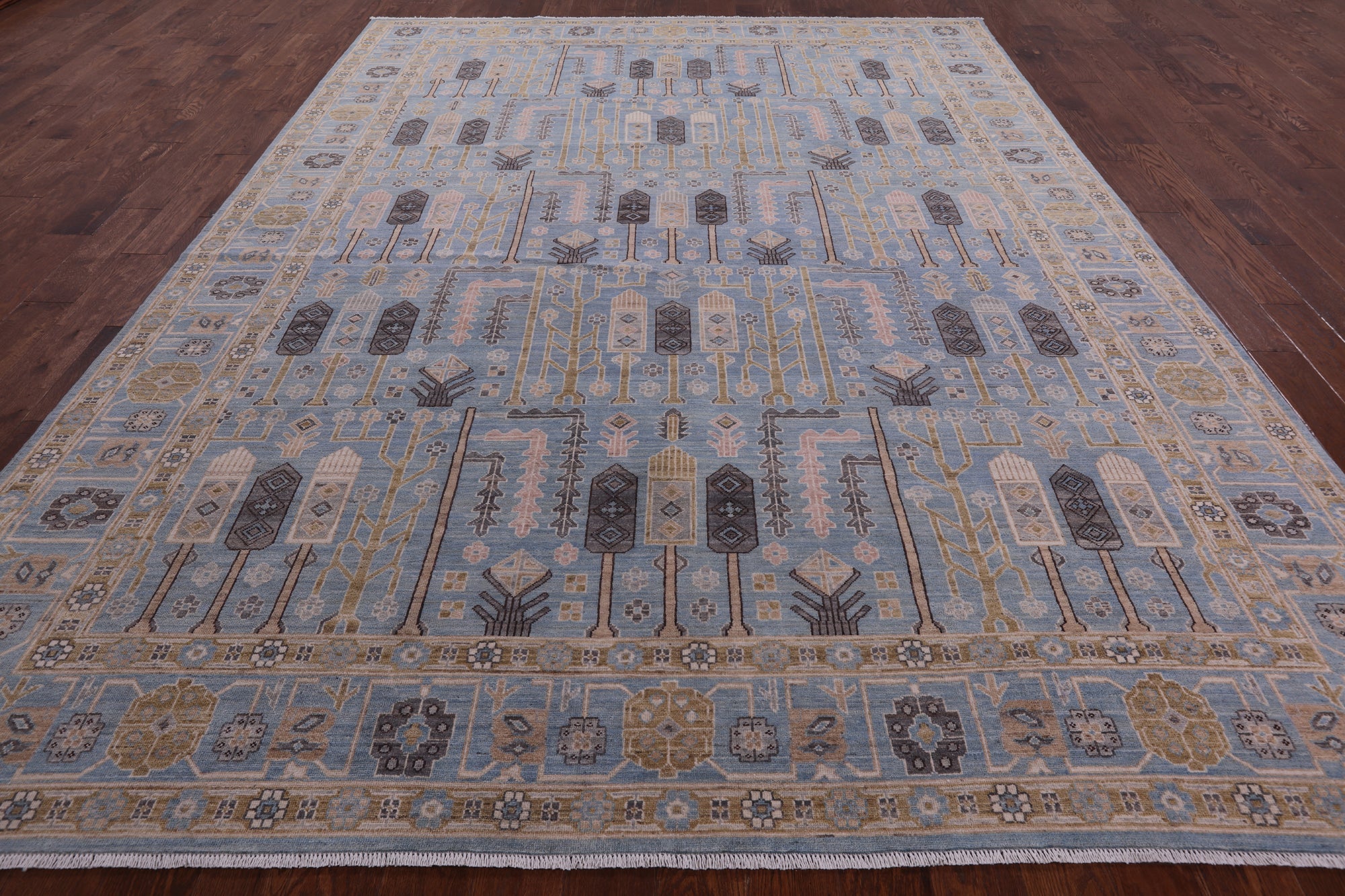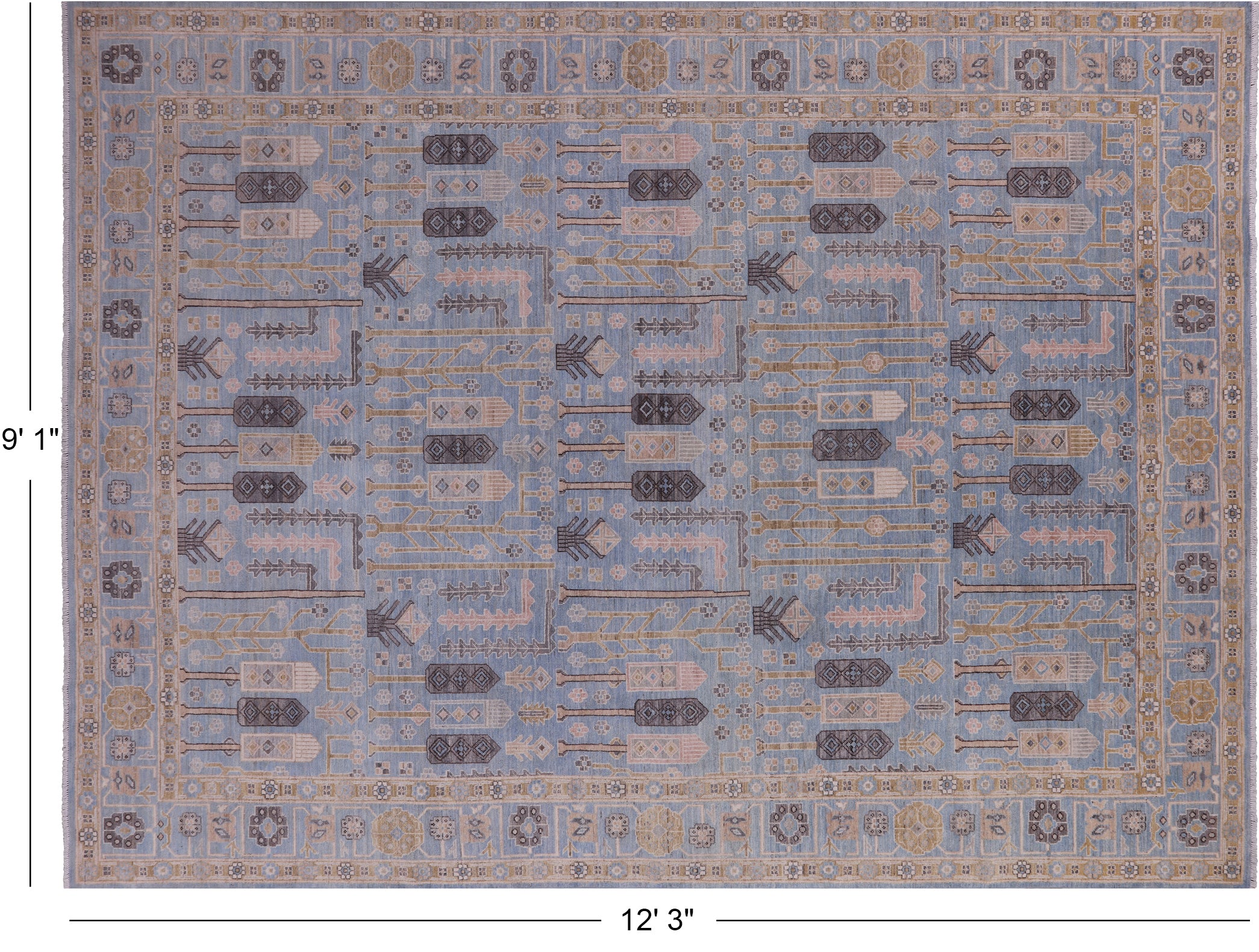 Blue 9' 1" X 12' 3" Persian Ziegler Hand-Knotted Wool Rug - Q5880