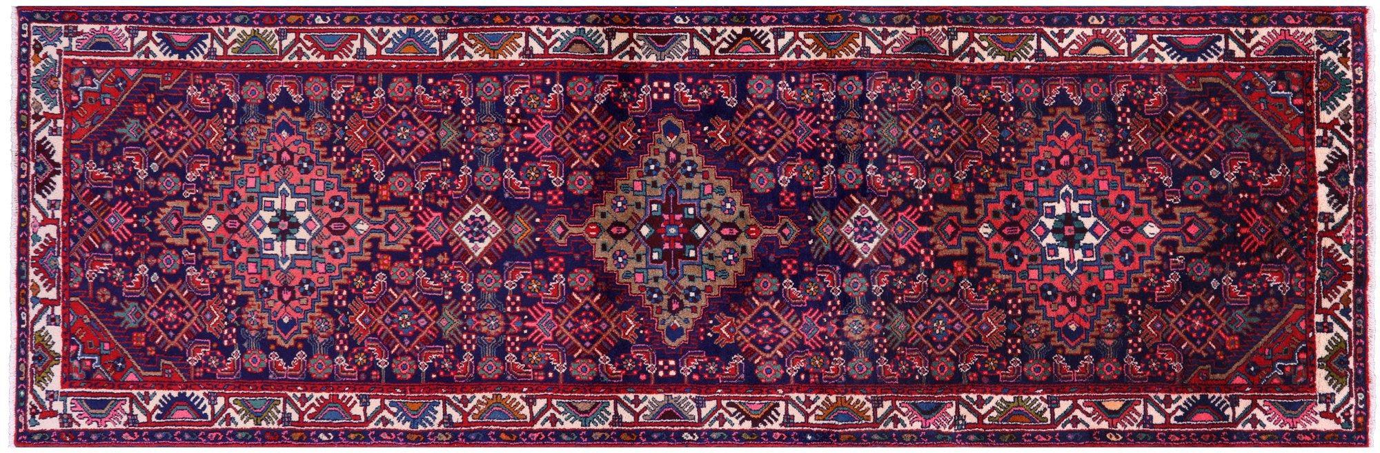 Blue Runner Handmade New Persian Hamadan Wool Rug 3' 6" X 10' 10" - S2327