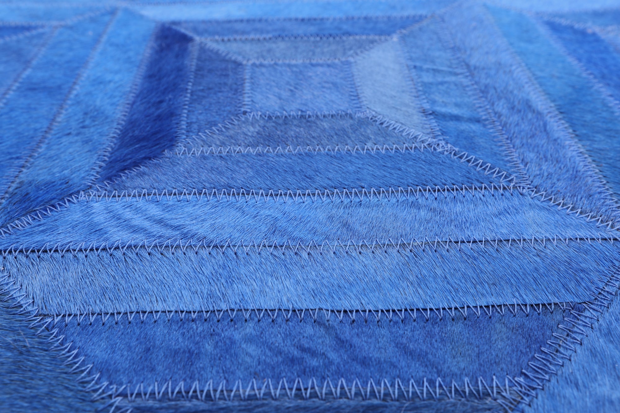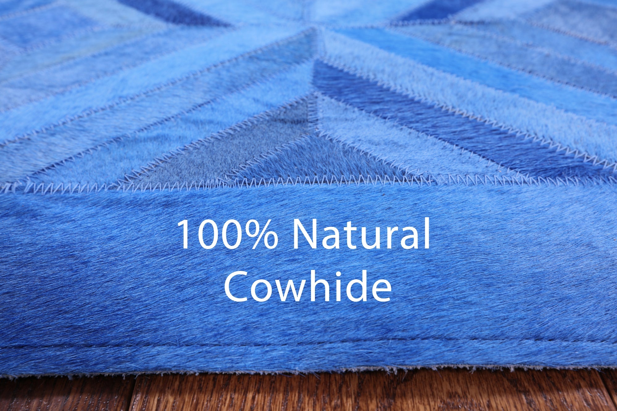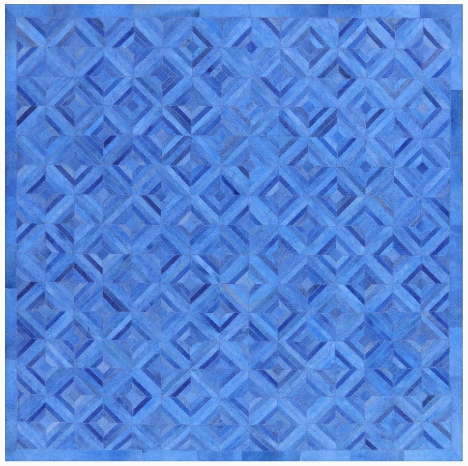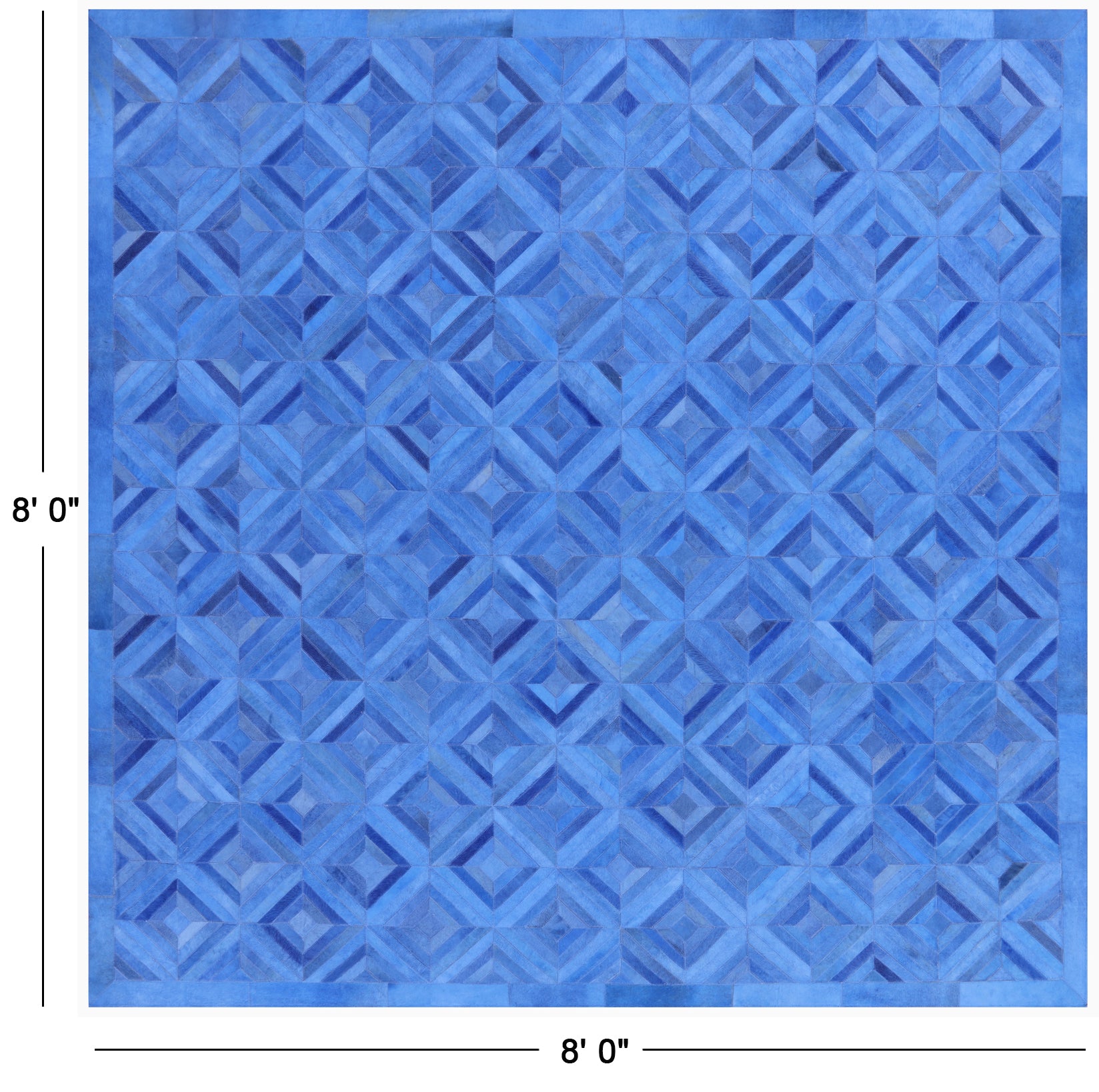 Blue 8' Square Overdyed Natural Cowhide Area Rug - Q2731