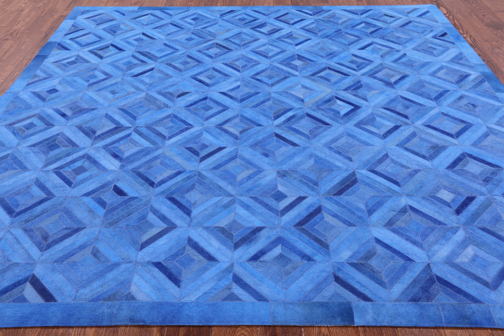 Blue 8' Square Overdyed Natural Cowhide Area Rug - Q2731 is backordered and will ship as soon as it is back in stock.