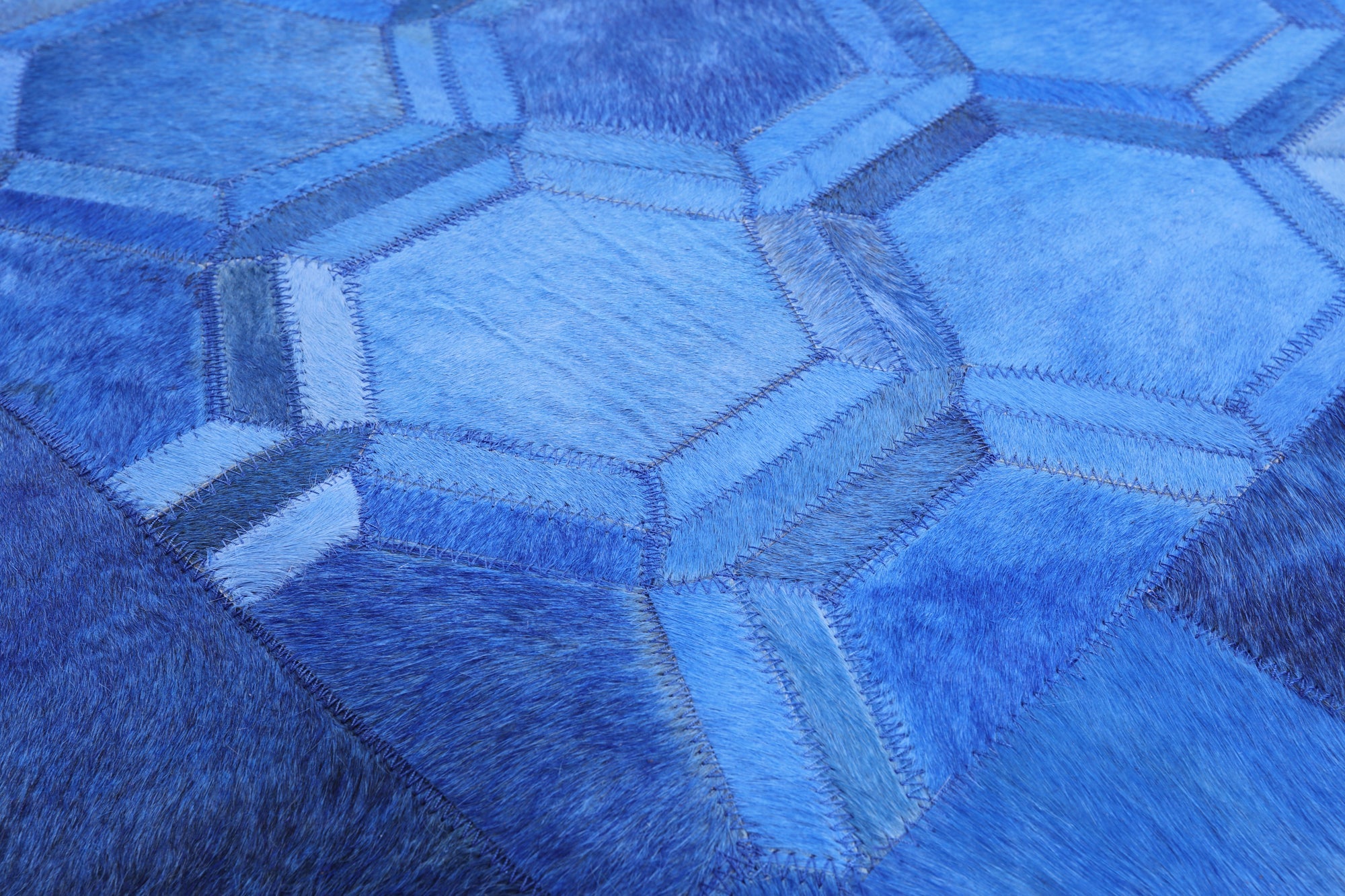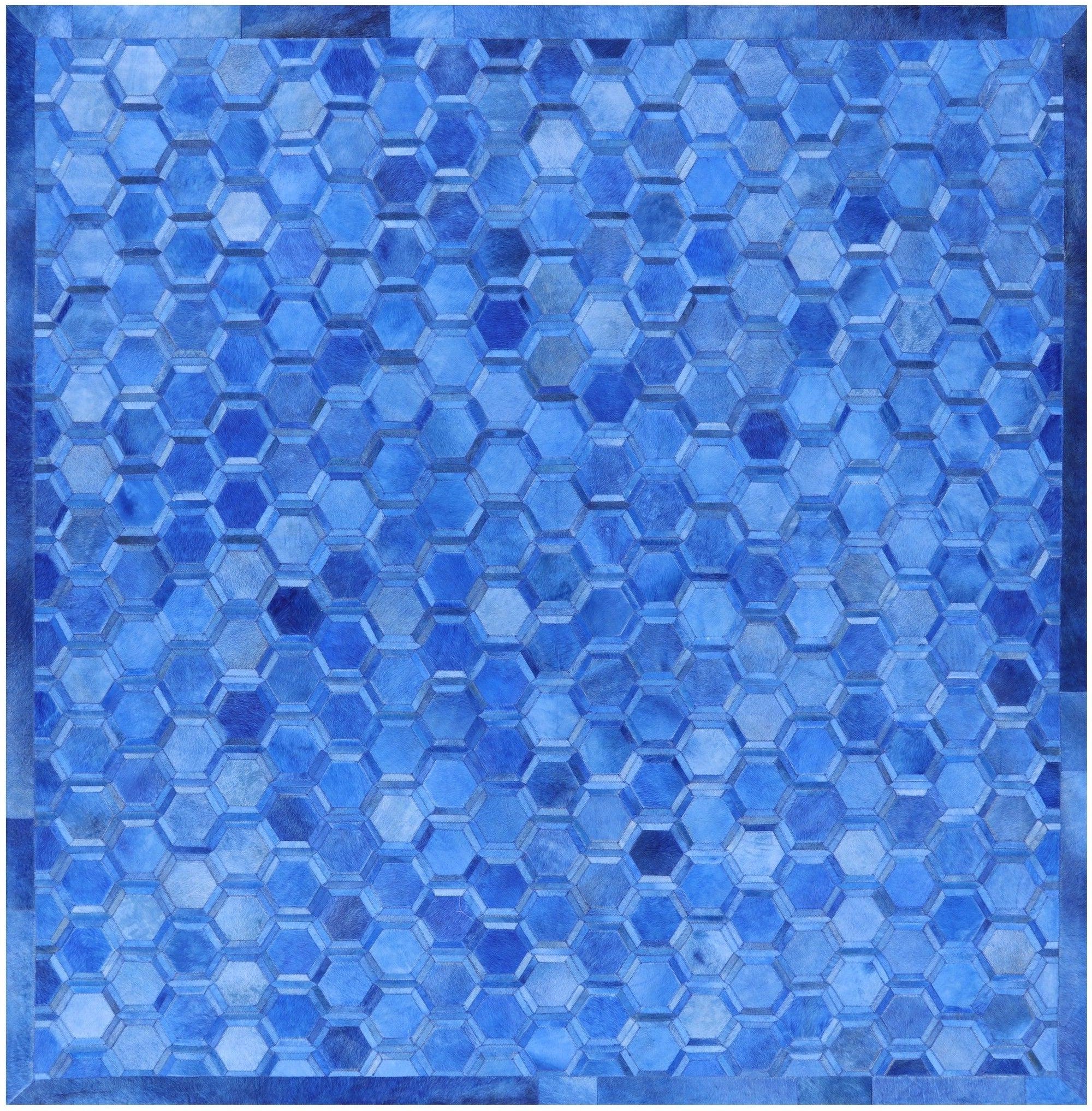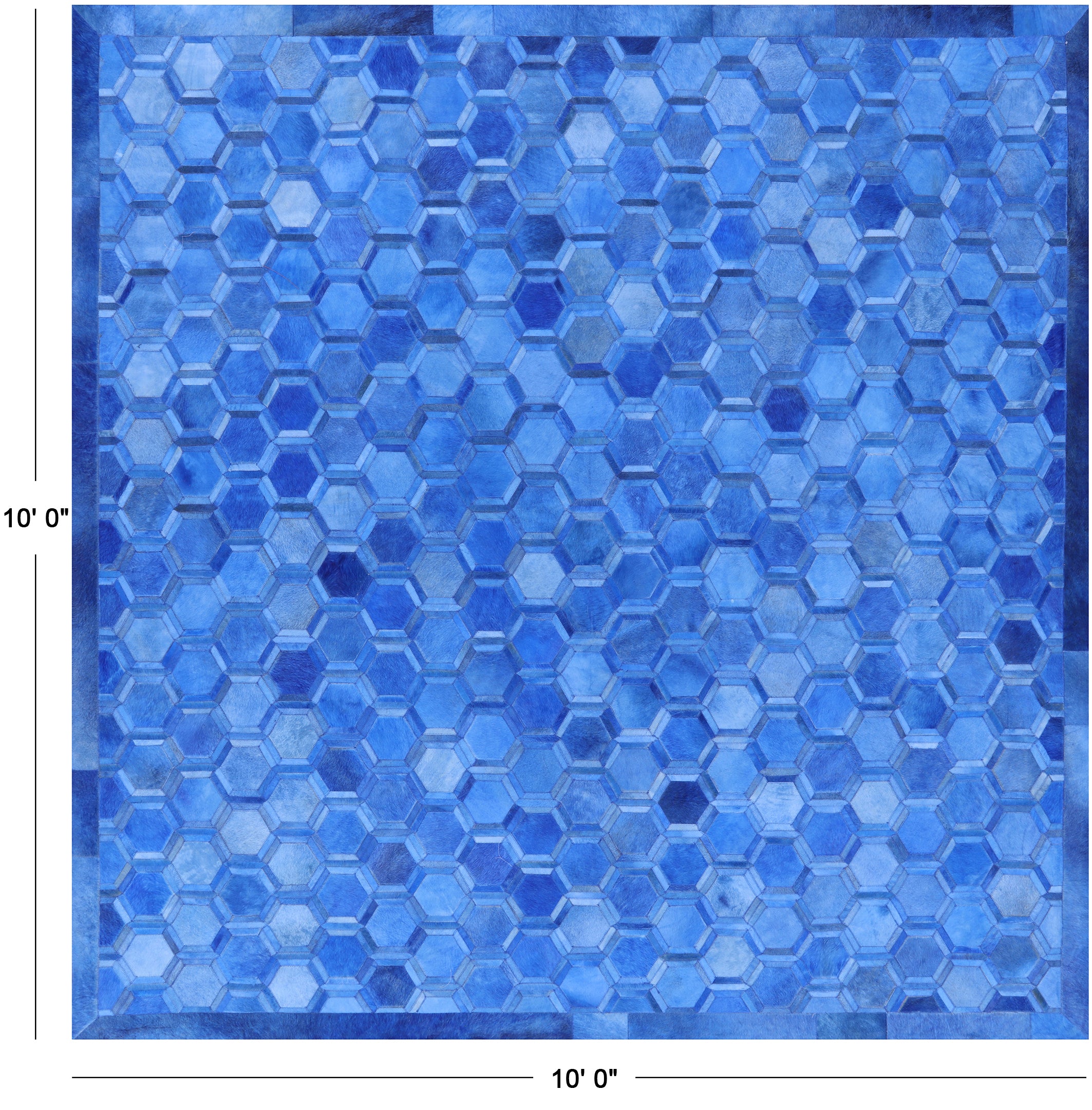 Blue 10' Square Overdyed Natural Cowhide Hand Stitched Rug - C1271