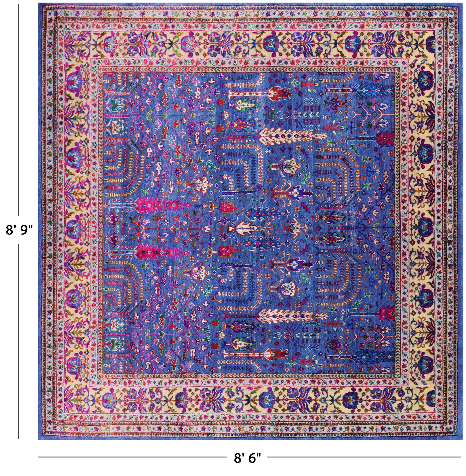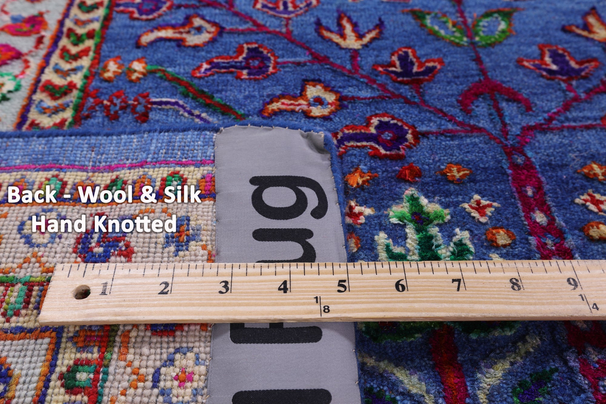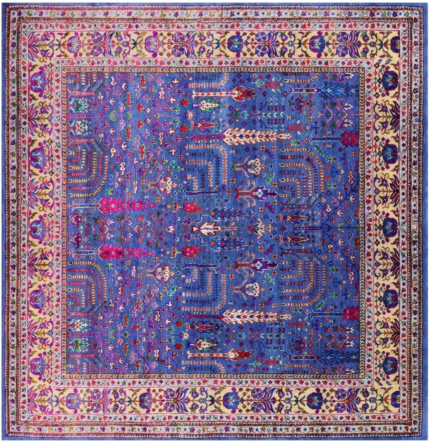 Blue 9' Square Wool & Silk Persian Ziegler Hand-Knotted Rug - Q13725