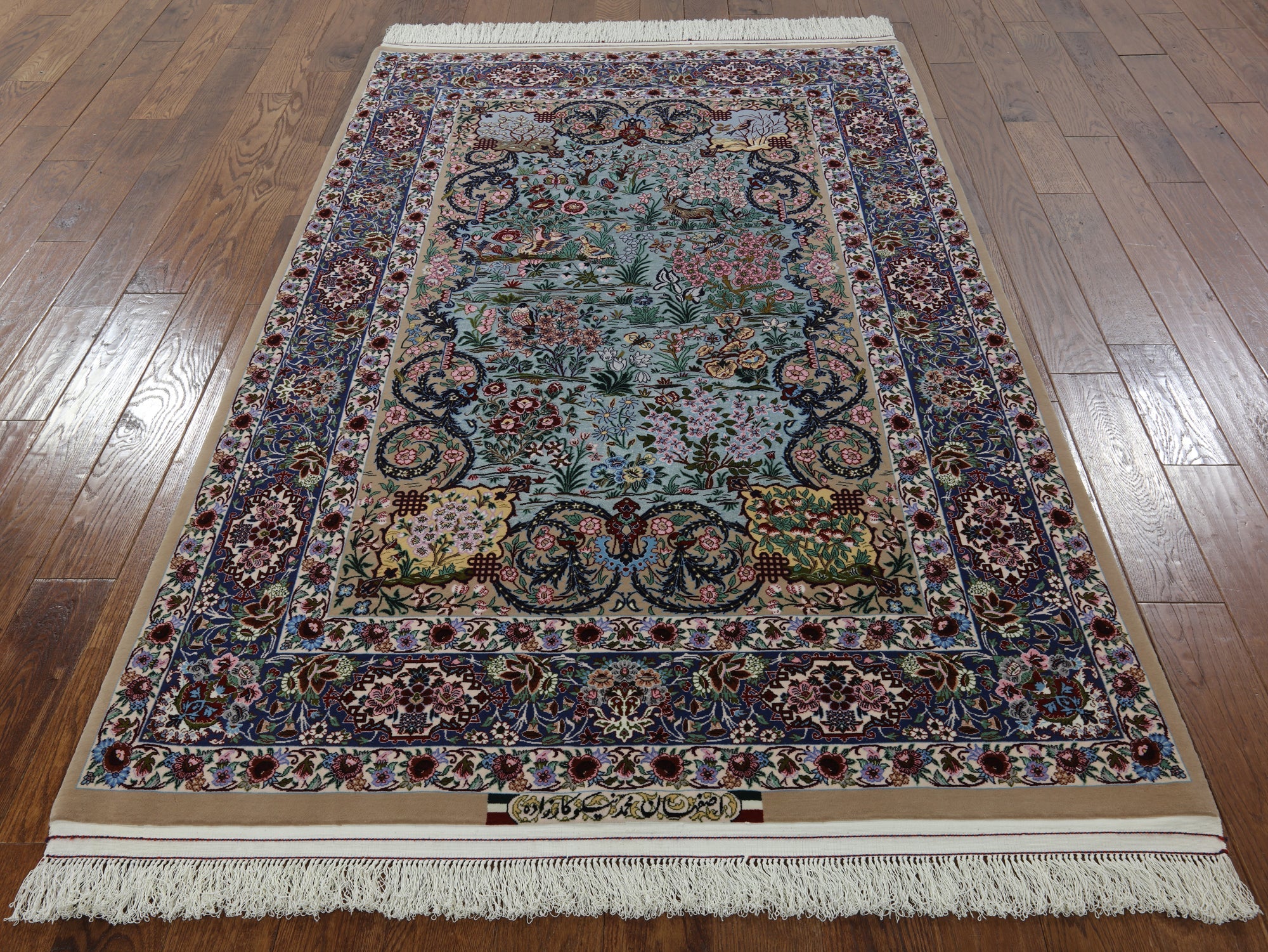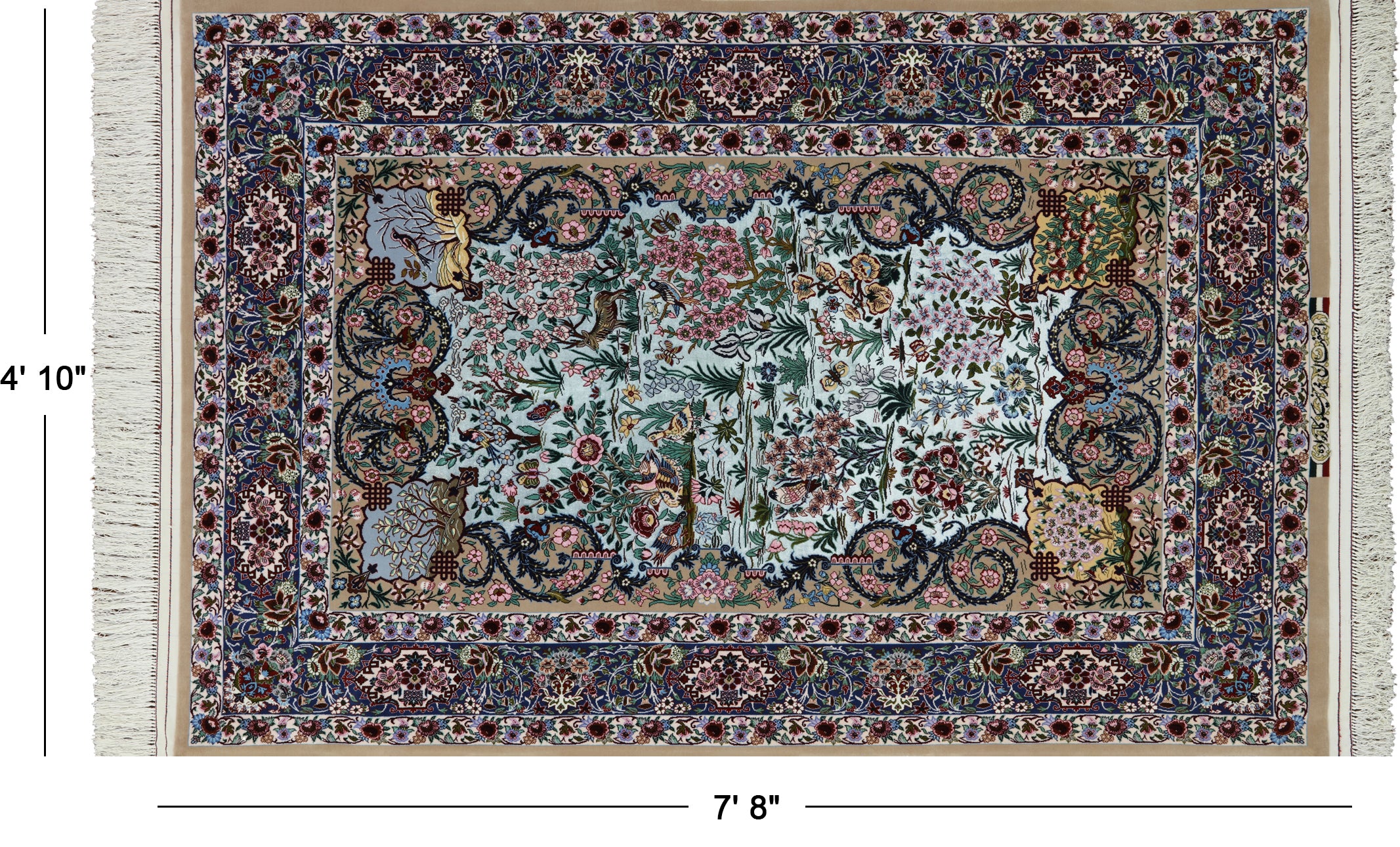 Blue Super Fine Persian Isfahan Signed Hand Knotted Silk Area Rug 4' 10" X 7' 8" - SA2713 is backordered and will ship as soon as it is back in stock.