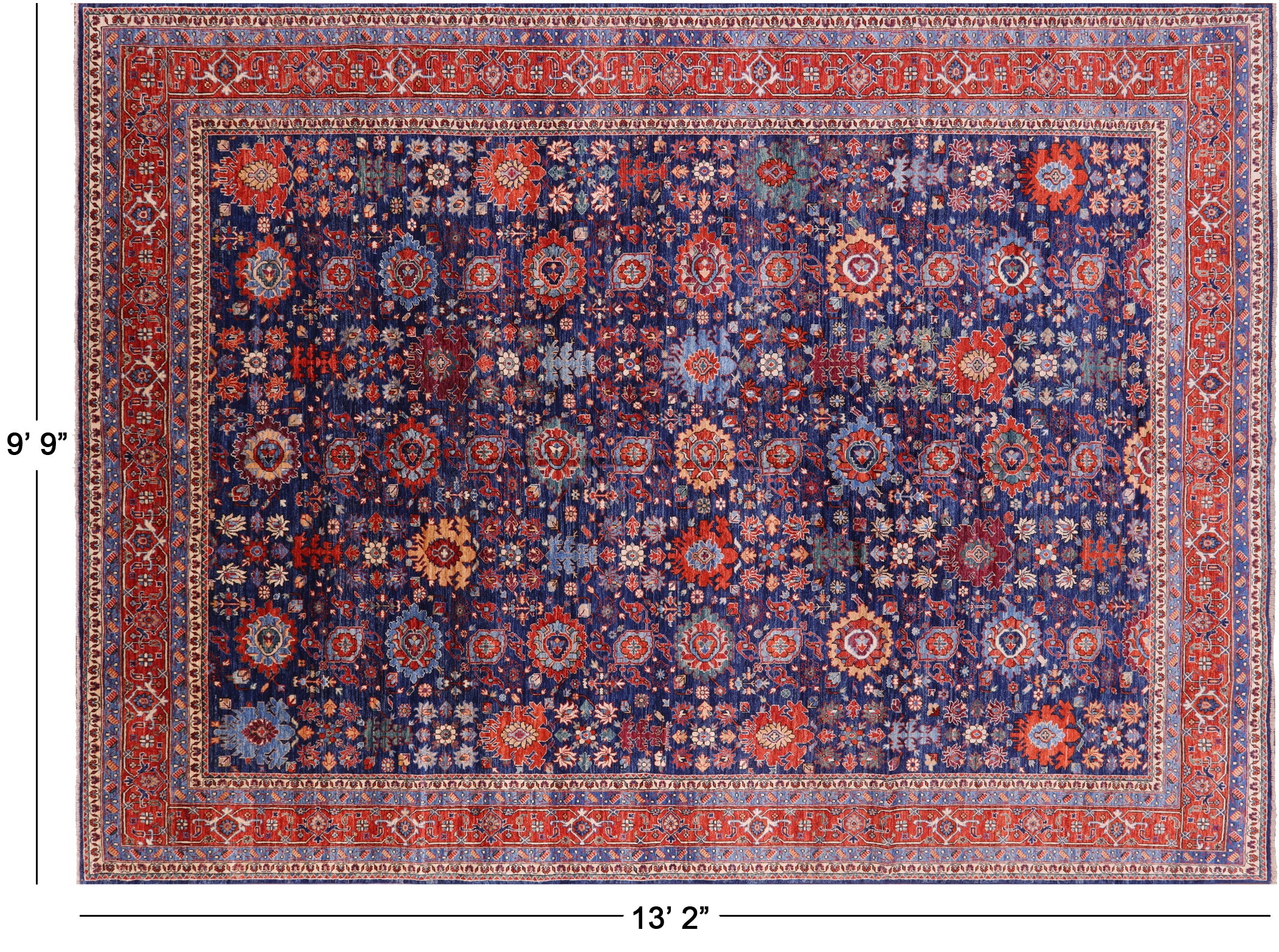 Blue Super Heriz Serapi Handmade Wool Rug 9' 9" X 13' 2" - Q20392
