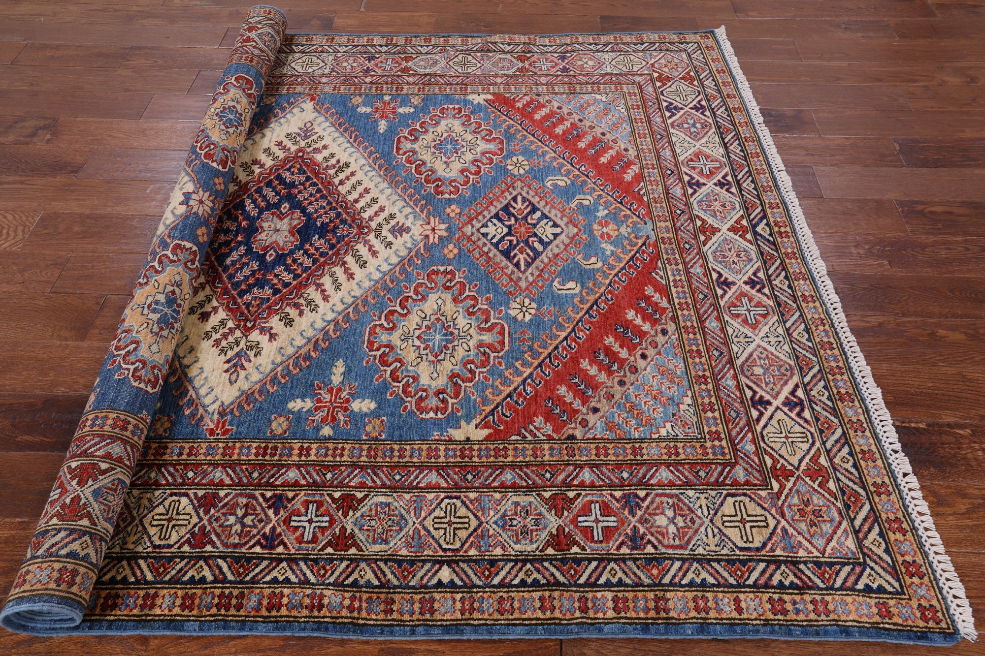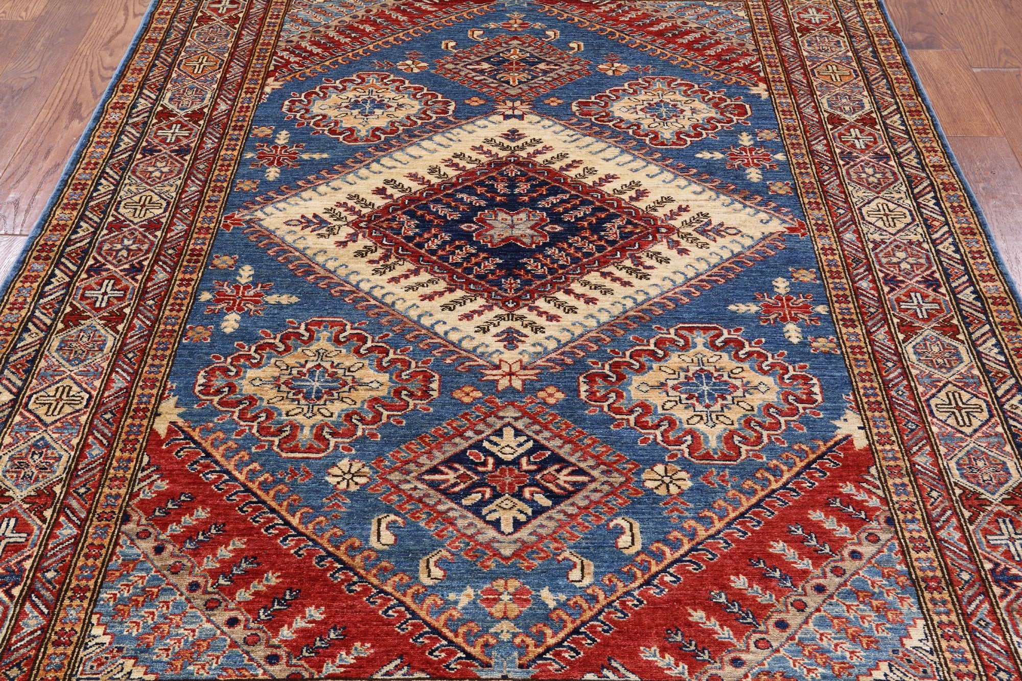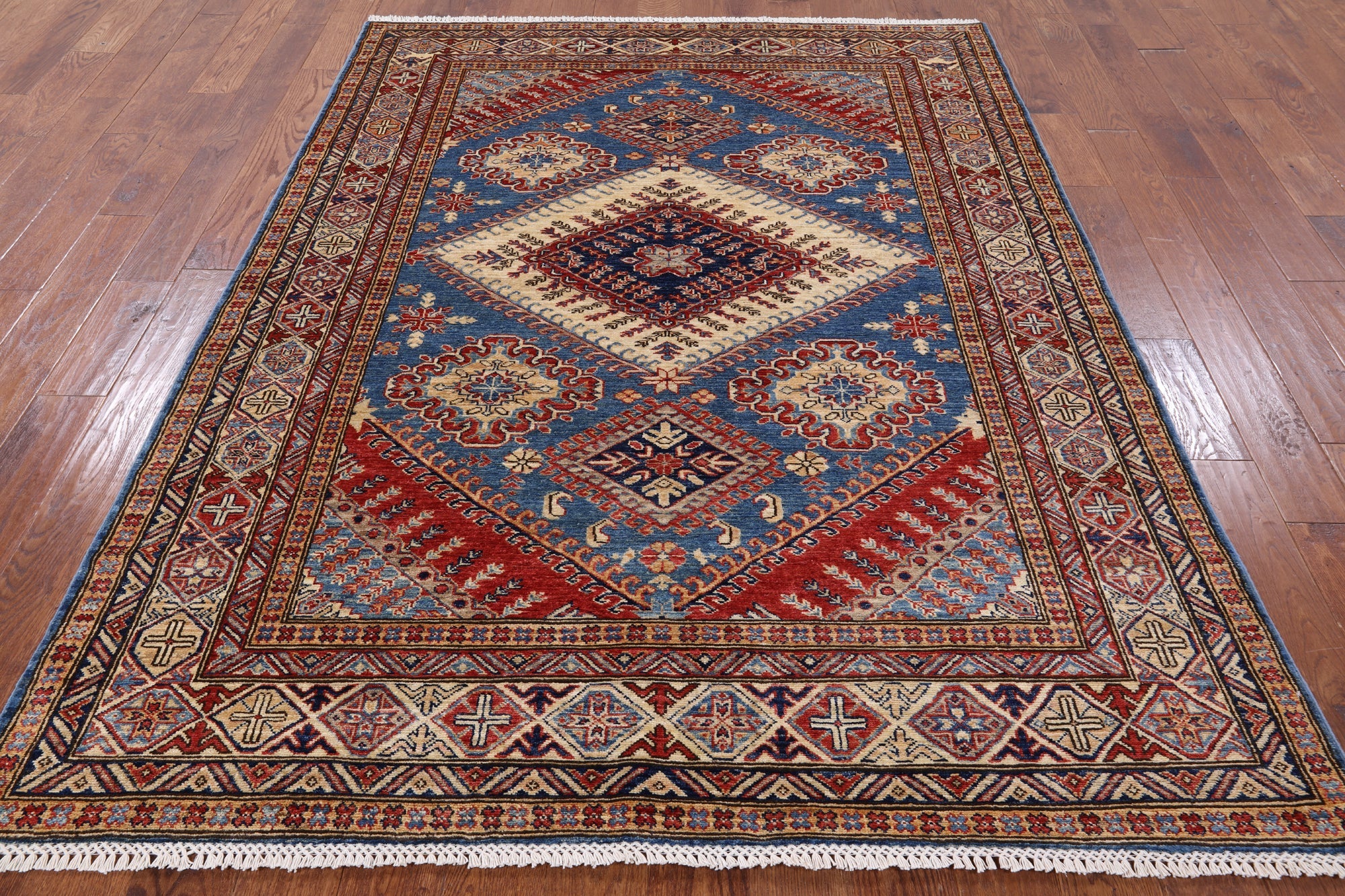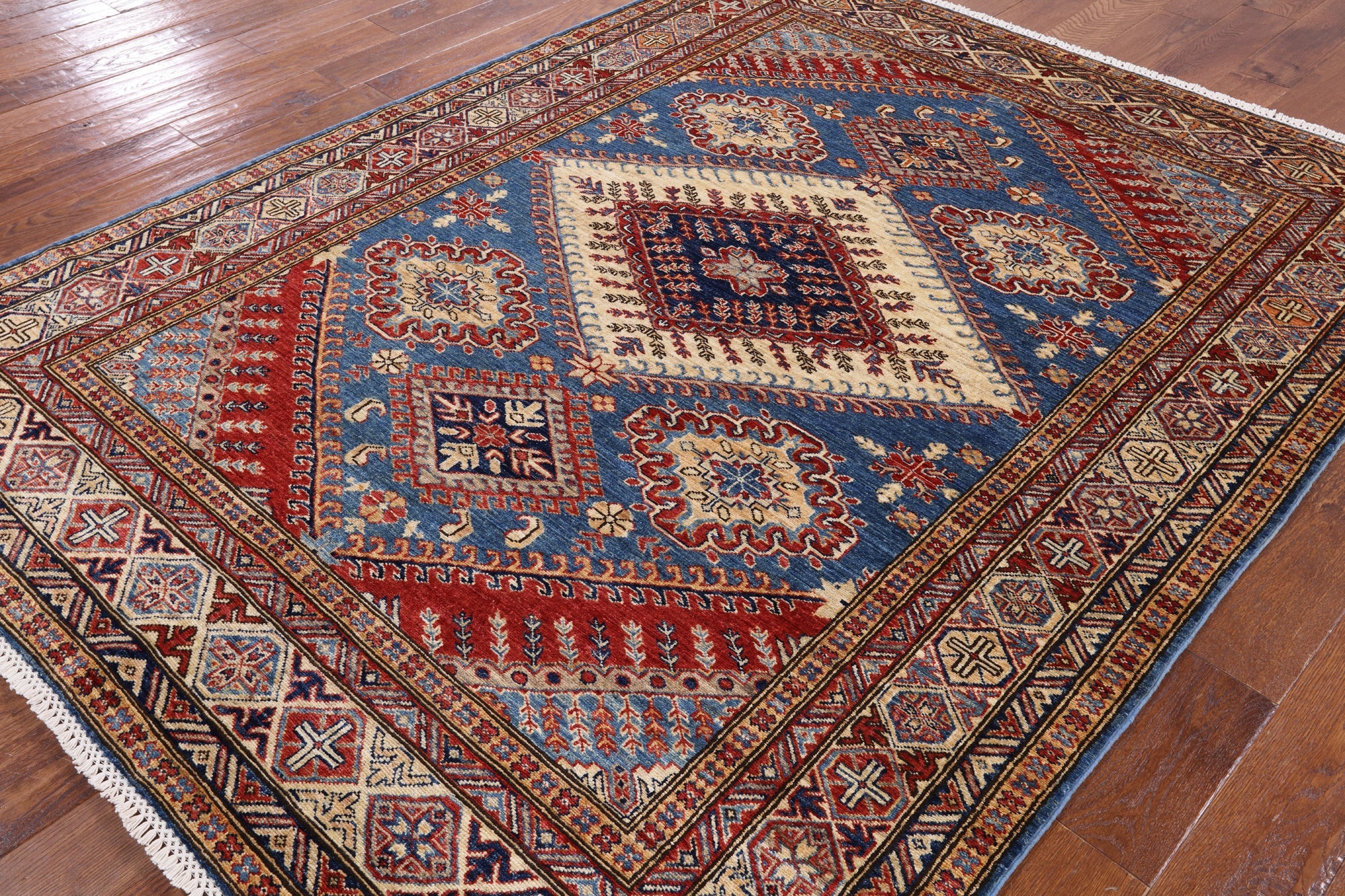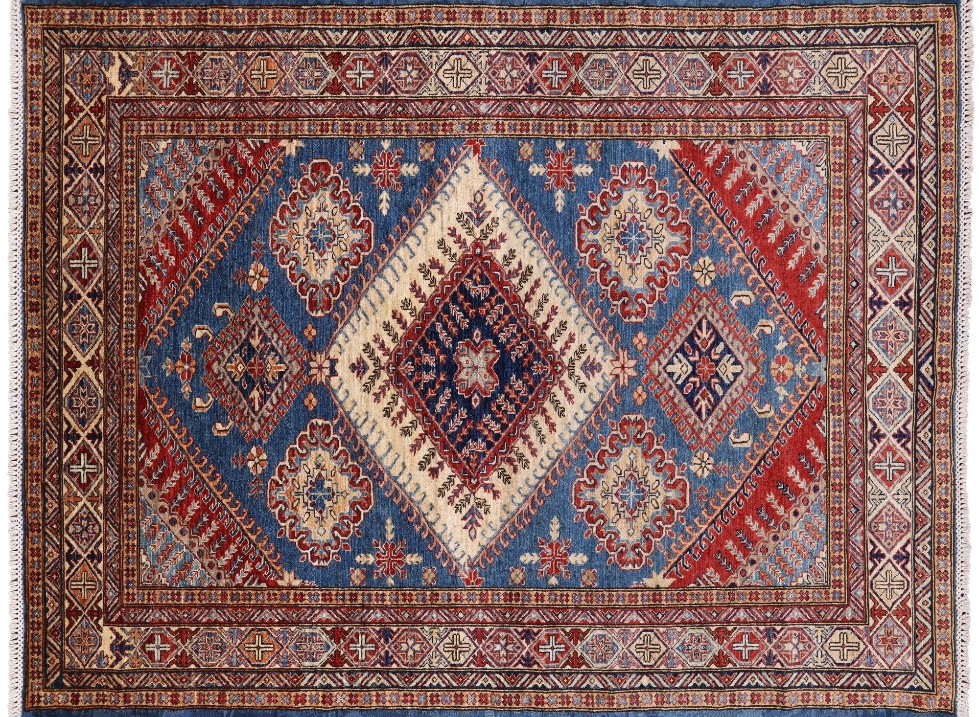Blue Super Kazak Hand Knotted Wool Rug 5' 11" X 7' 8" - P8941