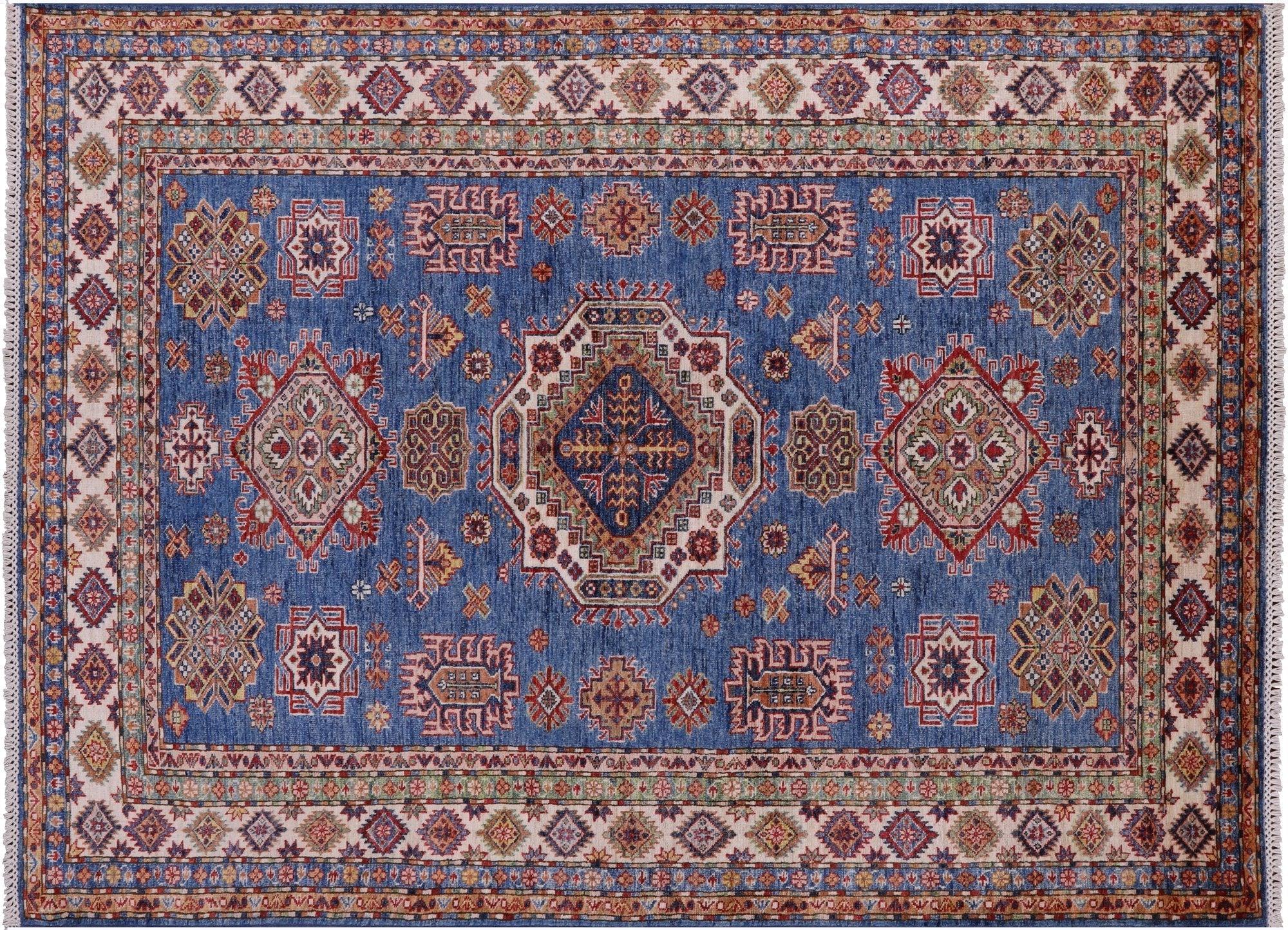 Blue 5' 8" X 7' 10" Super Kazak Handmade Wool Rug - Q10355