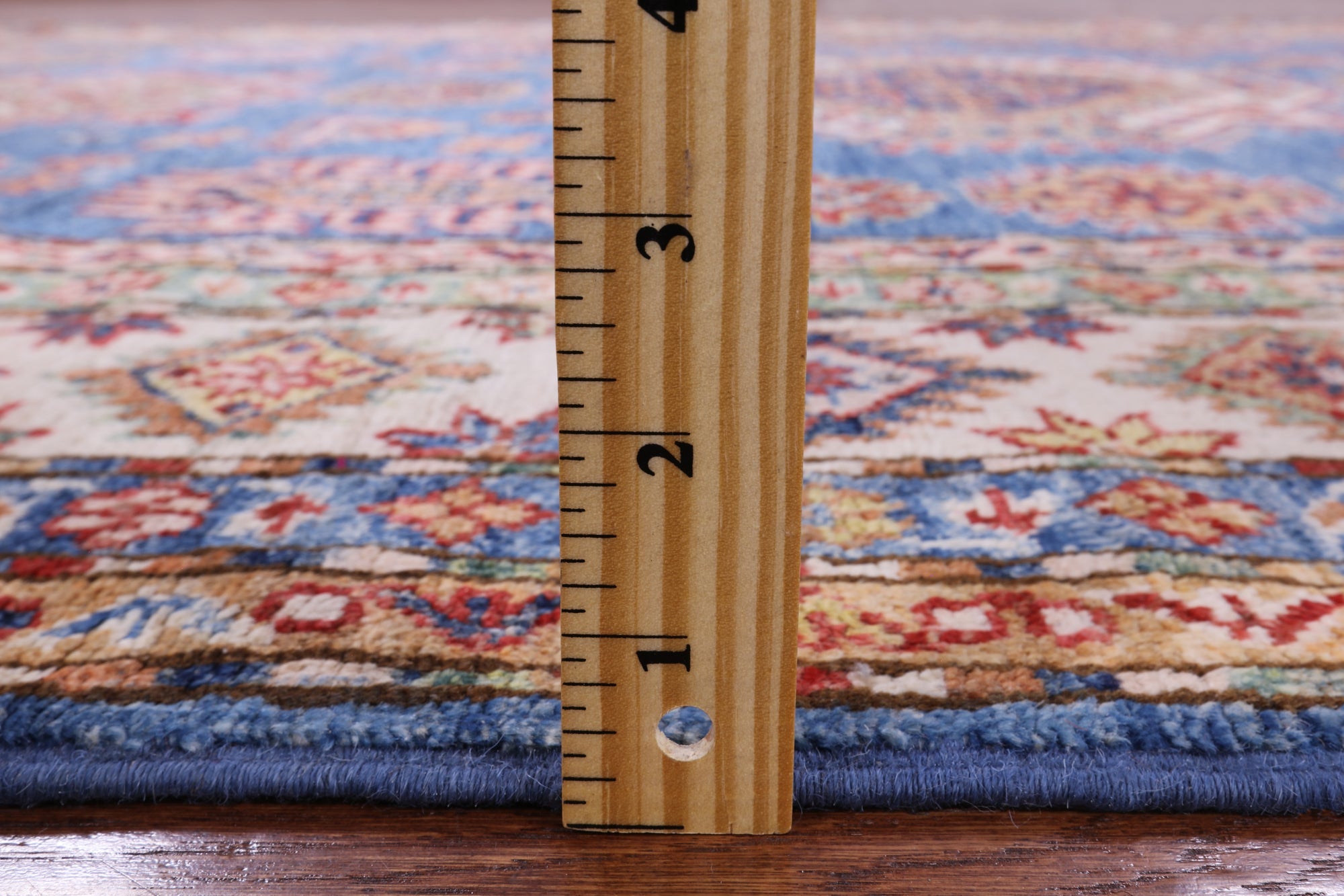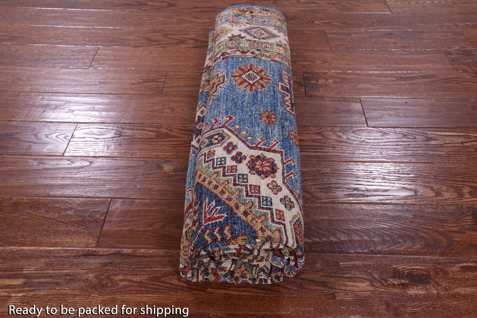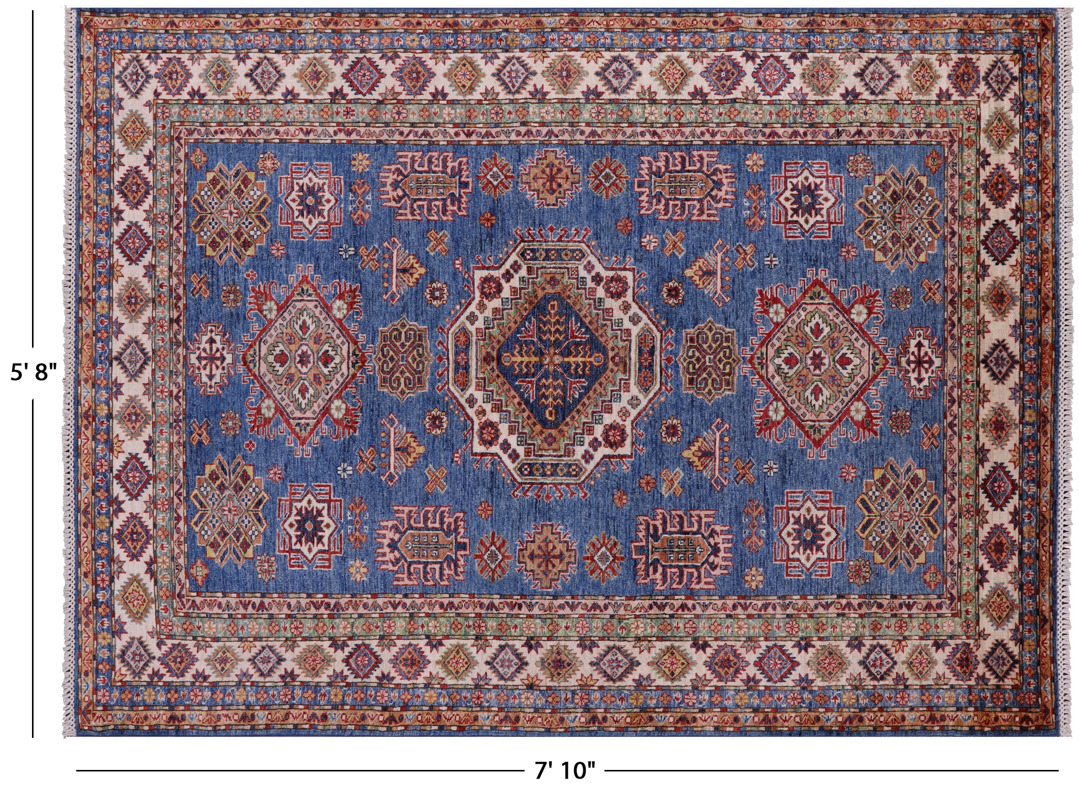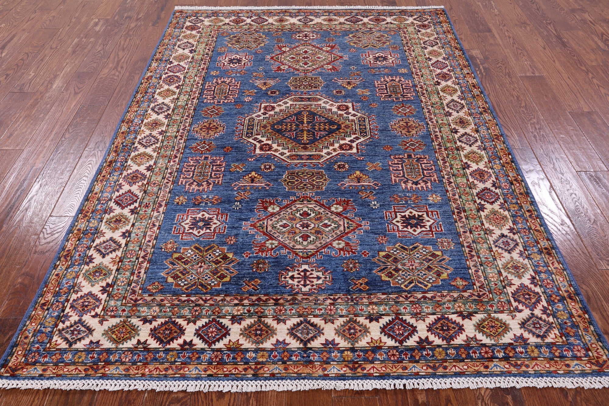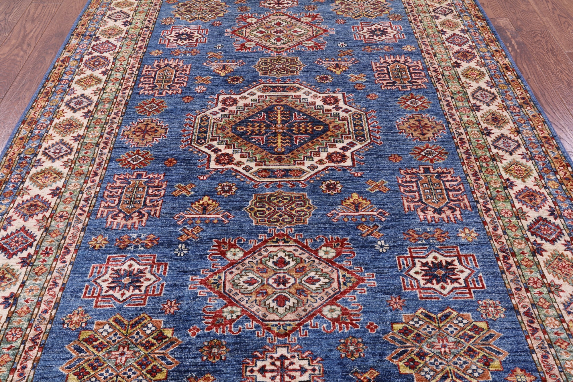 Blue 5' 8" X 7' 10" Super Kazak Handmade Wool Rug - Q10355 is backordered and will ship as soon as it is back in stock.