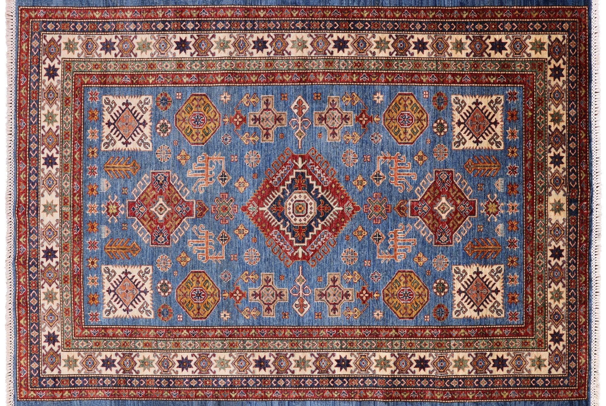 Blue 5' 6" X 8' 0" Super Kazak Wool Area Rug - P8980