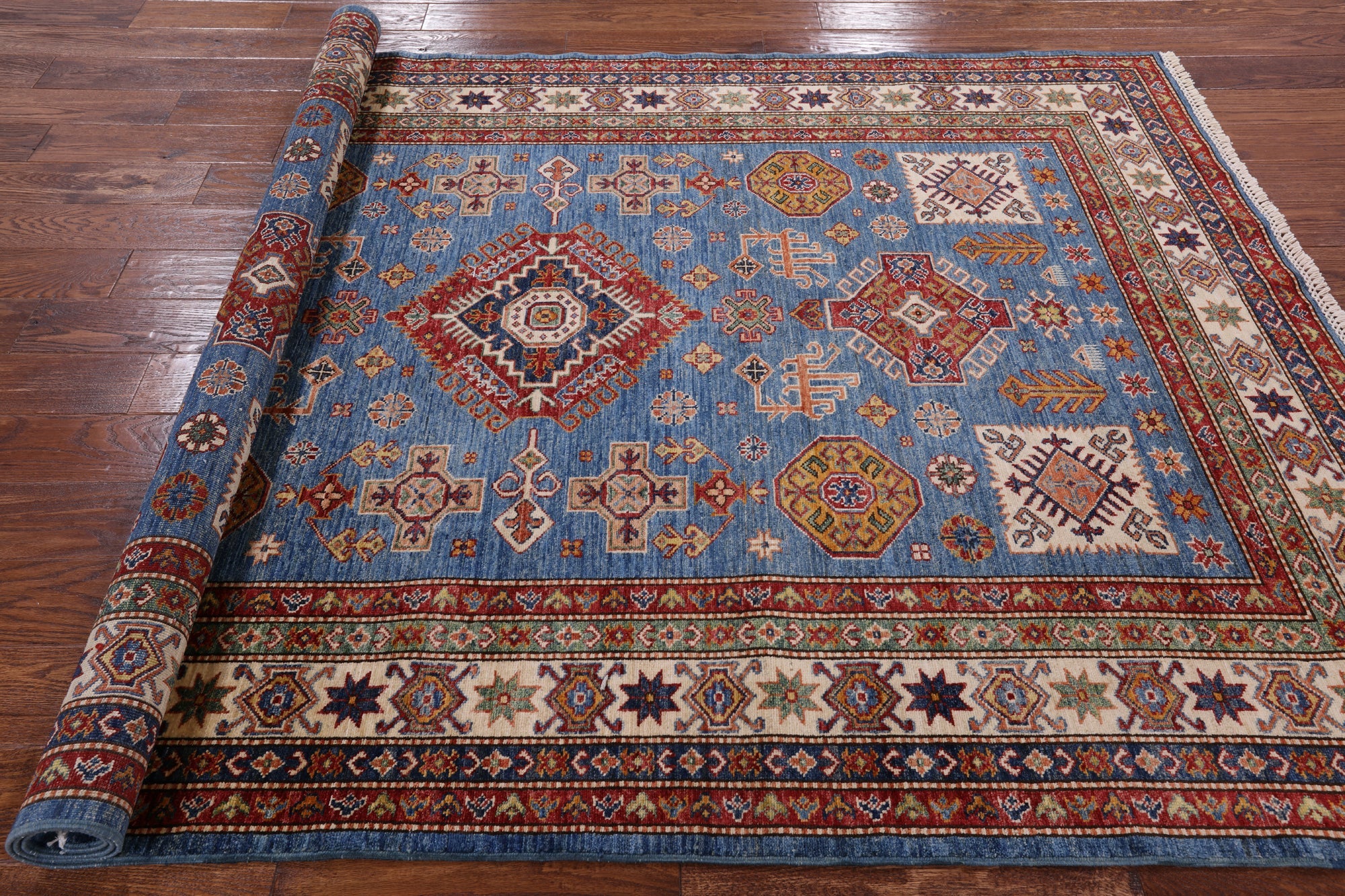 Blue 5' 6" X 8' 0" Super Kazak Wool Area Rug - P8980 is backordered and will ship as soon as it is back in stock.