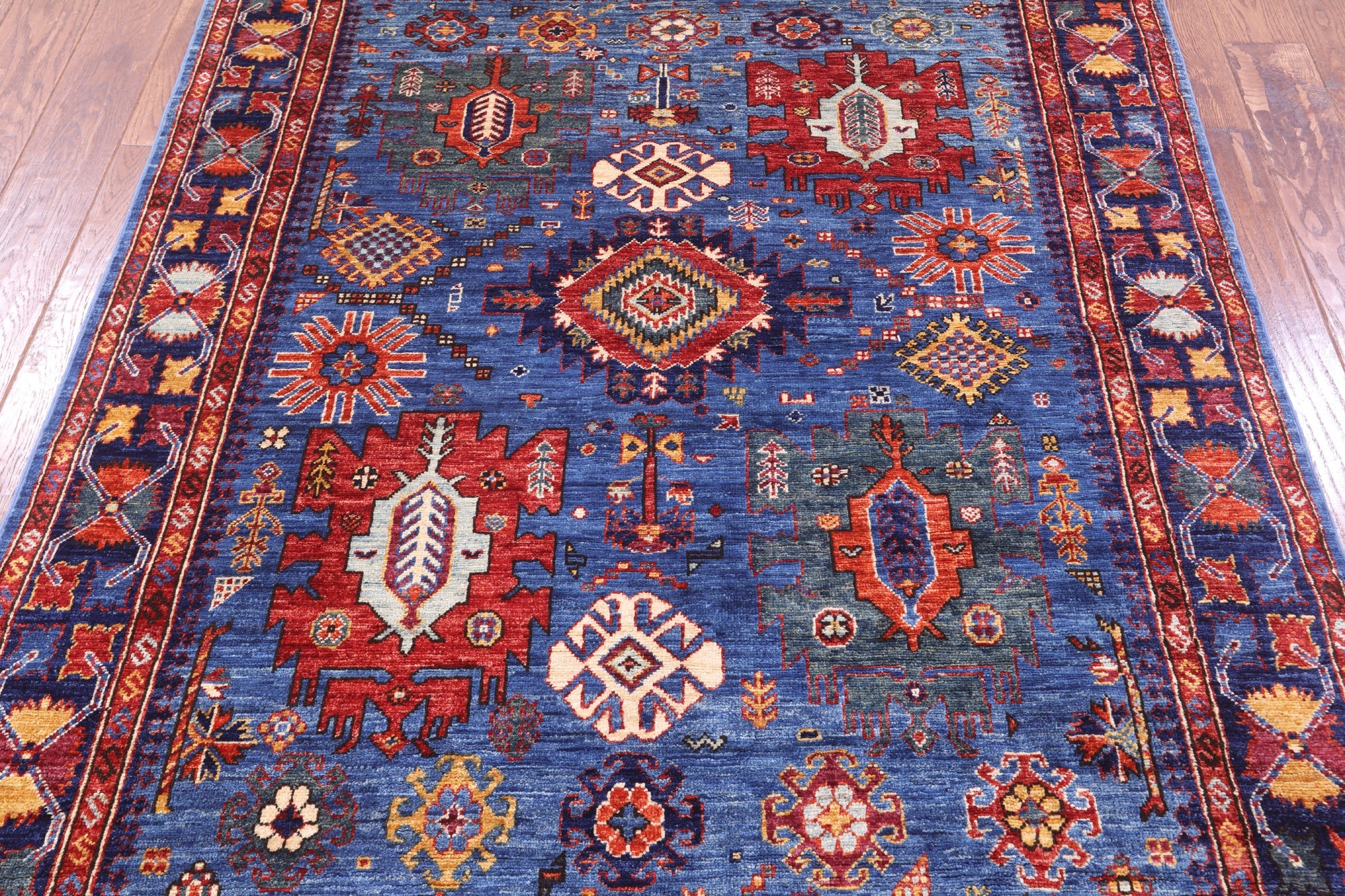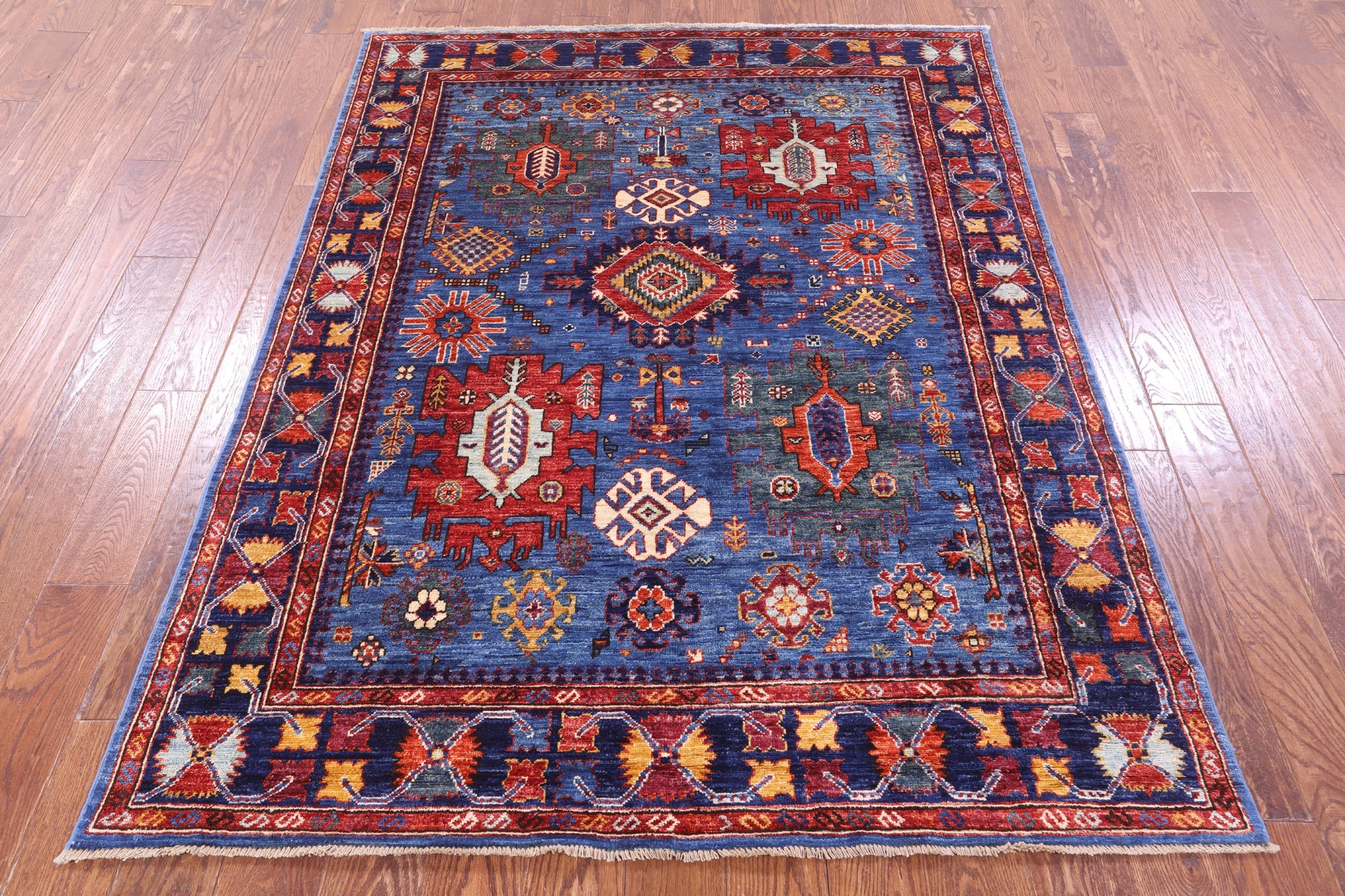 Blue Tribal Fine Serapi Hand-Knotted Wool Rug 5' 0" X 6' 6" - Q20412 is backordered and will ship as soon as it is back in stock.