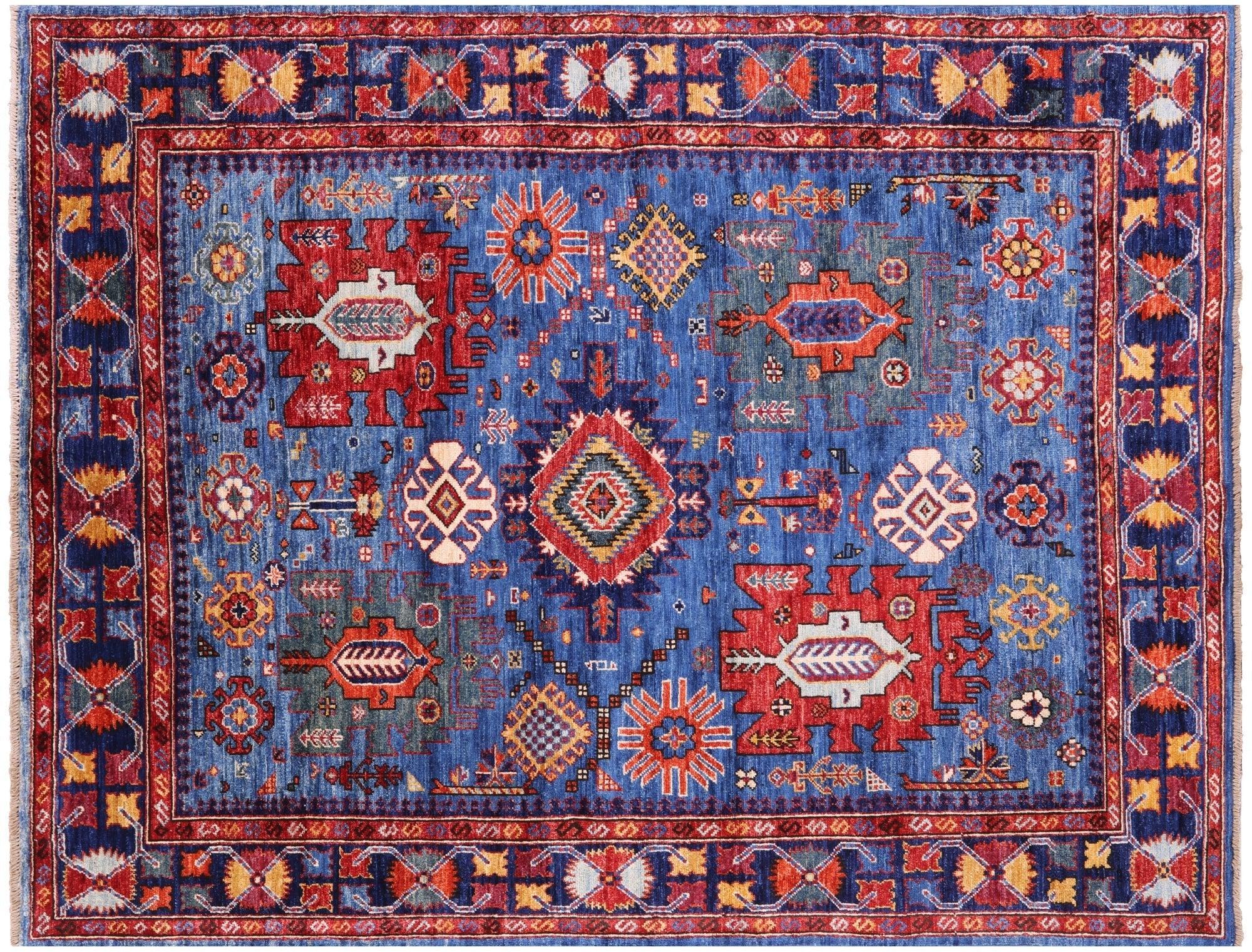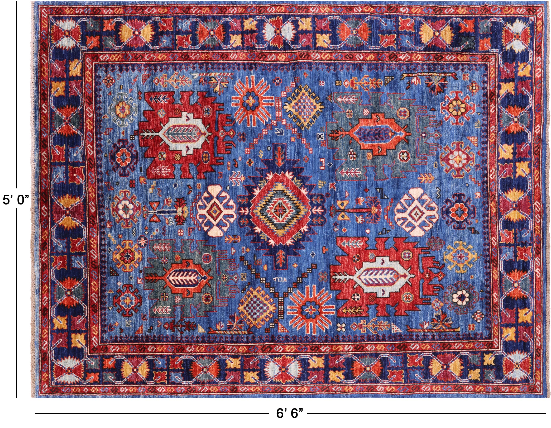 Blue Tribal Fine Serapi Hand-Knotted Wool Rug 5' 0" X 6' 6" - Q20412