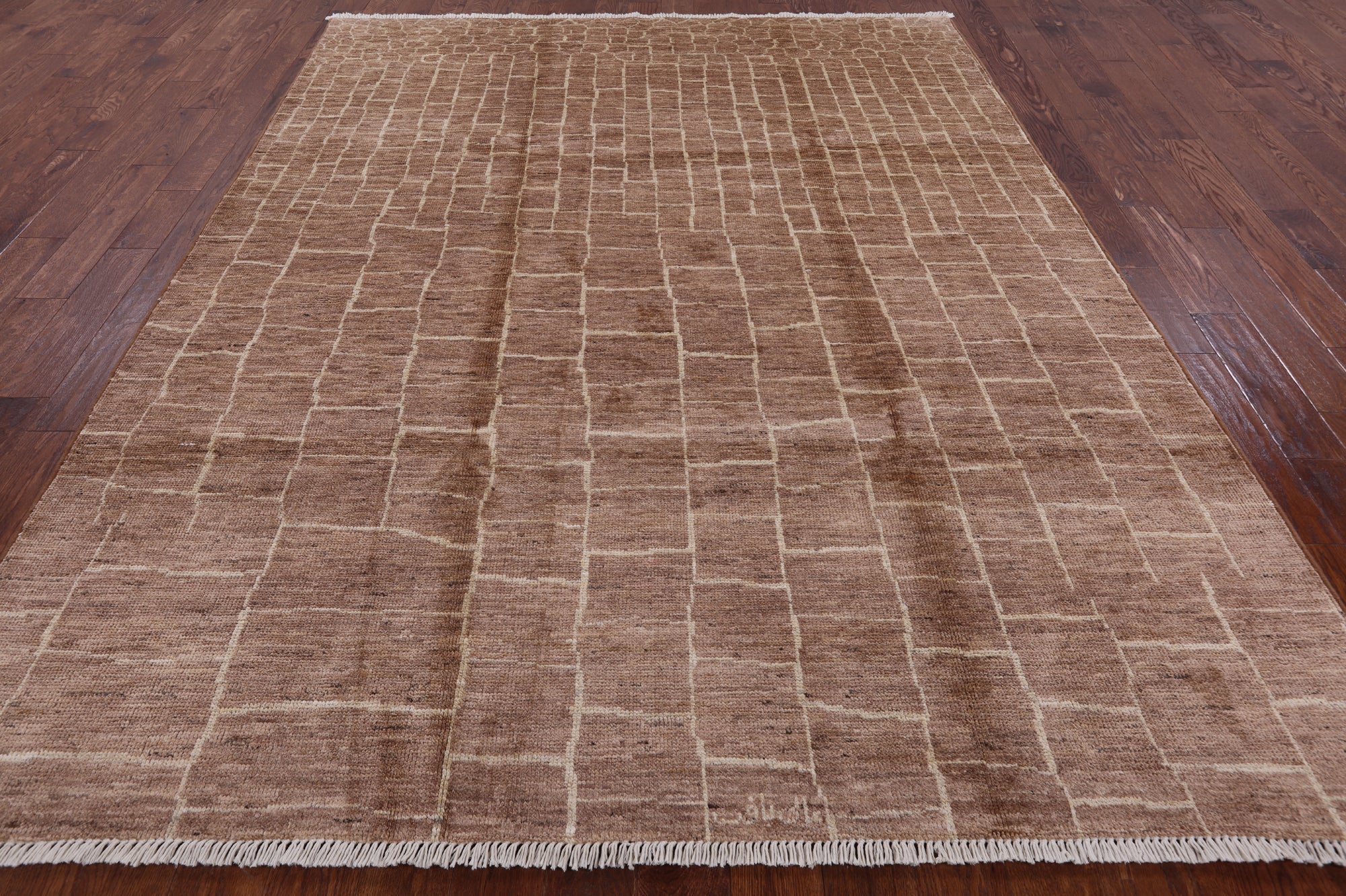 Brown Moroccan Handmade Wool Area Rug 7' 9" X 9' 10" - P5989