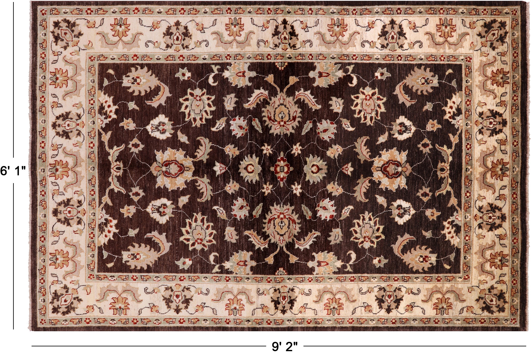 Brown Peshawar Handmade Wool Area Rug 6' 1" X 9' 2" - H9456