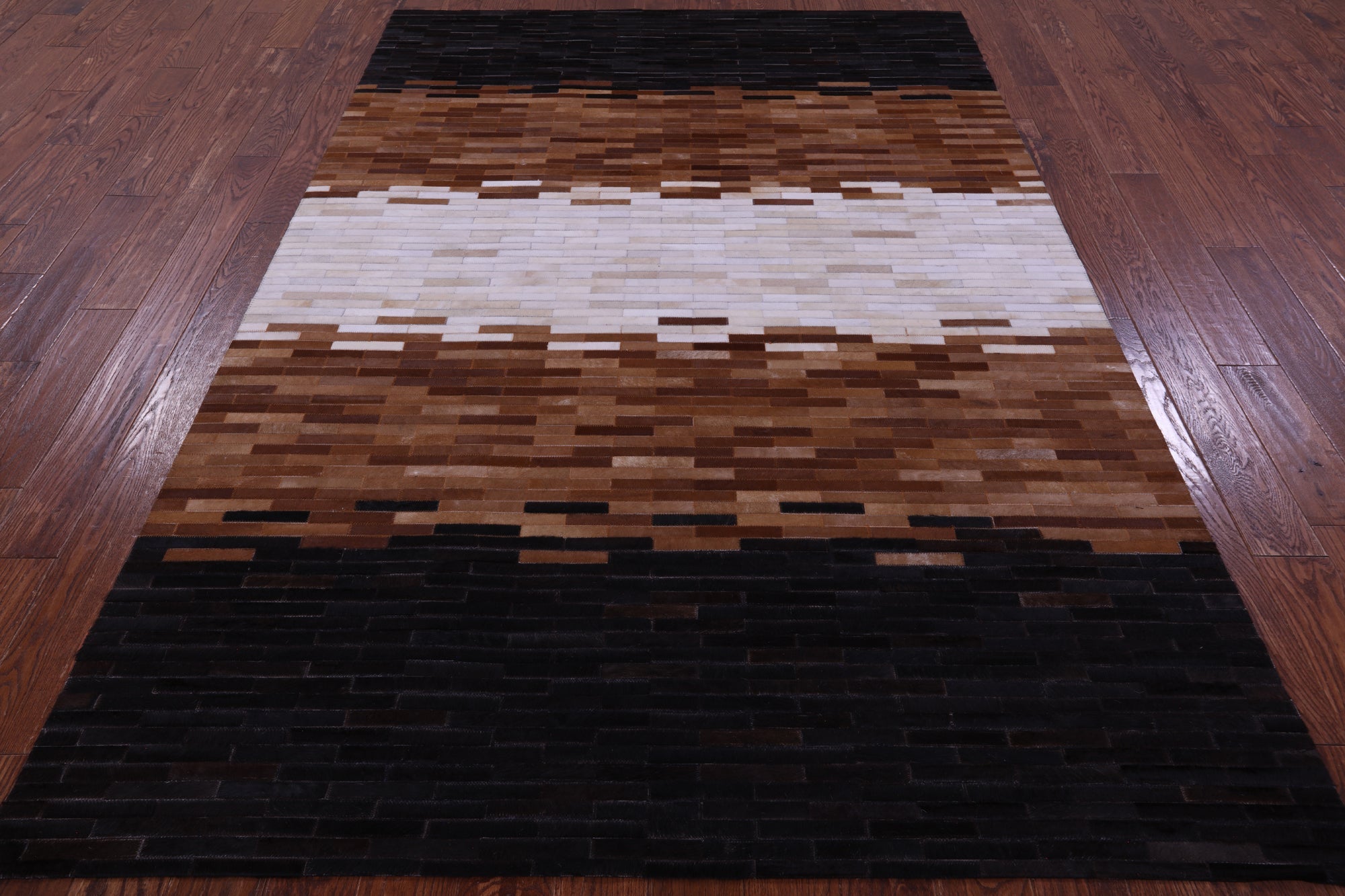 6' 0" X 9' 0" Brown & White Brickwork Natural Cowhide Hand Stitched Rug - C5807